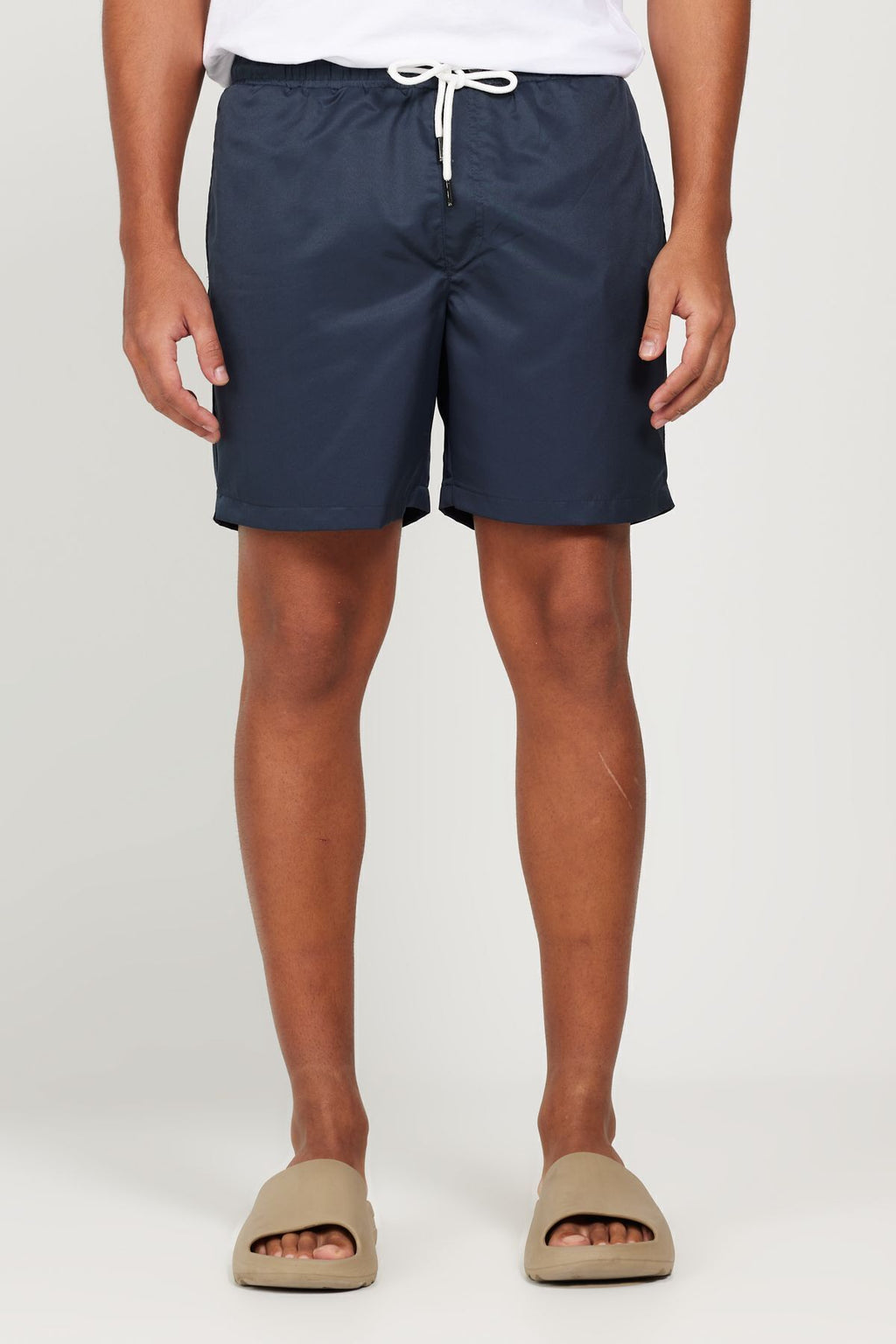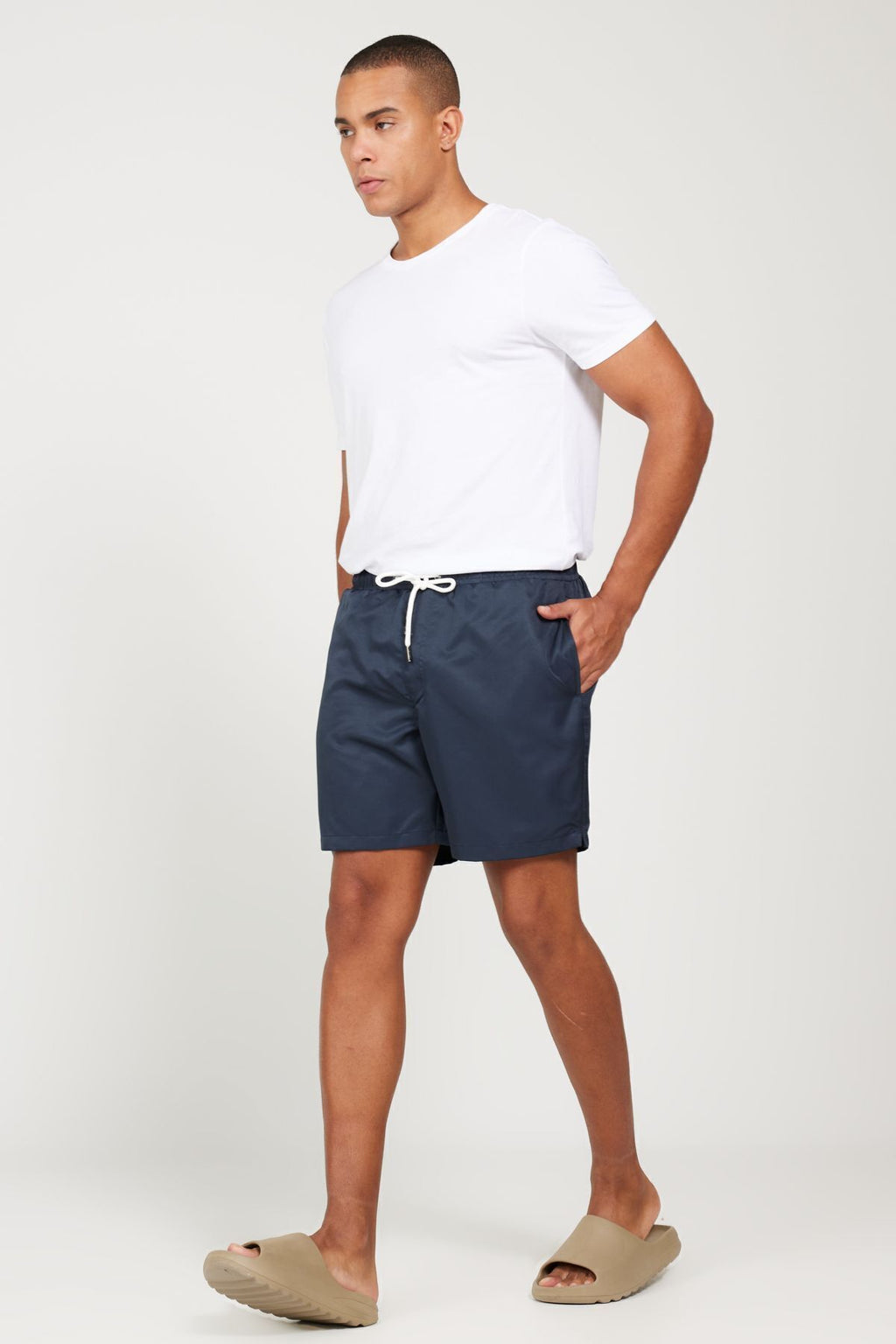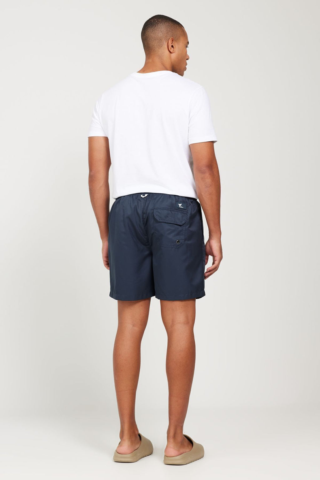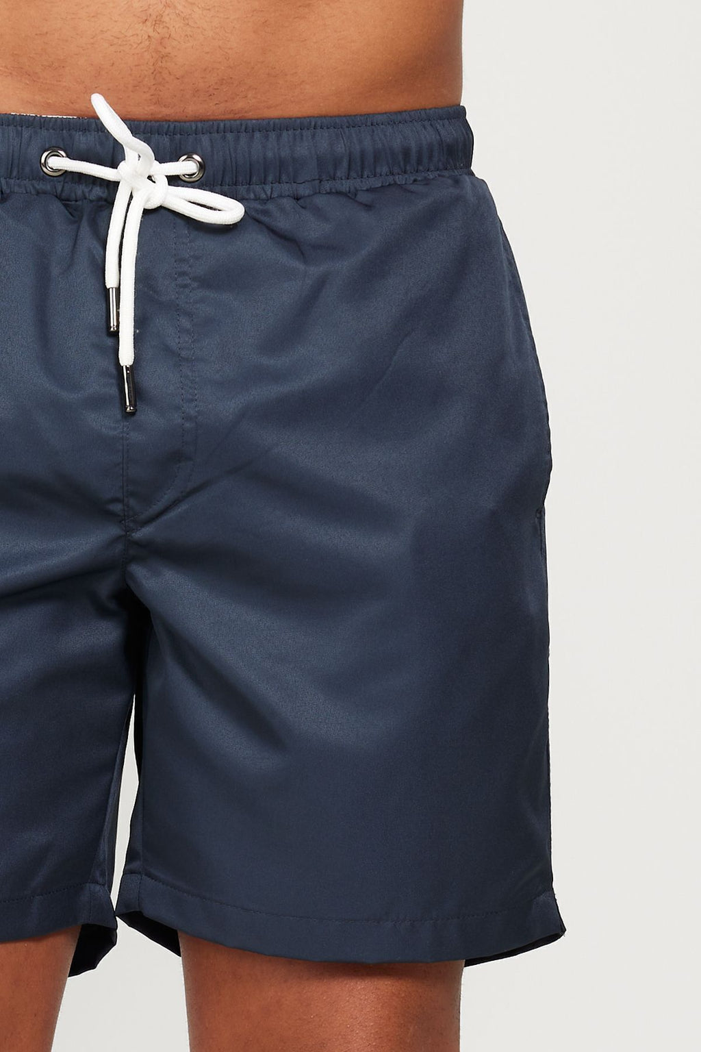 Men's navy blue standard fit patterned pocket fast -drying swimsuit sea shorts