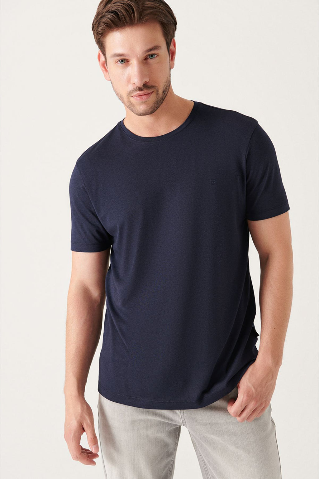 Men's navy blue ultrasoft bike collar cotton Basic T-shirt E001171