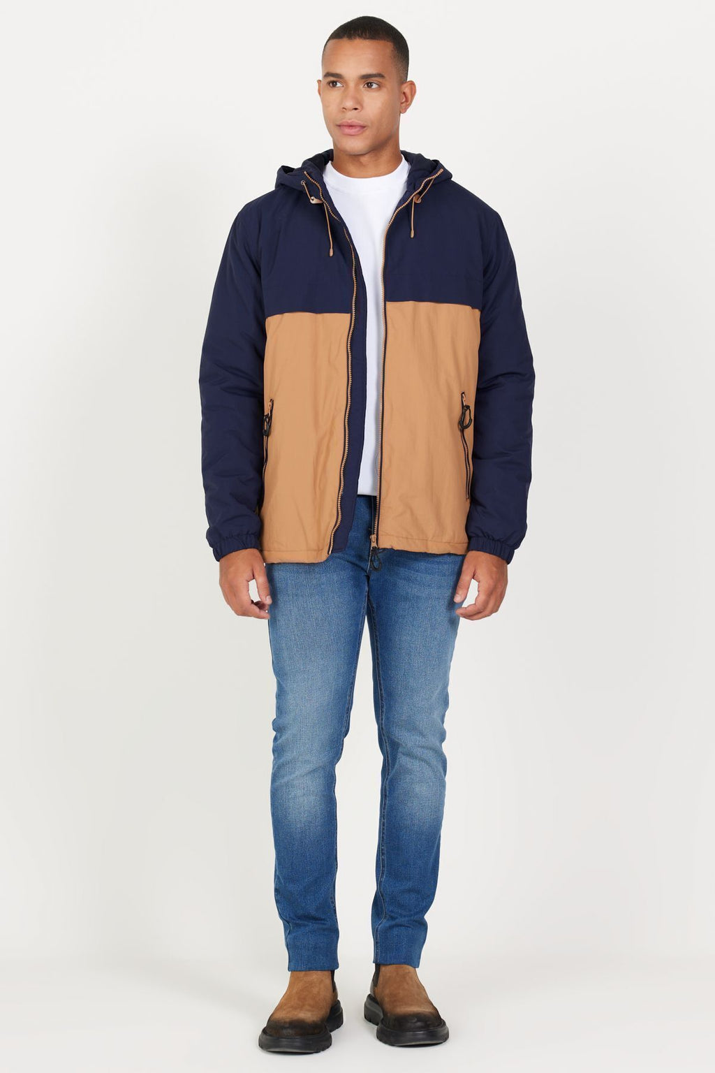 Men's Navy Blue-Vizon Standard Fit Normal Cut Ortak collar Cold-proof interior fleece side pocket coat