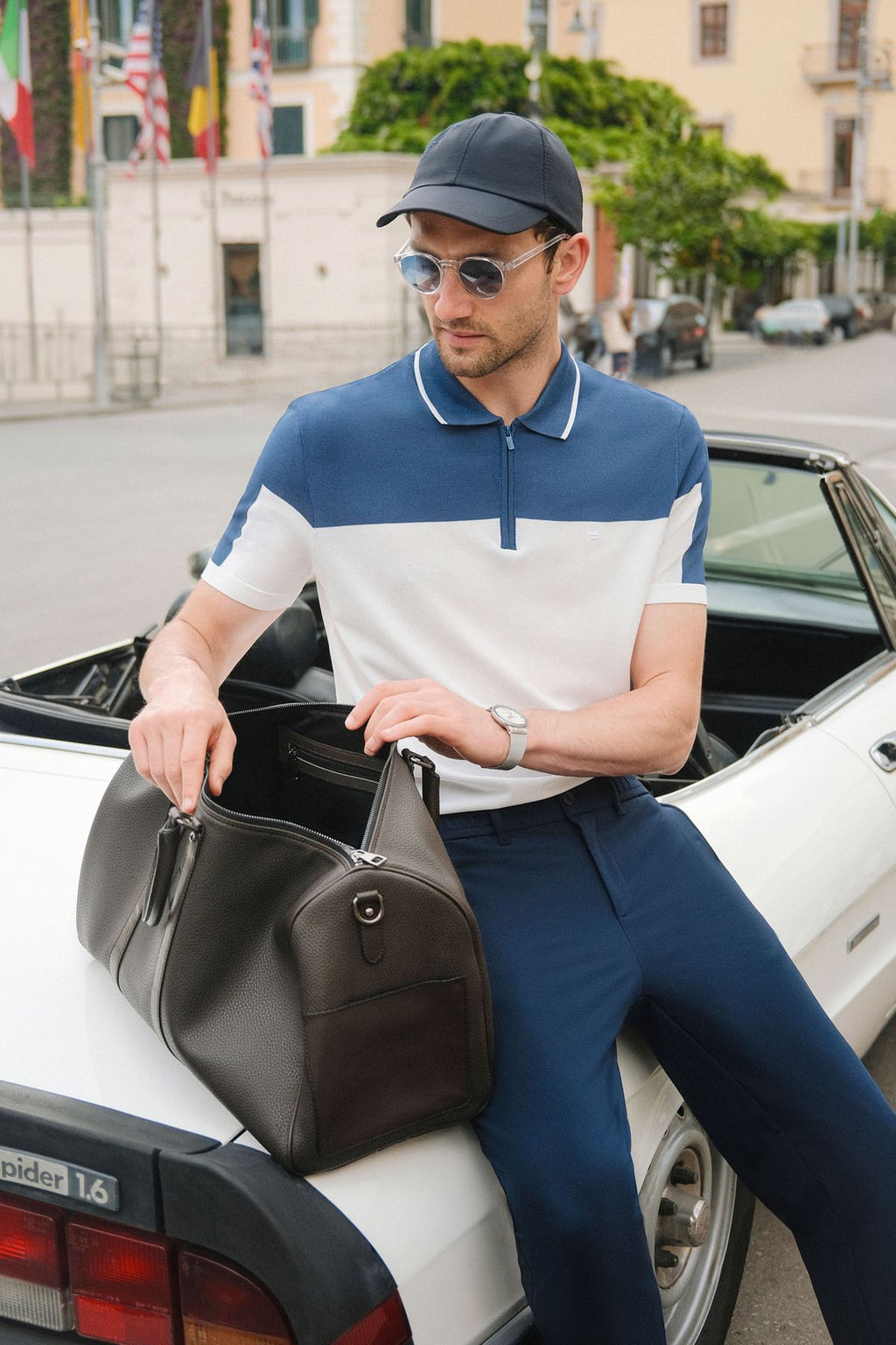 Men's navy blue waist tire 360 degrees flexible technical fabric pants A41y3077