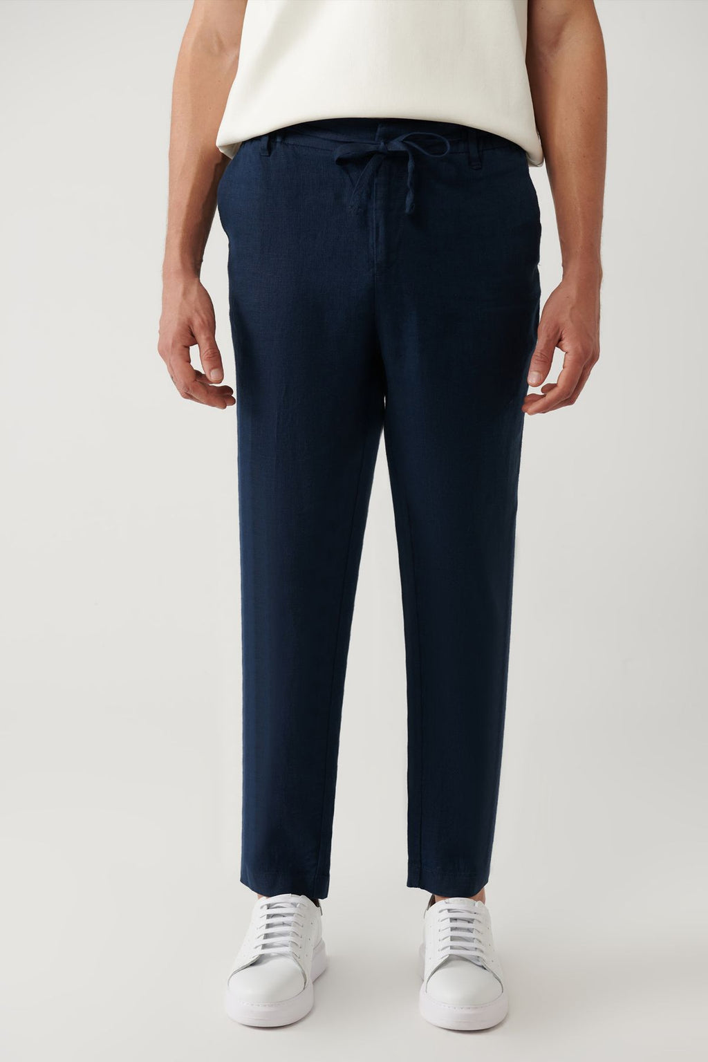 Men's Navy Blue Waist Wa Liner 100 %Linen Pants B003032
