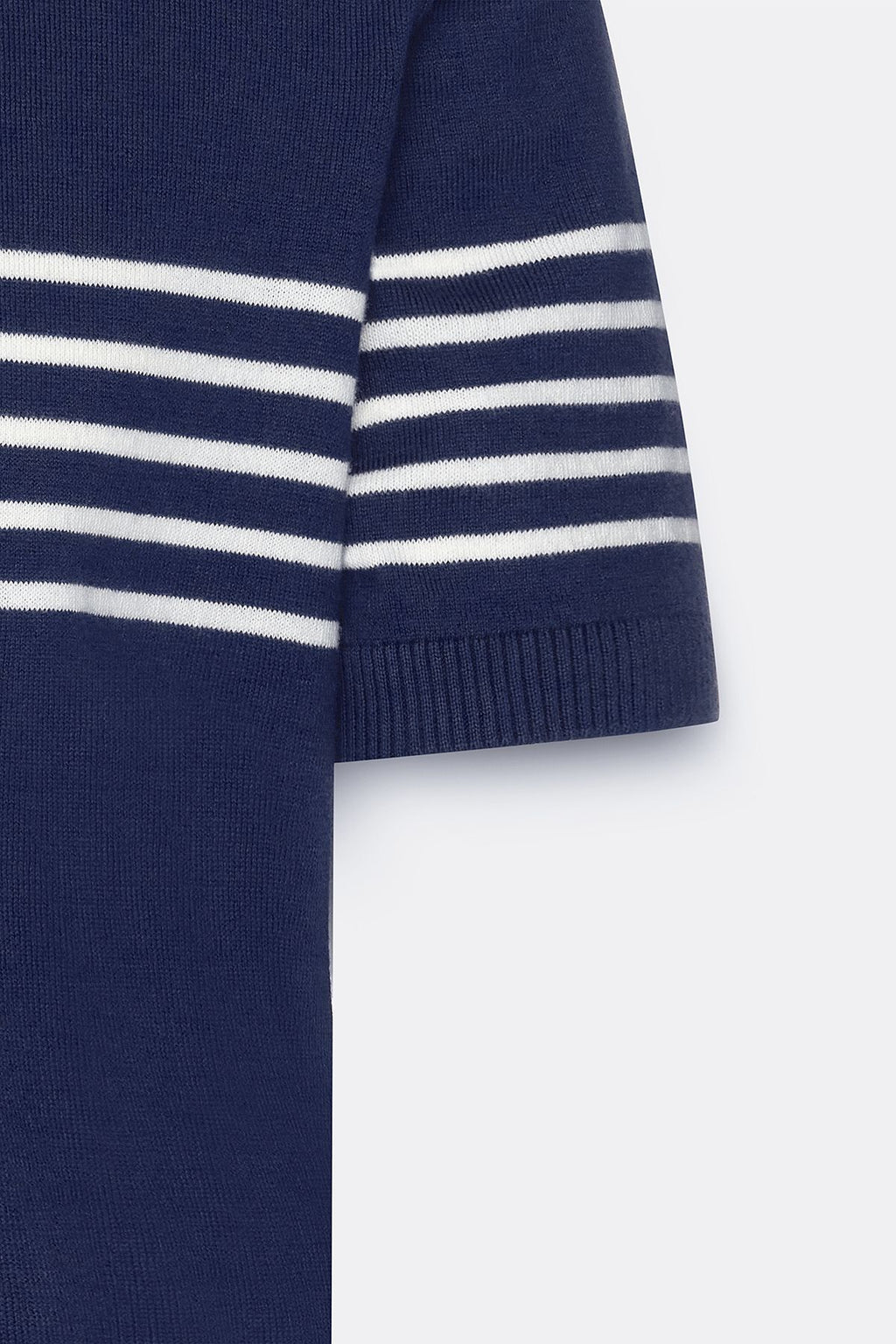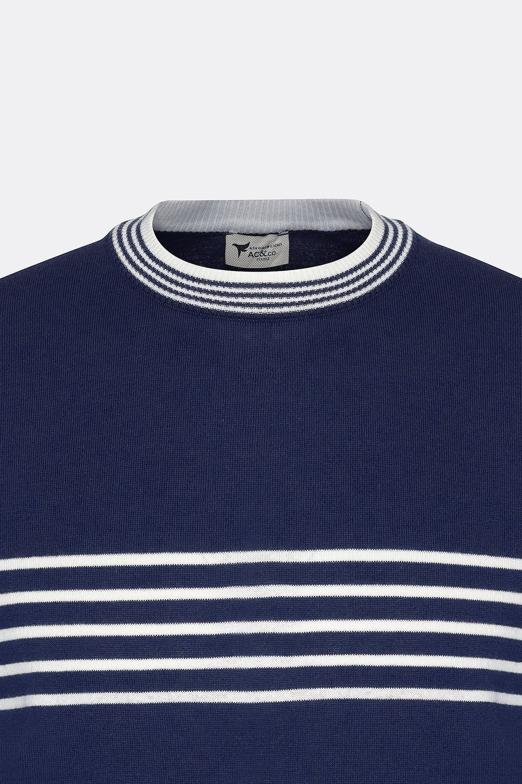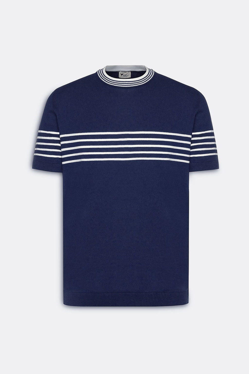 Men's Navy Blue-White Standard Fit Normal Normal Cut 100 %Cotton Striped Bicycle Yaka Triko T-shirt