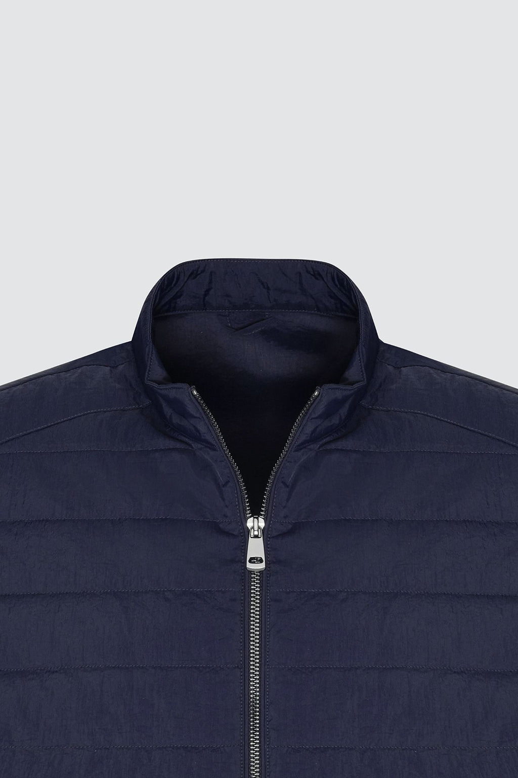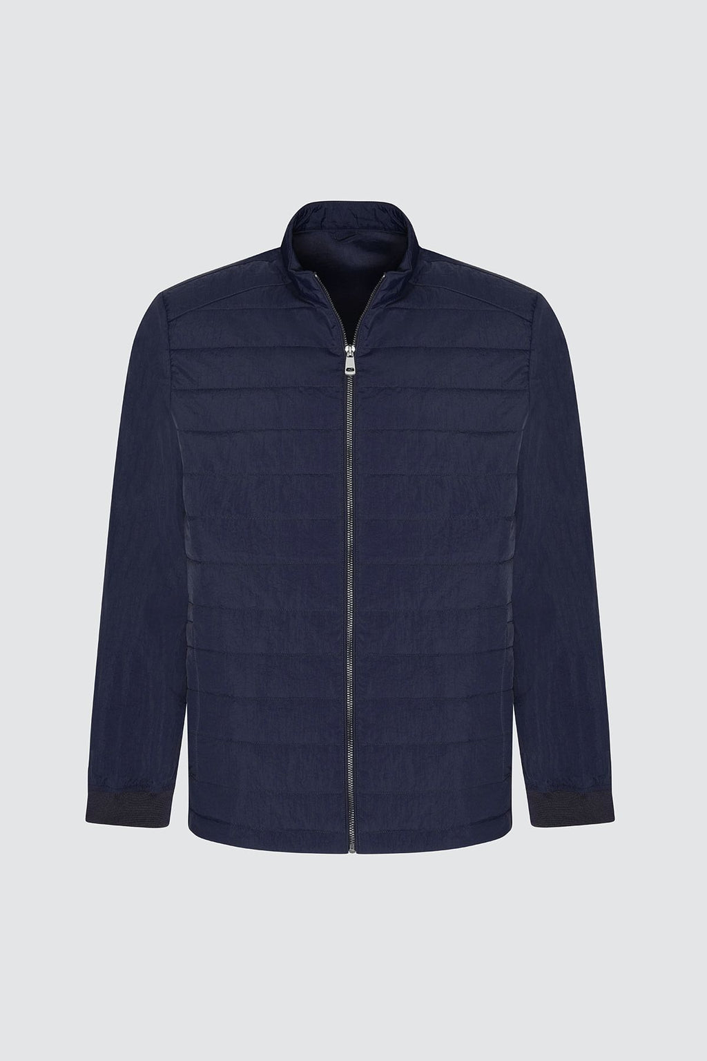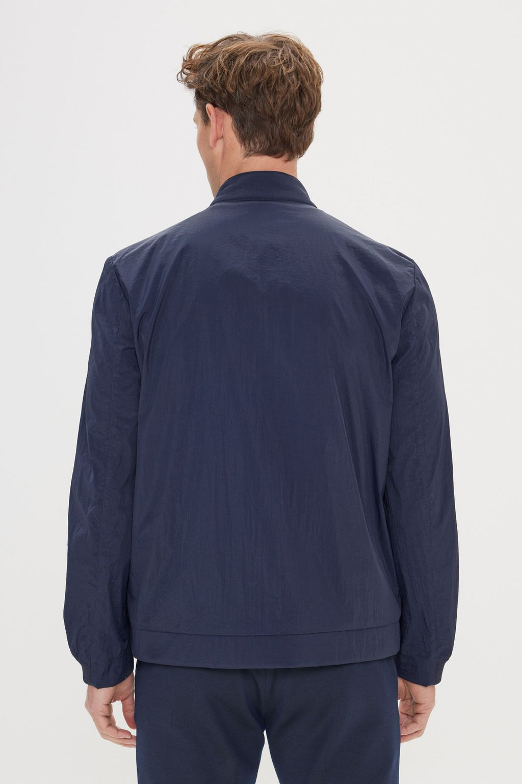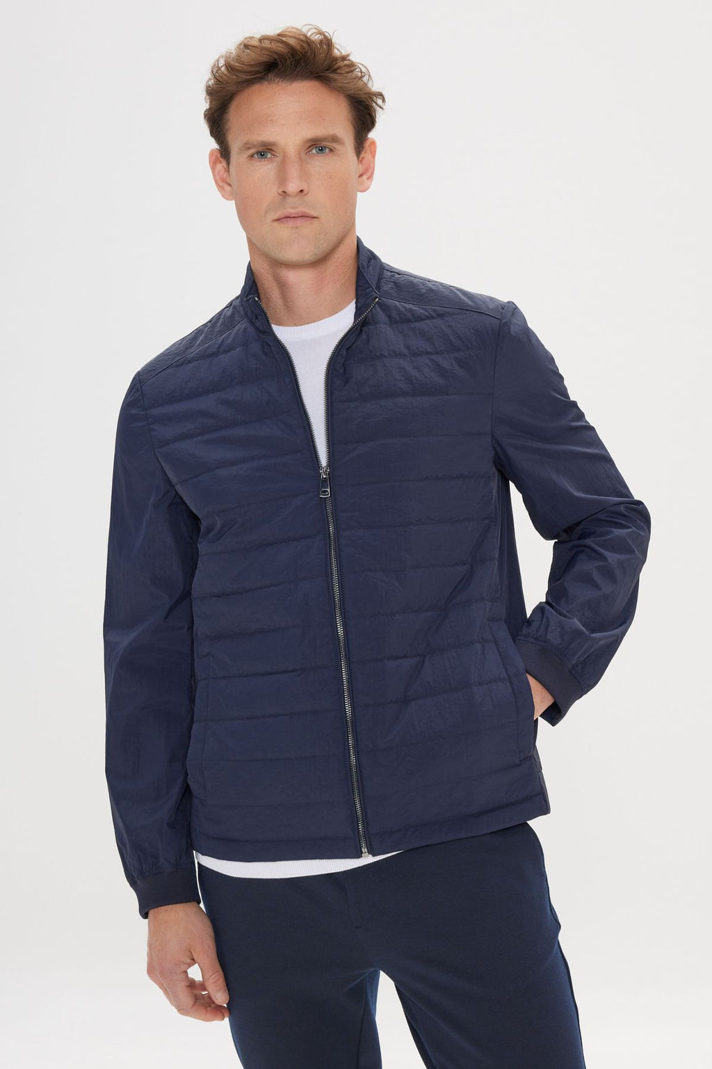 Men's navy blue windproof standard fit normal cut hidden hooded side pocket fine coat