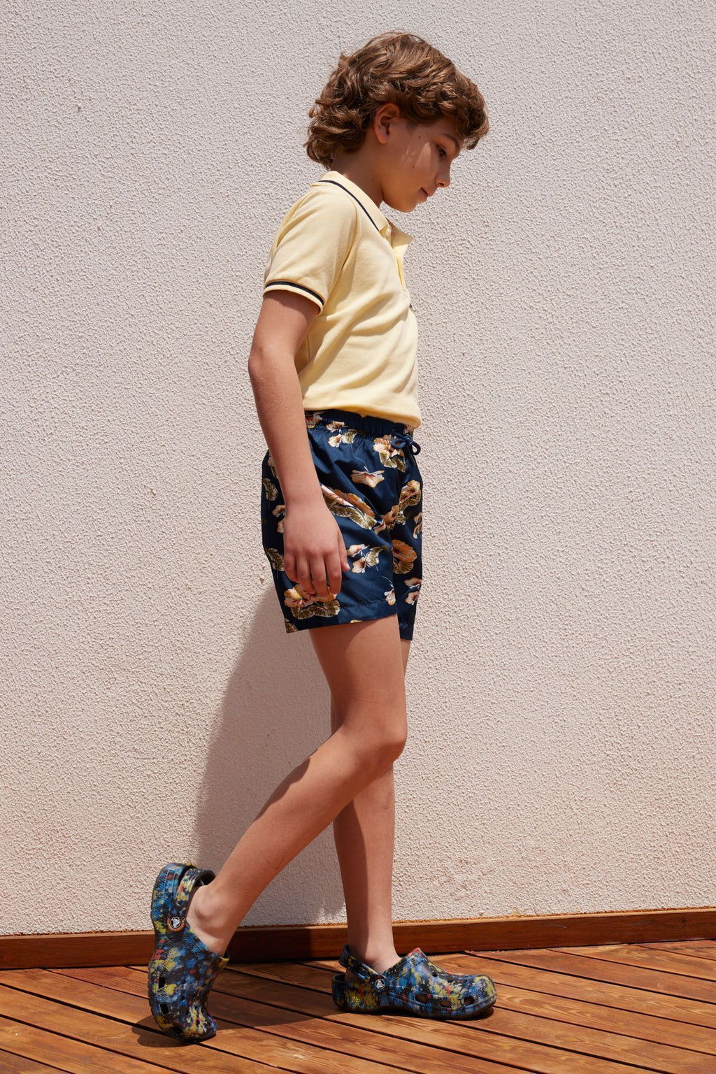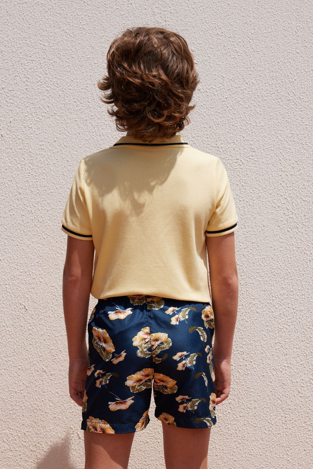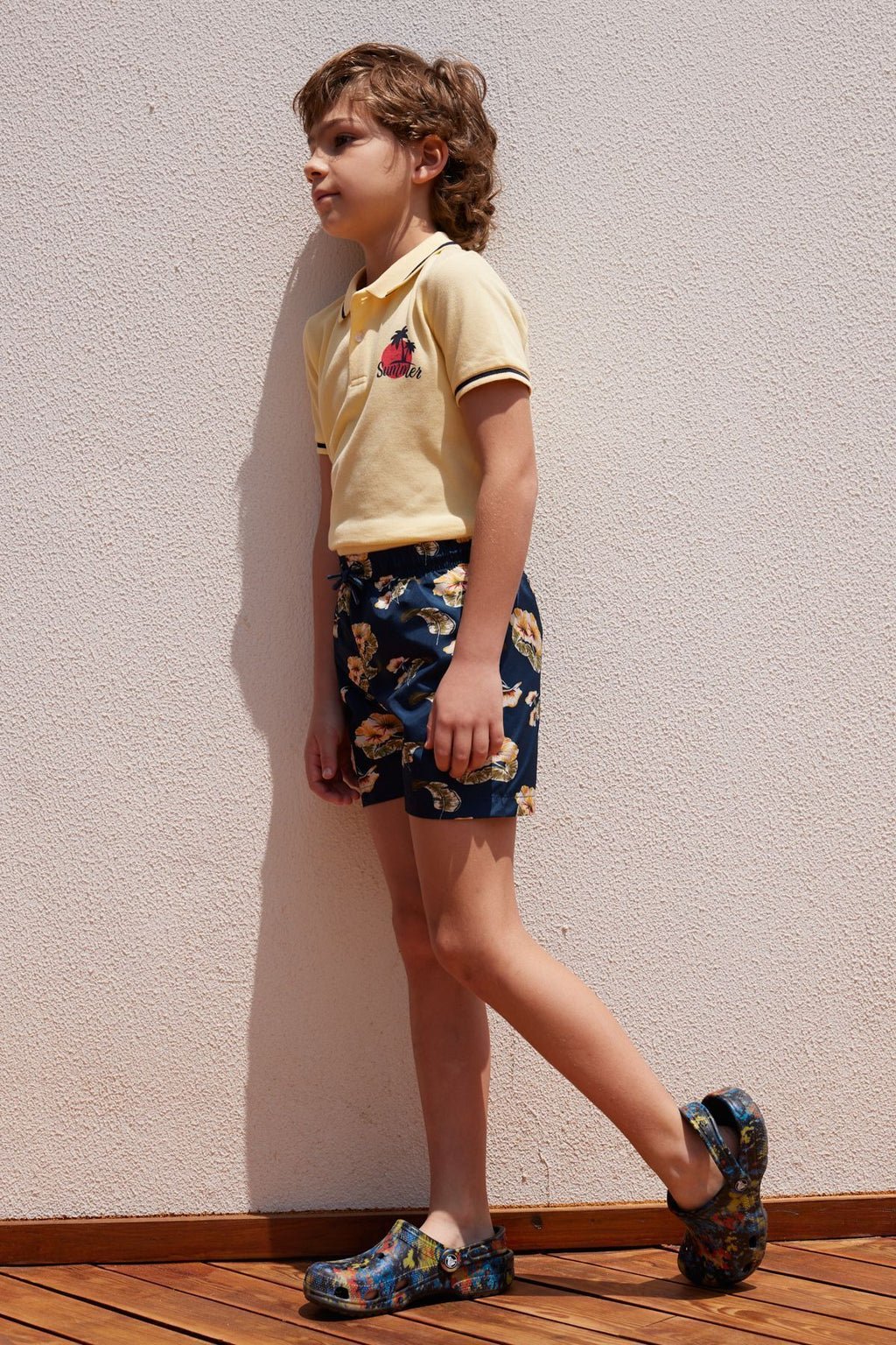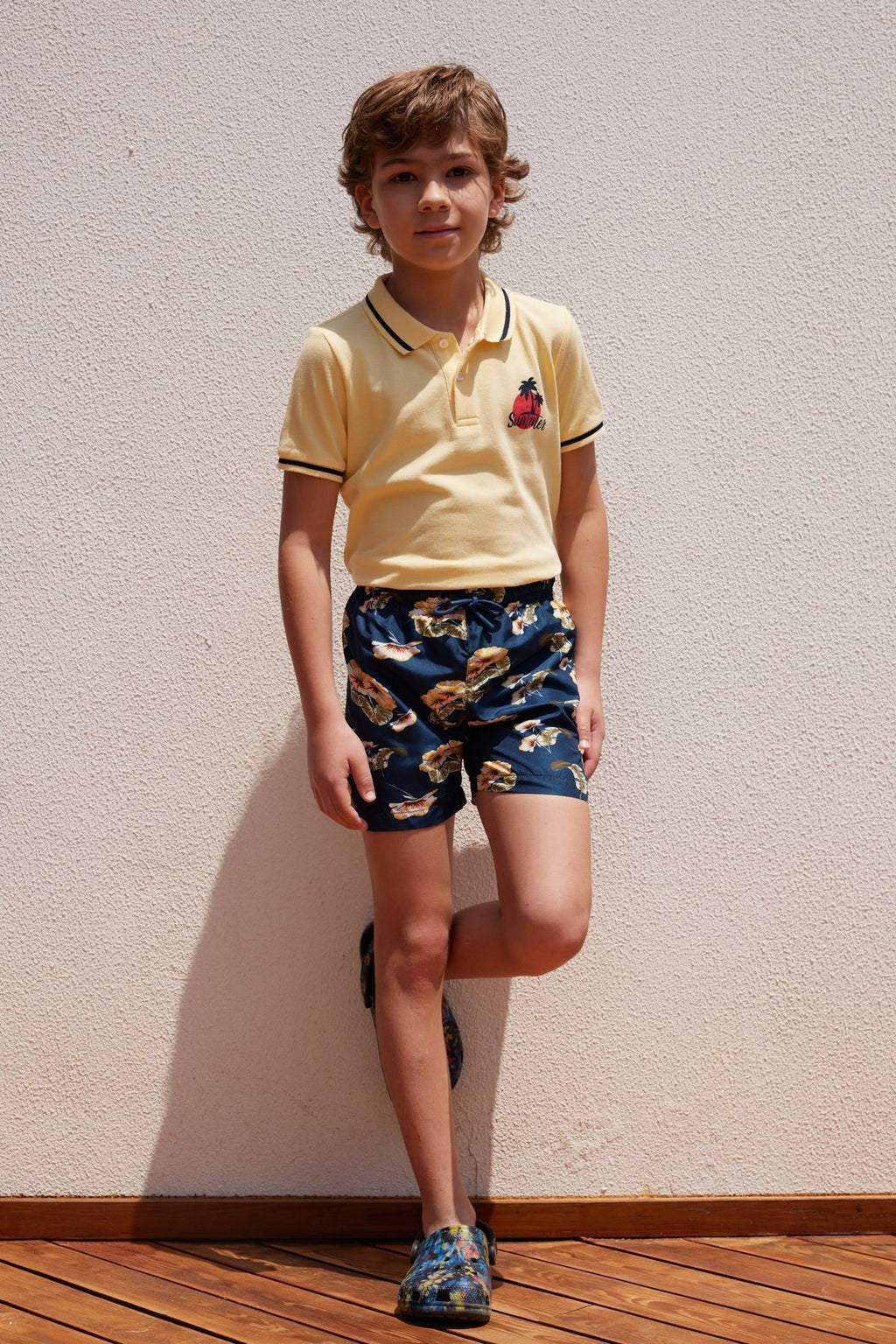Men's Navy Blue-Yellow Standard Fit Normal Cutting Fast Drying Patterns Children's Mayo Sea Short