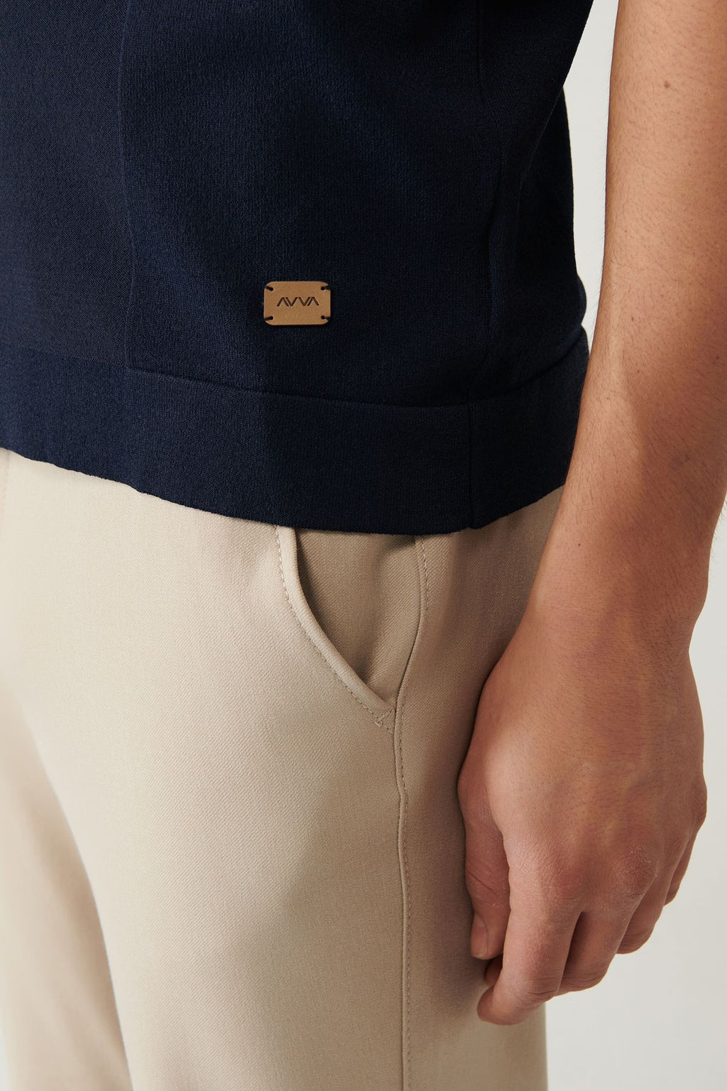 Men's navy blue zipper rayon Polo Yaka Triko T-shirt A41y5106