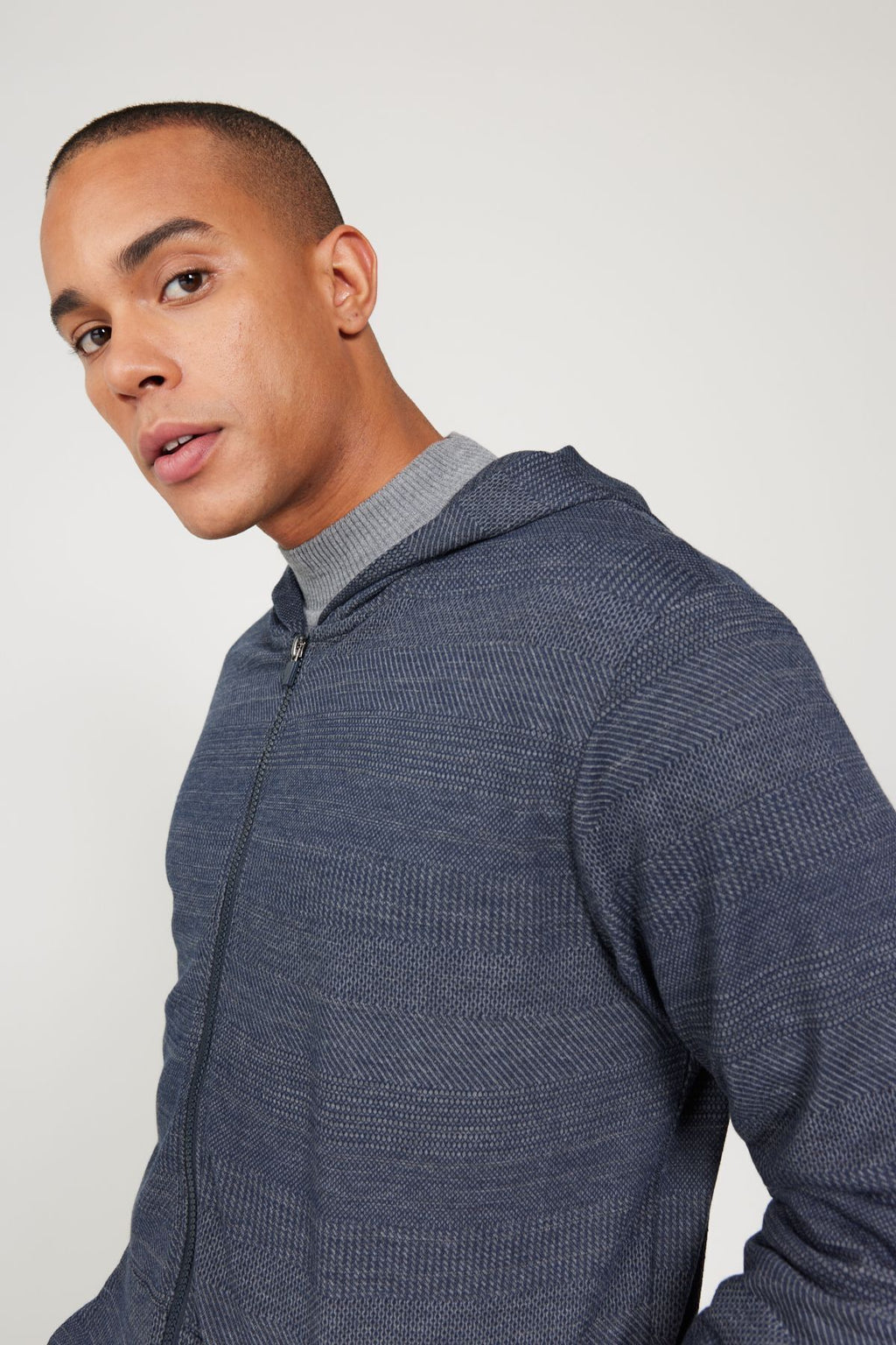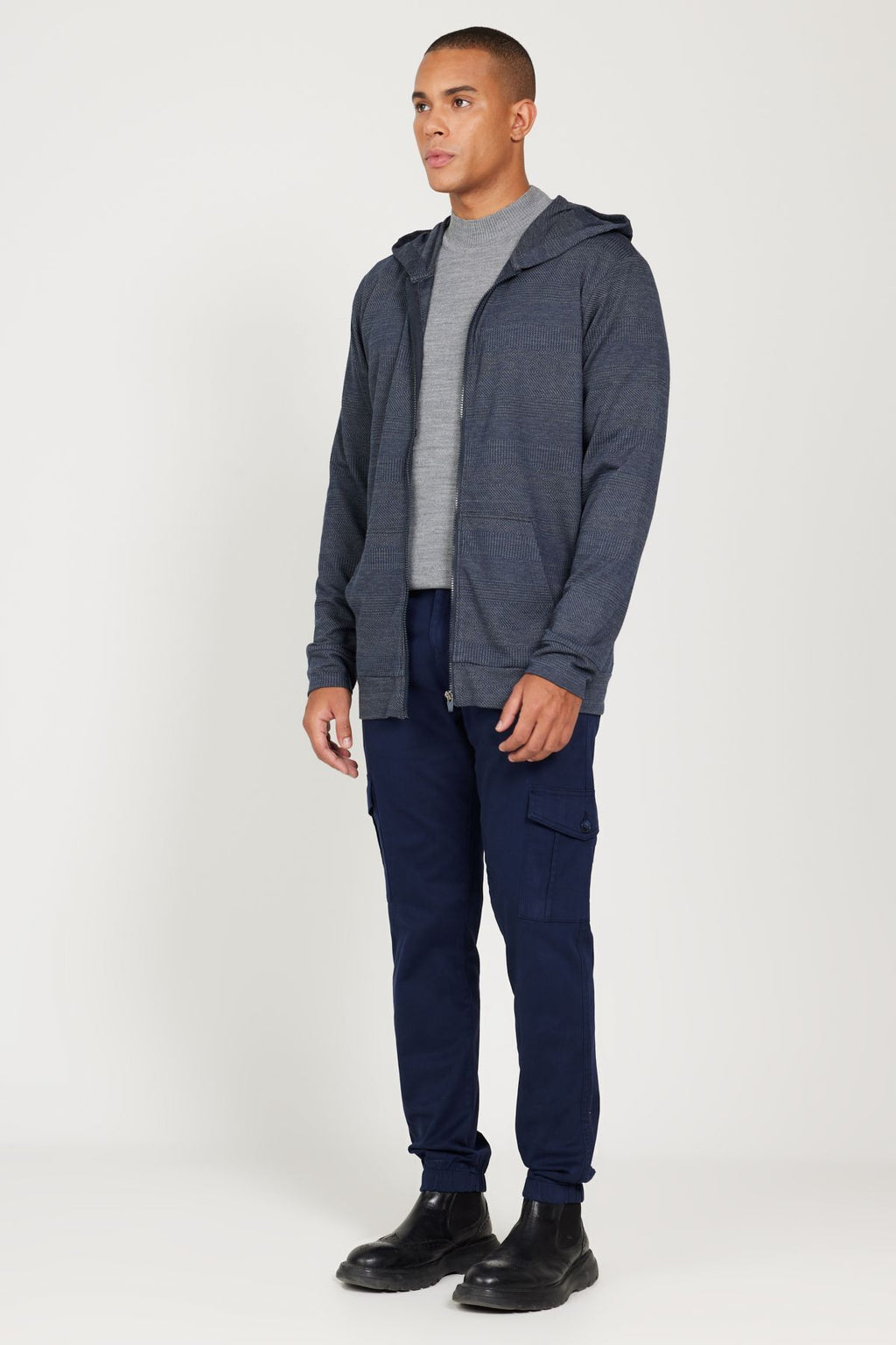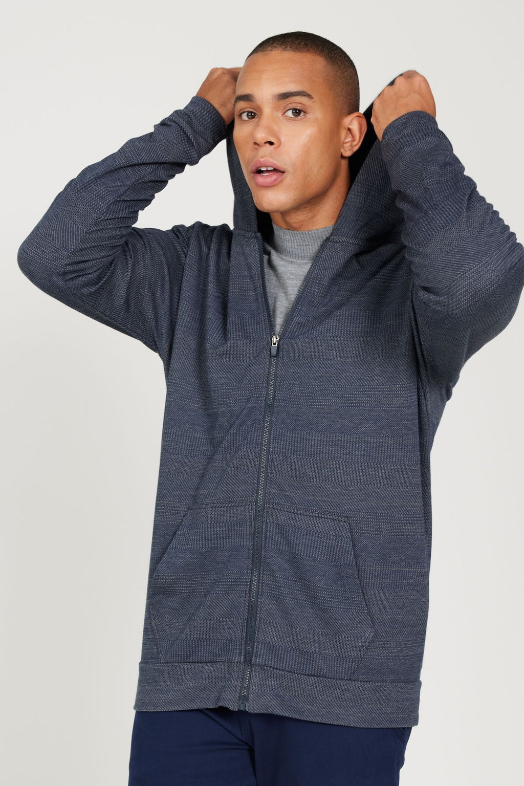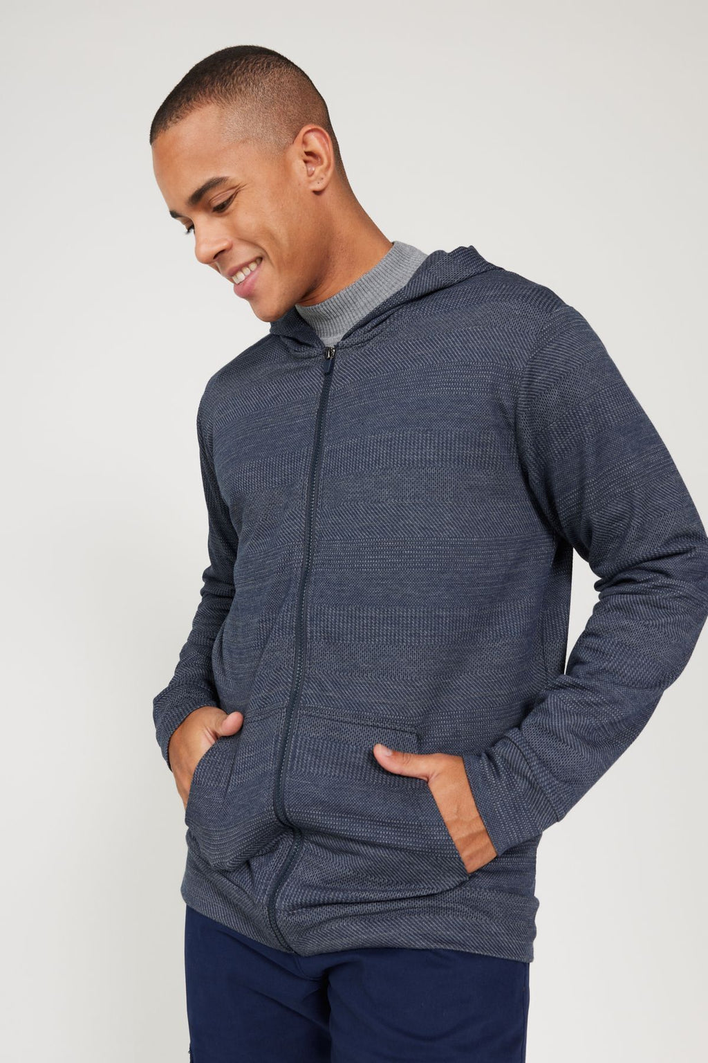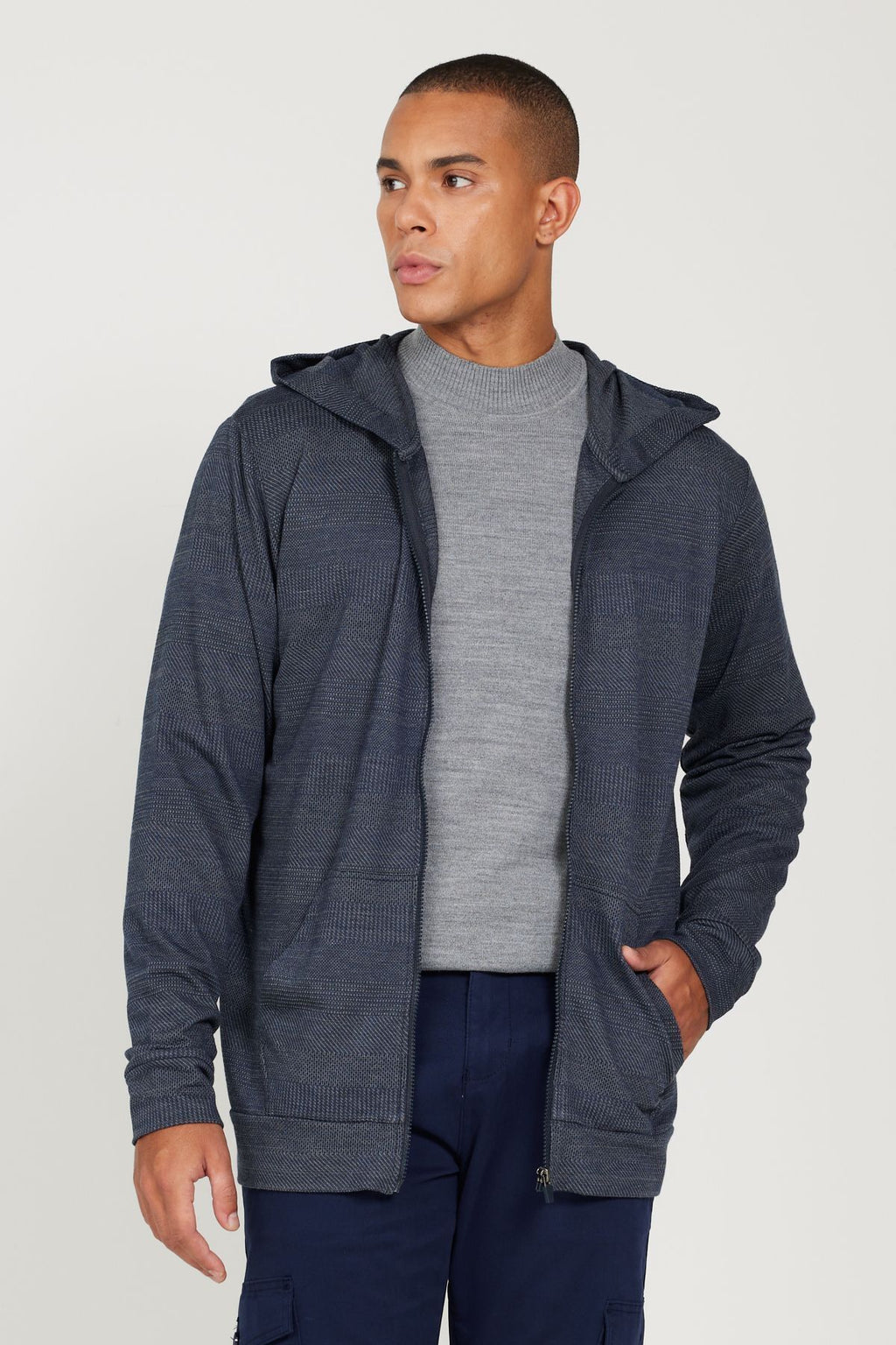 Men's Navy-Gri Standard Fit Normal Normal Cut Hooded Zipper Sweatshirt Jacket