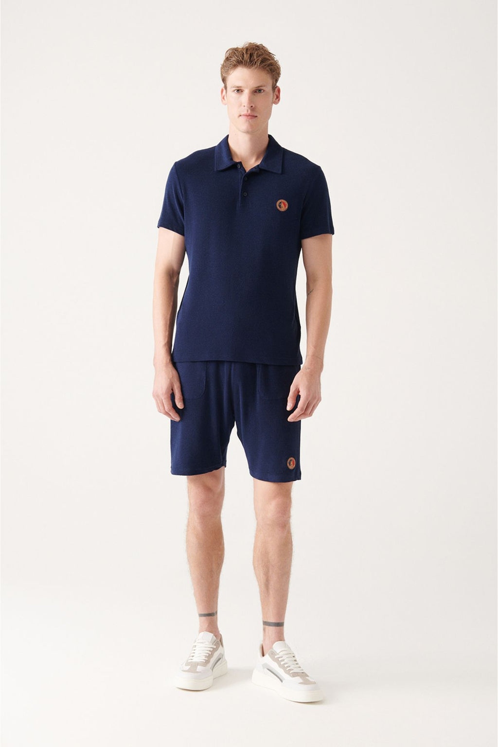 Men's Navy Soft Touch Towel Marine Printed Polo Yaka T-shirt A31y1033