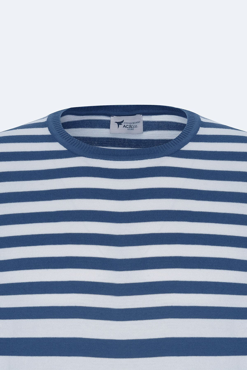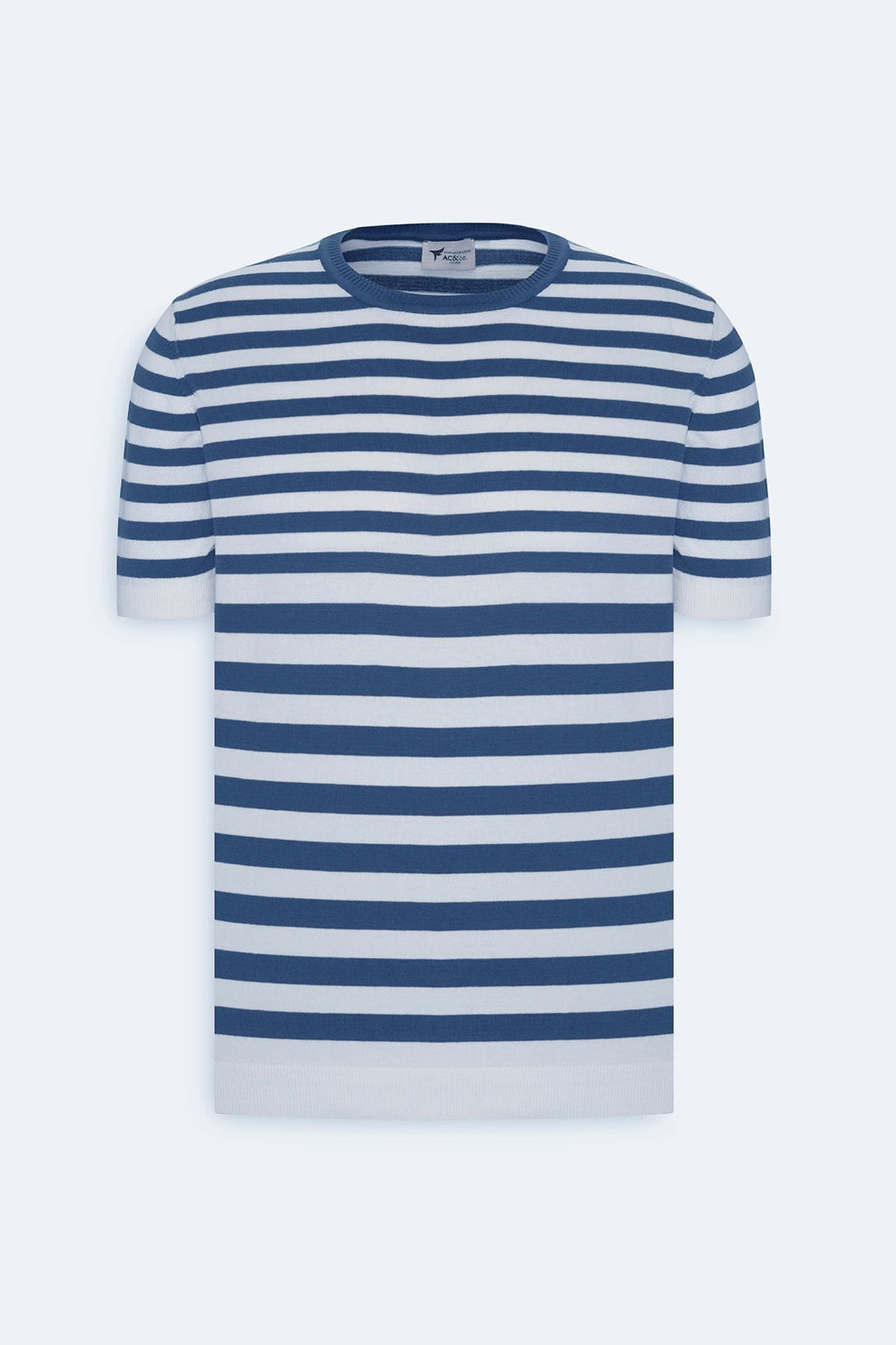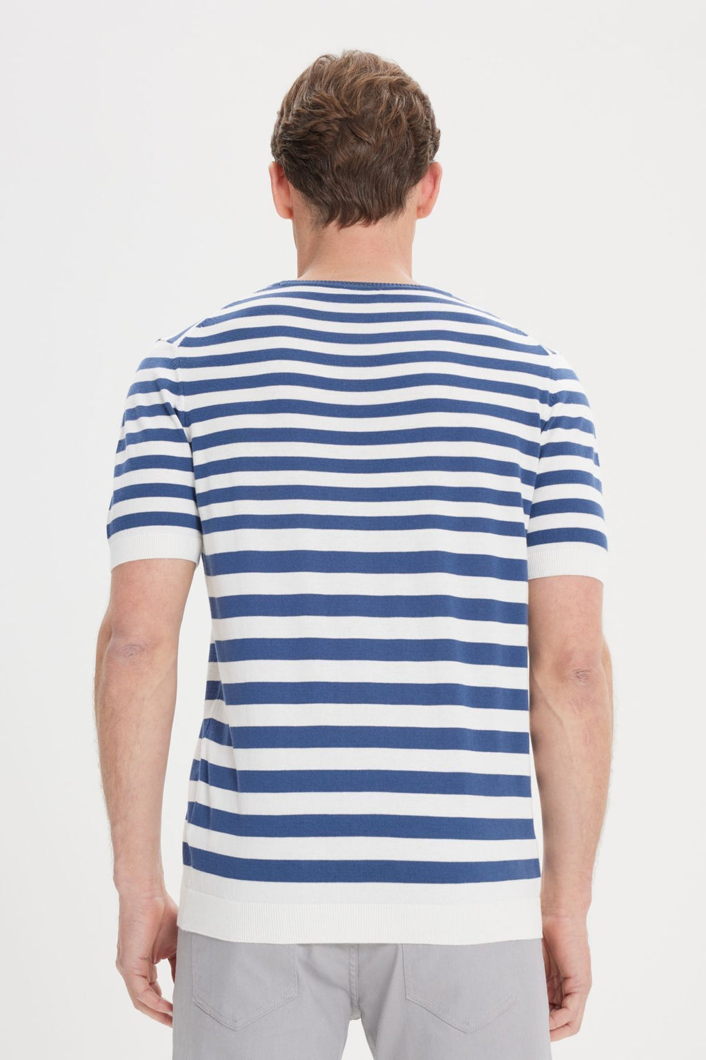 Men's Navy-White Slim Fit Narn Cut 100 %Cotton Striped Bicycle Yaka Triko T-shirt