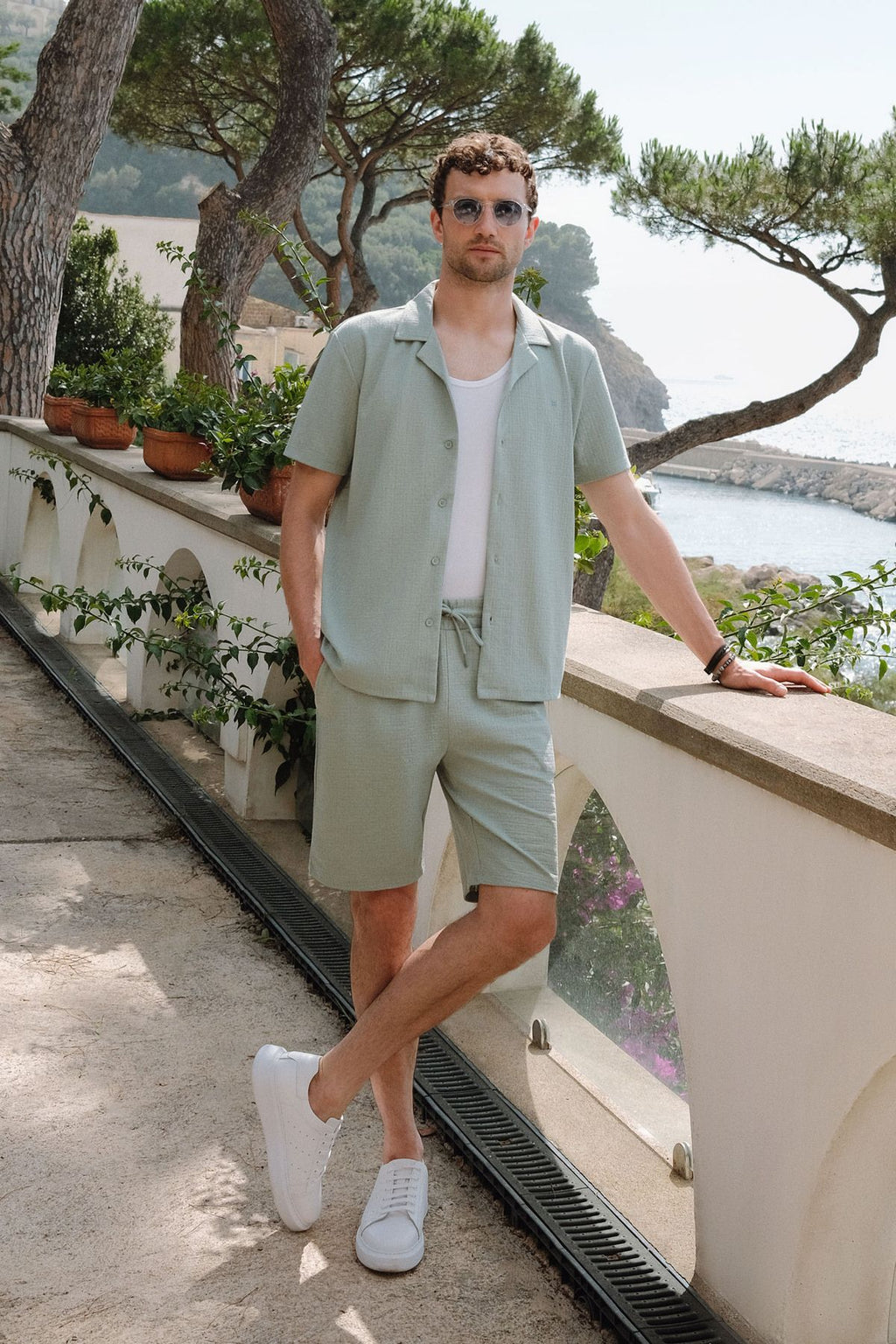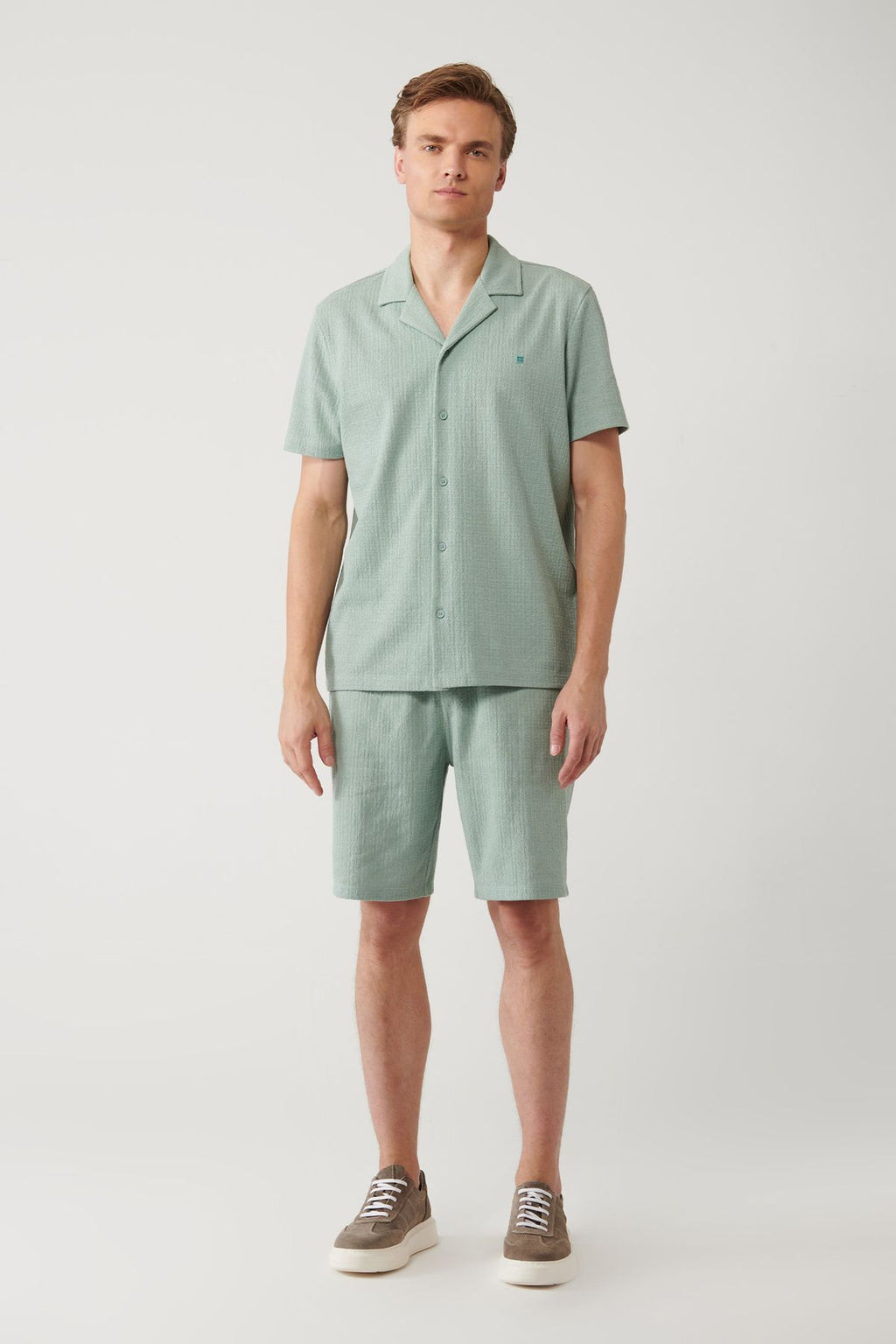 Men's Nile Green Apaj Yaka Jacquard Shirt A41y2216