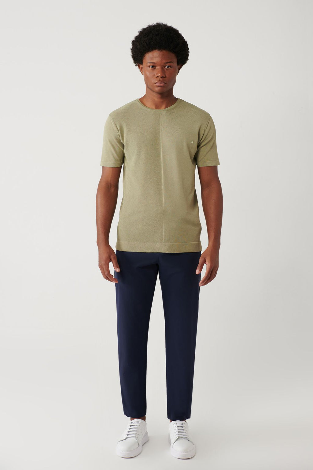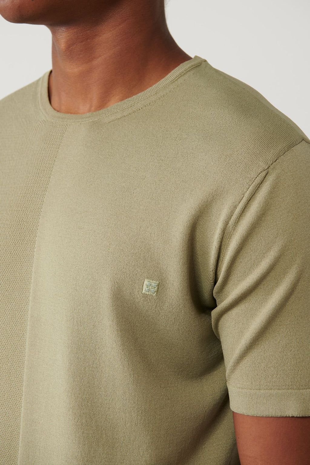 Men's Open Khaki Bicycle Collar Rayon textured knitwear T-shirt A41y5099