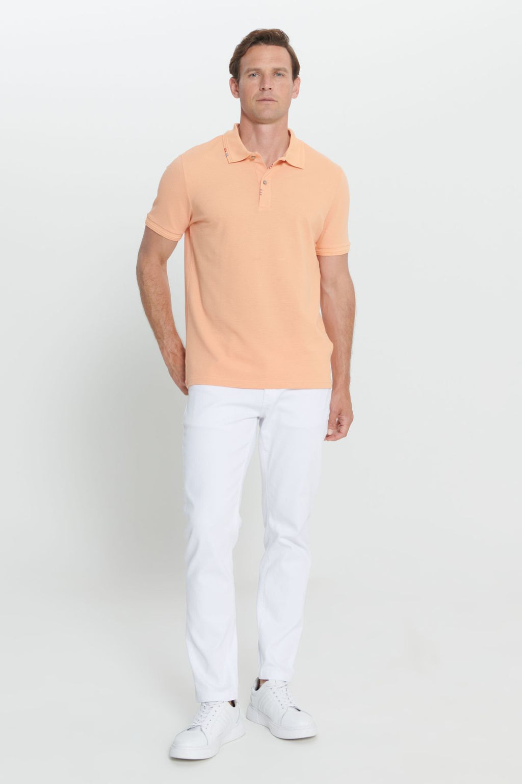 Men's open orange slim fit narrow cut polo collar printed cotton T -shirt