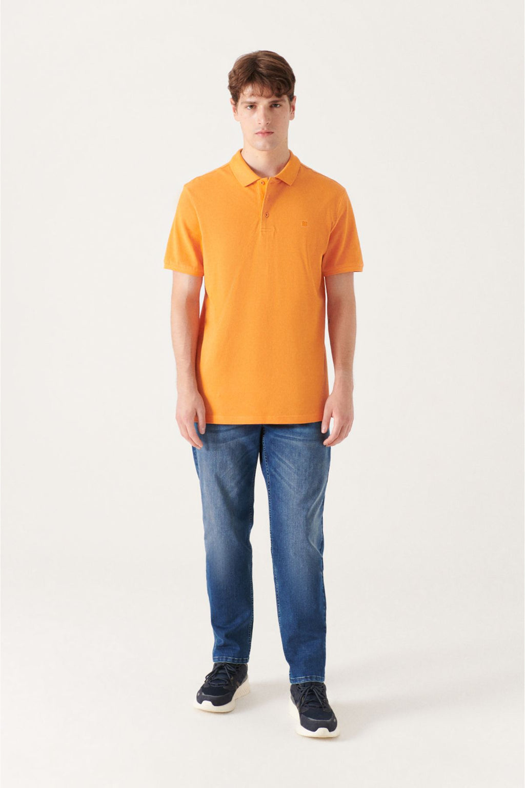 Men's Orange 100 %Cotton Cool Polo Yaka T-shirt E001004