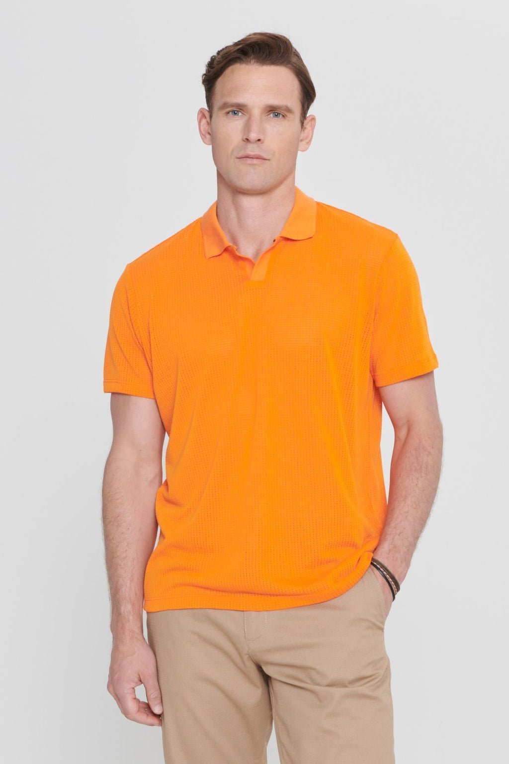Men's orange regular fit comfortable cut polo collar label detailed T -shirt