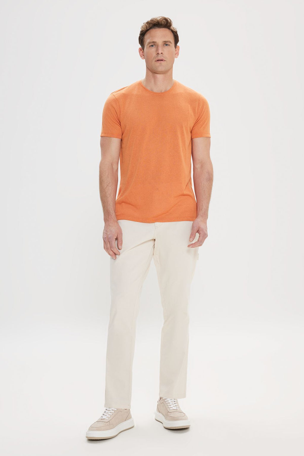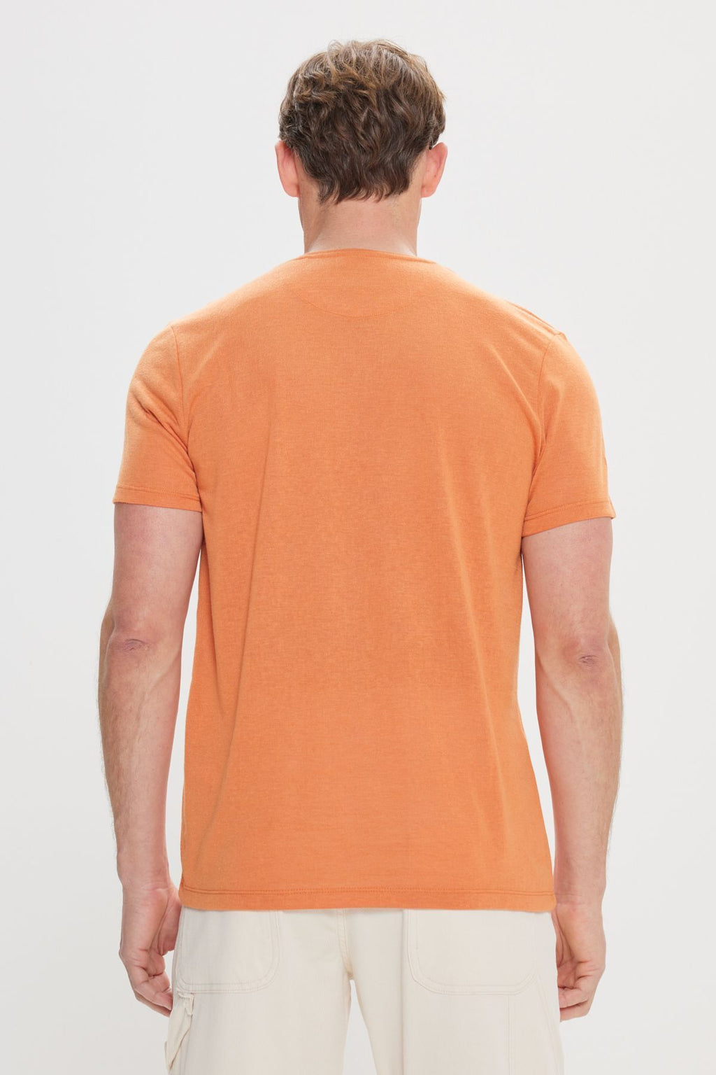 Men's orange slim fit narrow cut bike bike collar linen -looking T -shirt