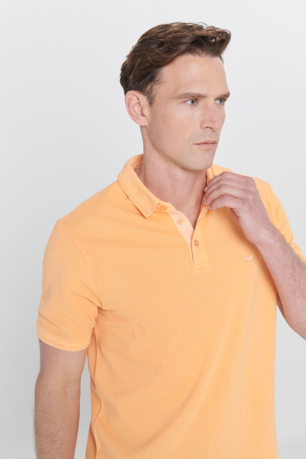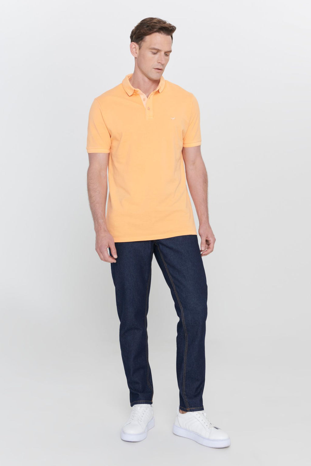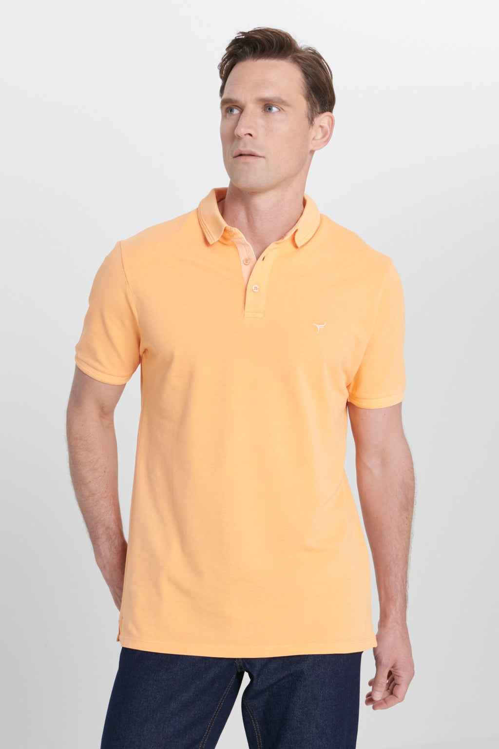 Men's orange slim fit narrow cut polo collar 100 %cotton patterned T -shirt