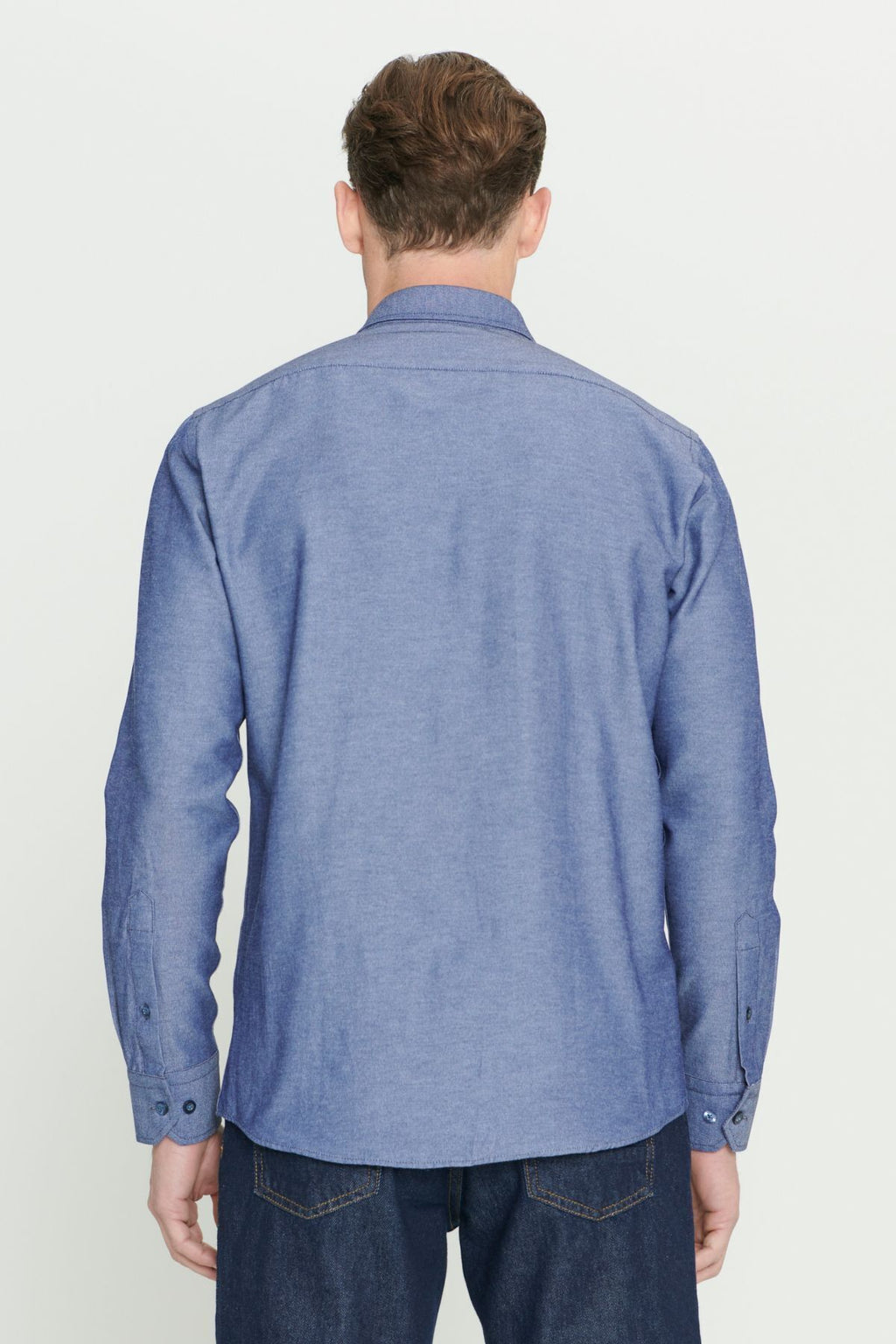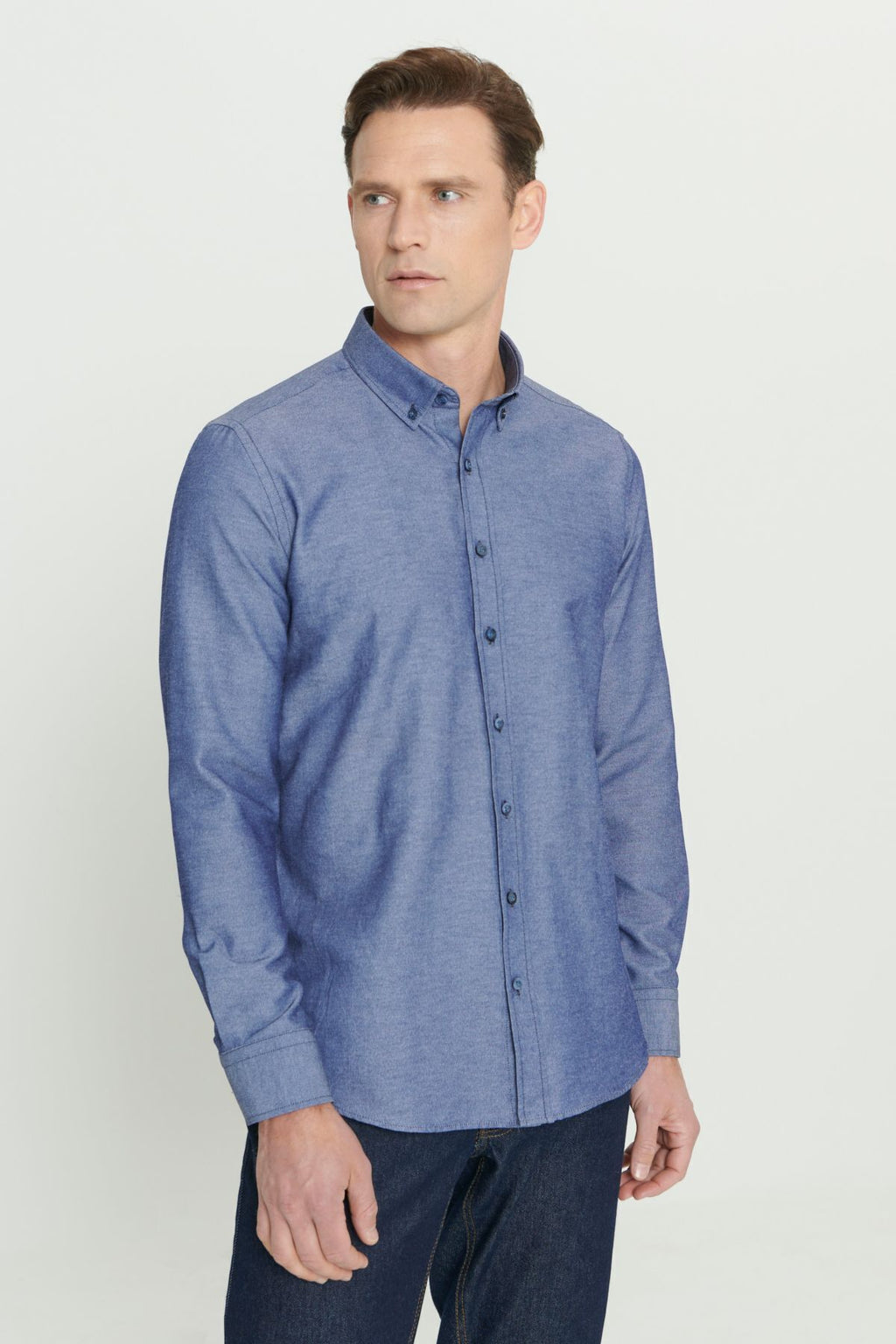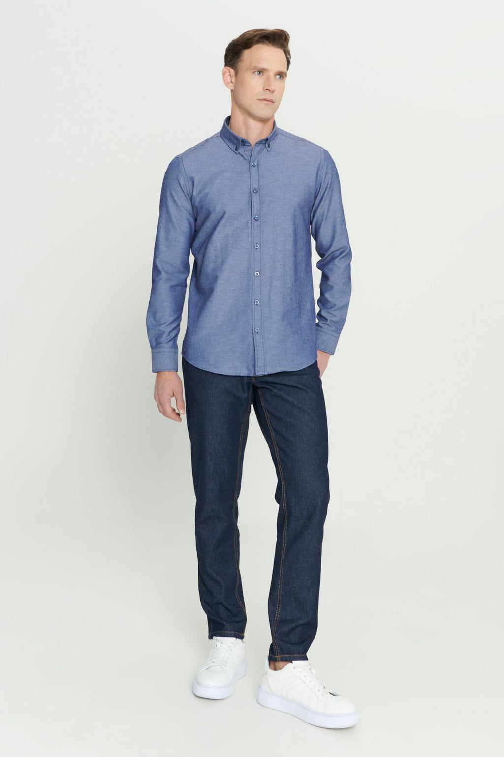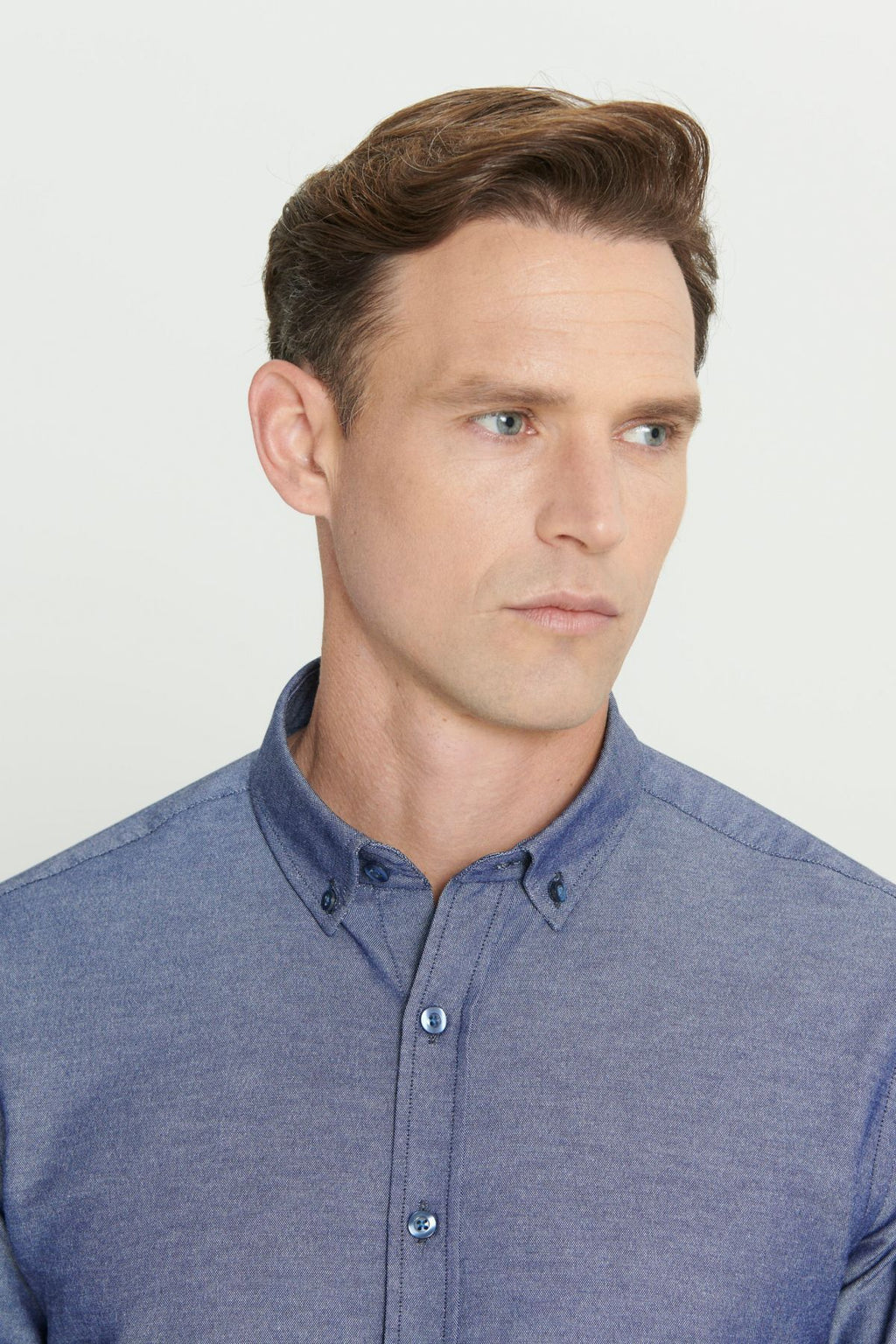 Men's Oxford Navy Blue button collar easy to ironing cotton slim fit narrow cut shirt