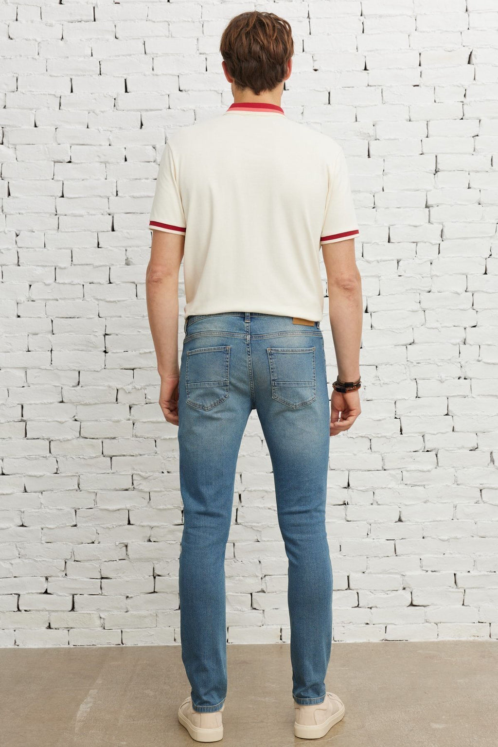 Men's petroleum blue extra slim fit narrow cut cotton flexible RISS jean jeans denim pants