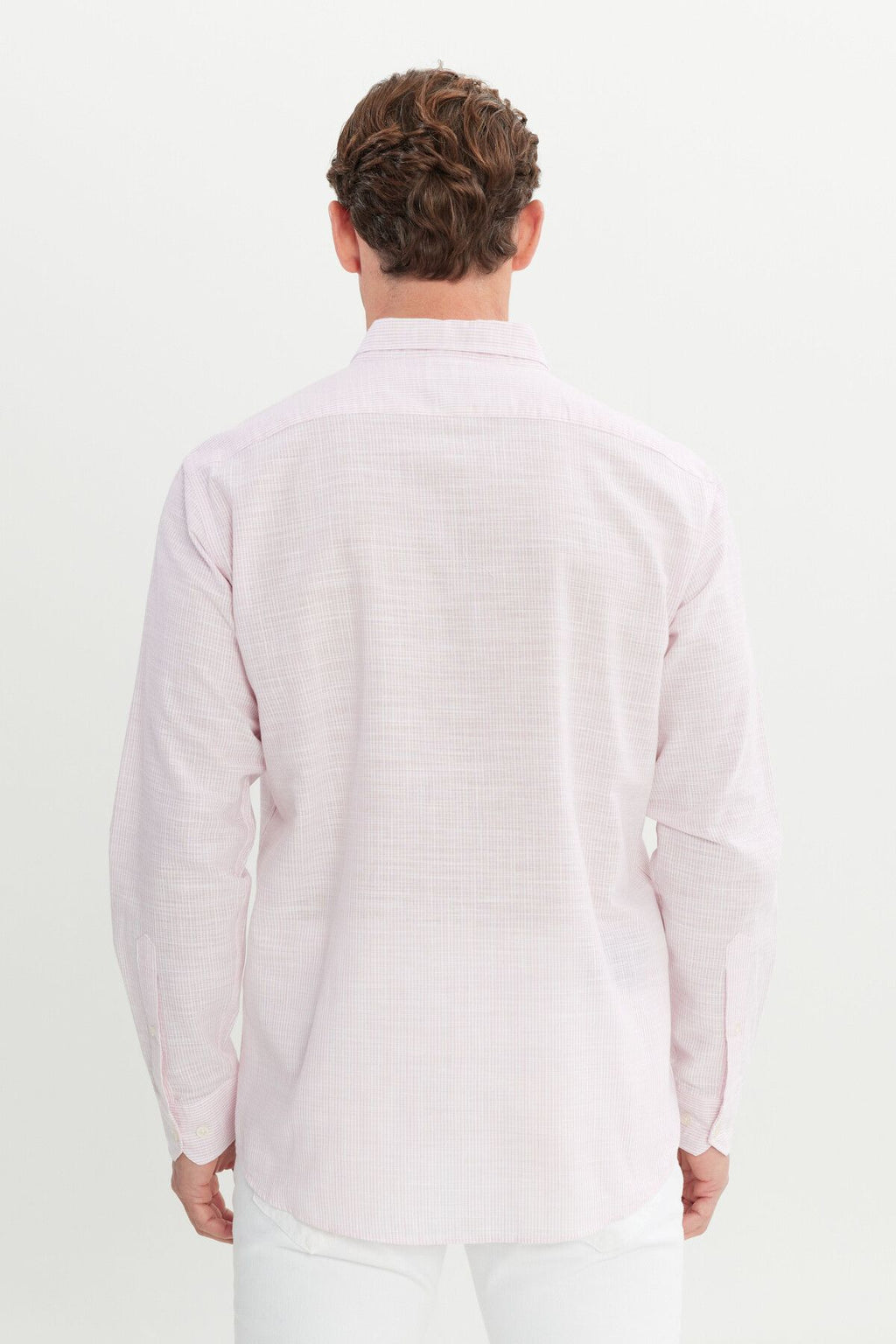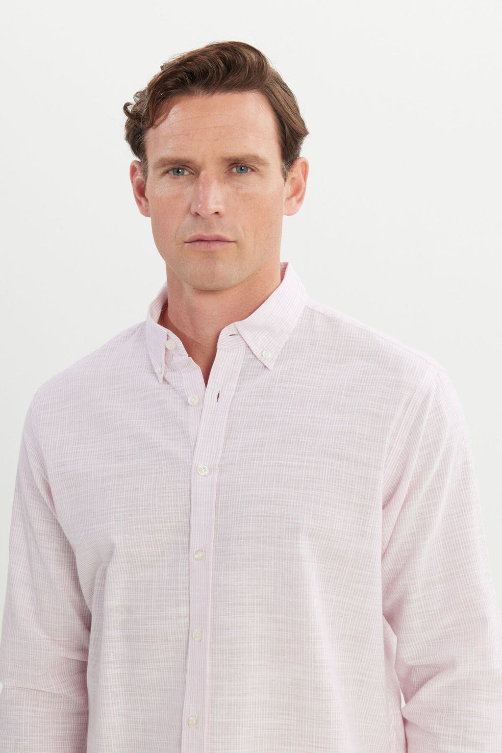 Men's powder pink 100 %cotton comfort fit comfortable cut buttoned collar striped shirt