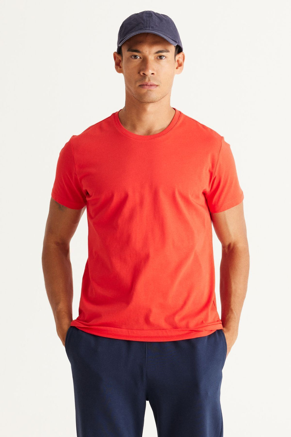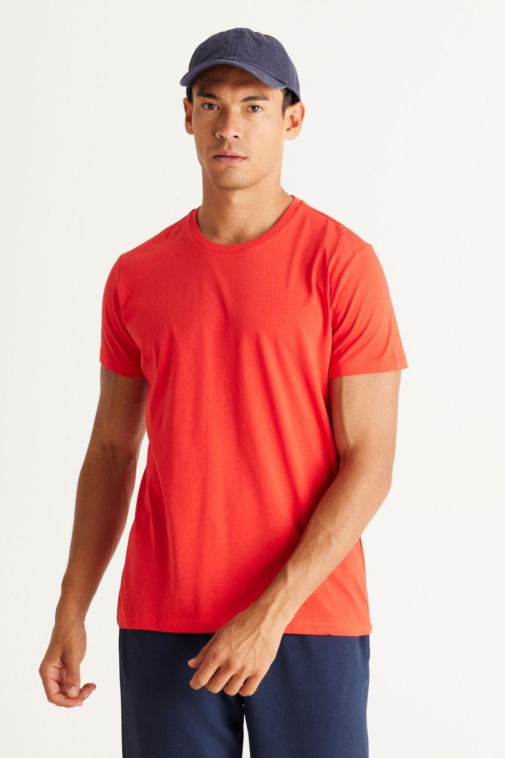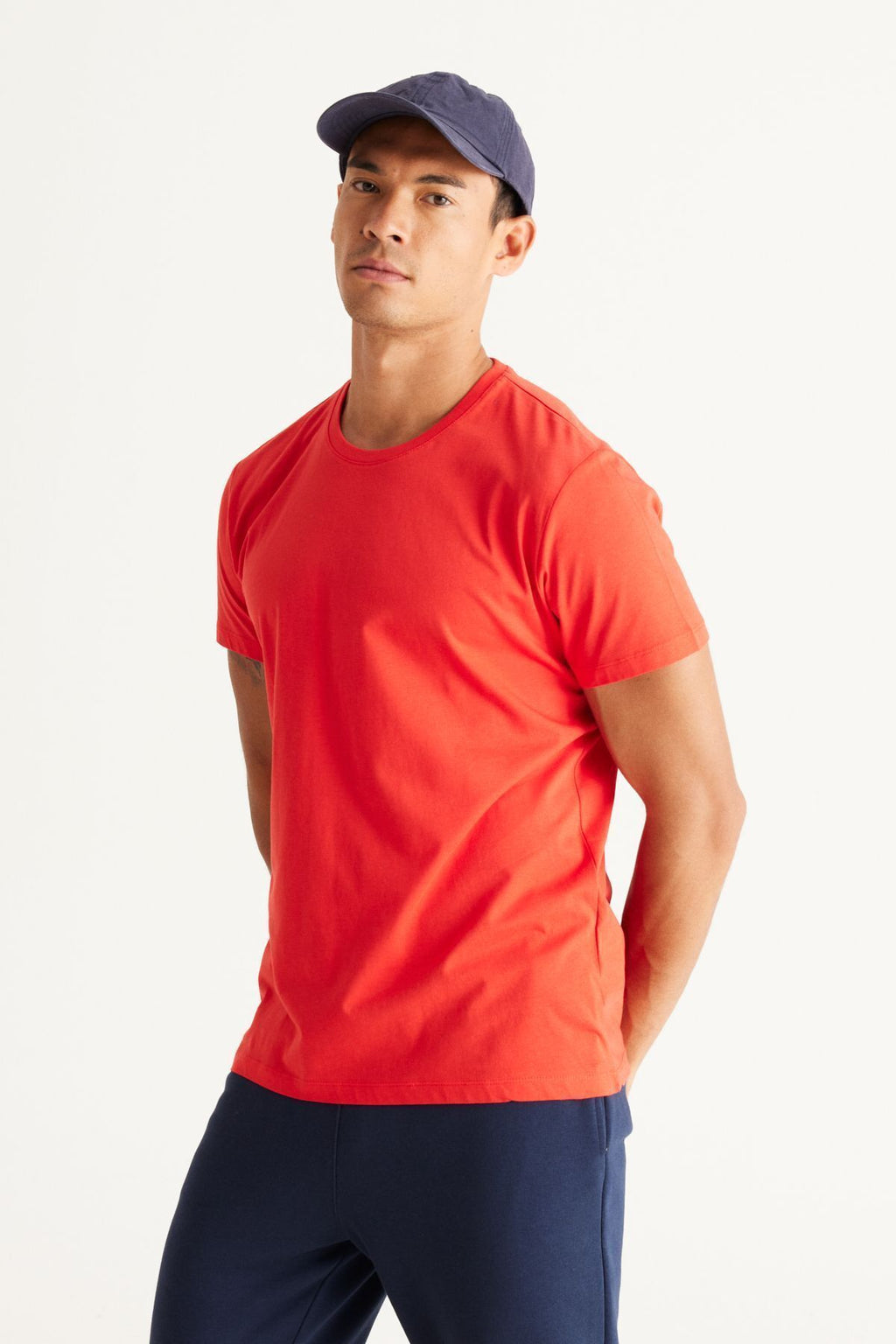 Men's Red 100 %Cotton Slim Fit Narrow Cut Bike Bike Basic T -shirt