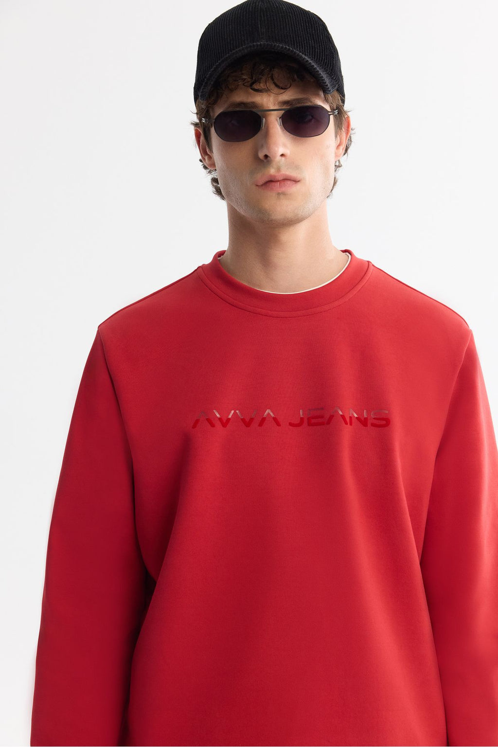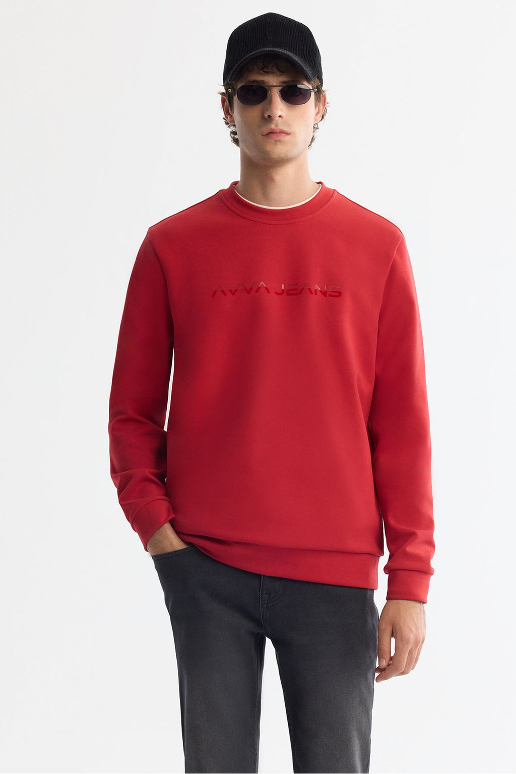 Men's Red Bicycle Collar Cotton Printed Elastan Sweatshirt A42Y1221