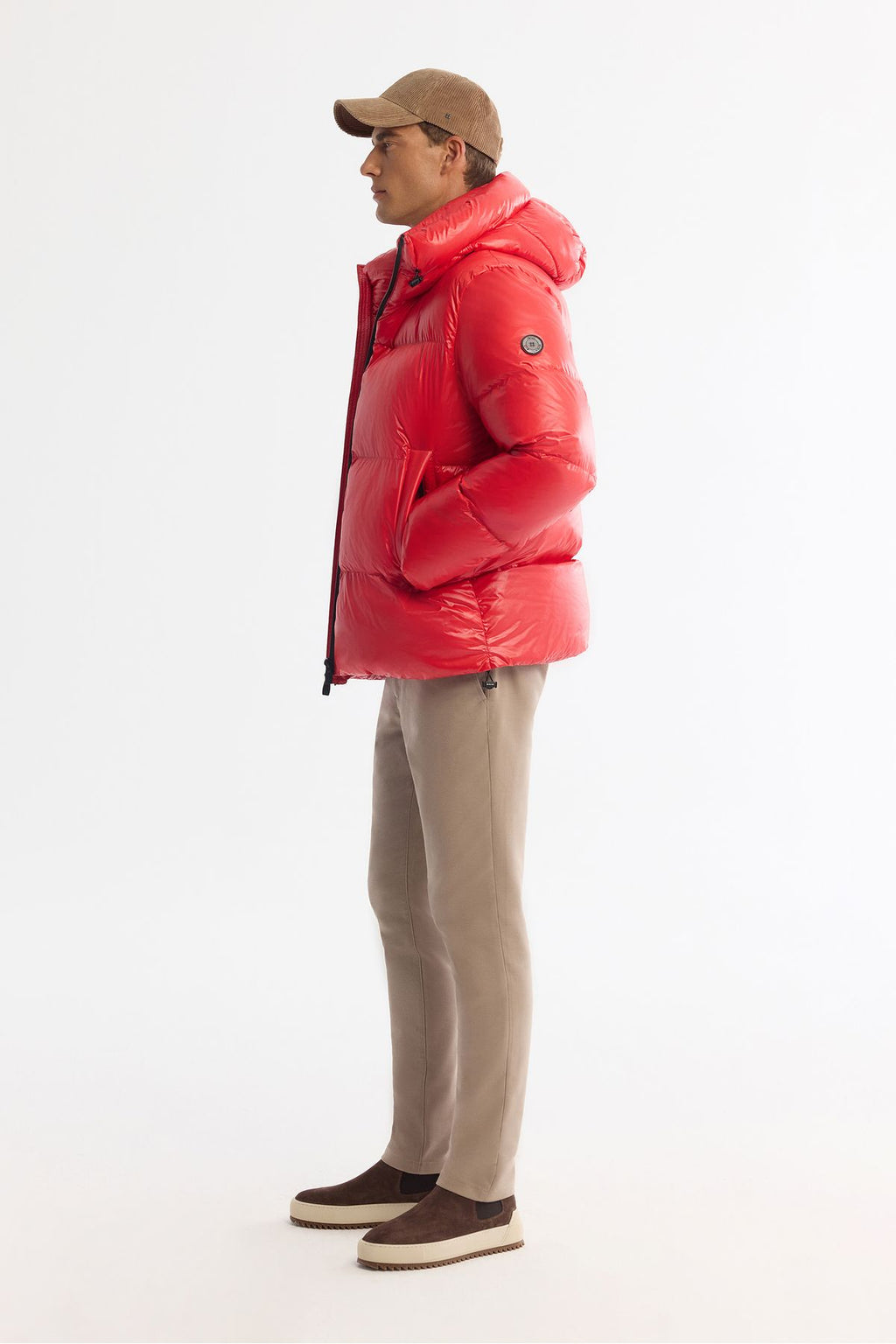 Men's red hooded goose feather water relief windproof -20 degrees resistant swelling coat A42y6182