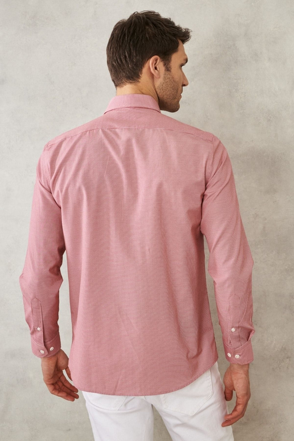 Men's red slim fit narrow cut Oxford buttoned collar pududo cotton shirt