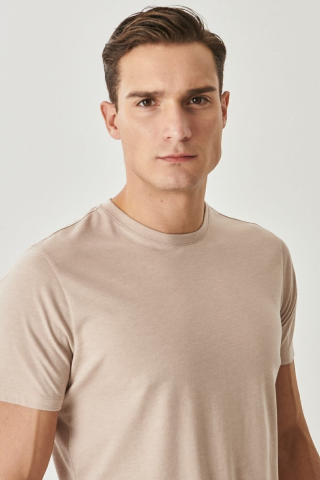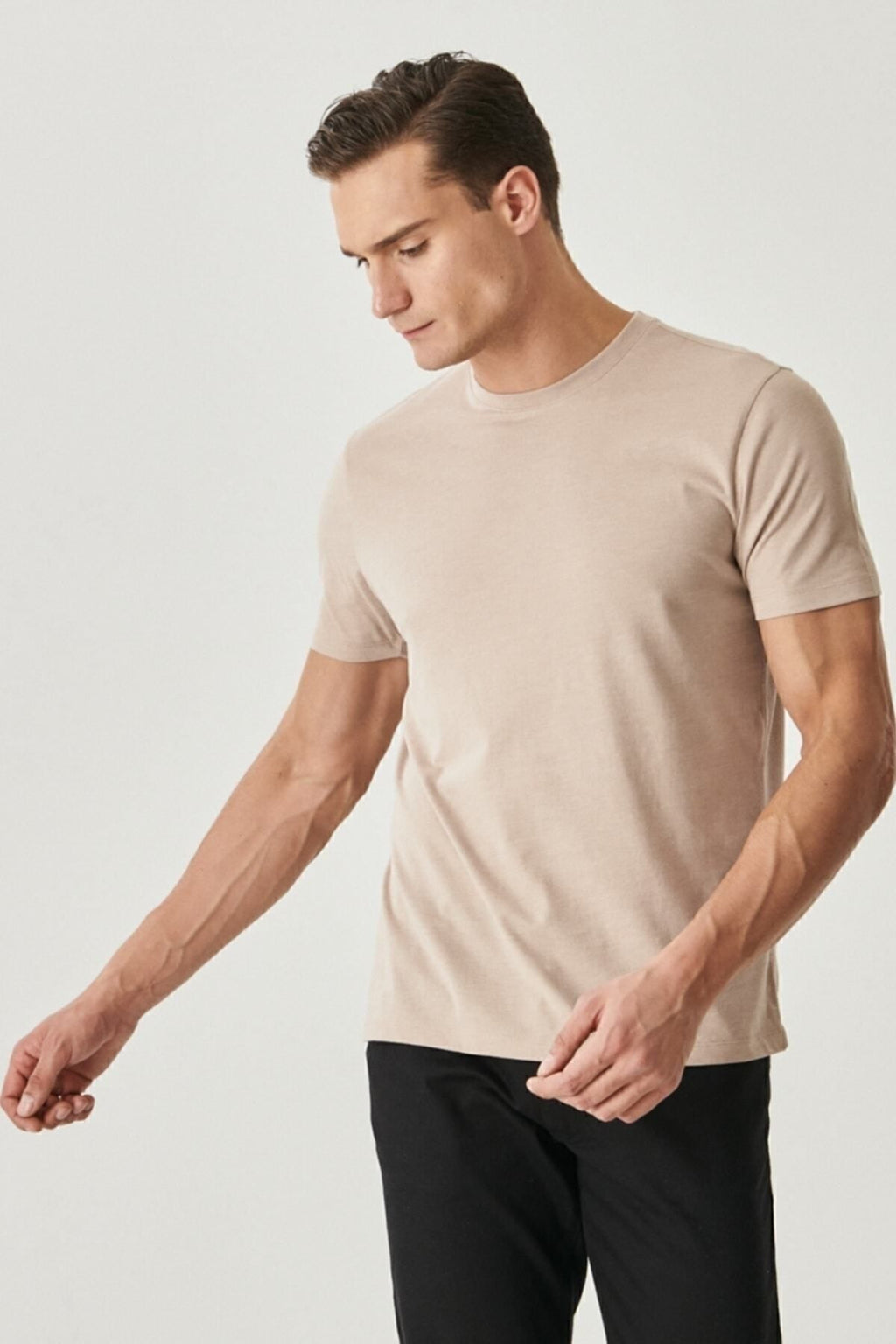 Men's Rights-Bej melanj Slim fit narrow cut bike bike collar 2 t-shirt package