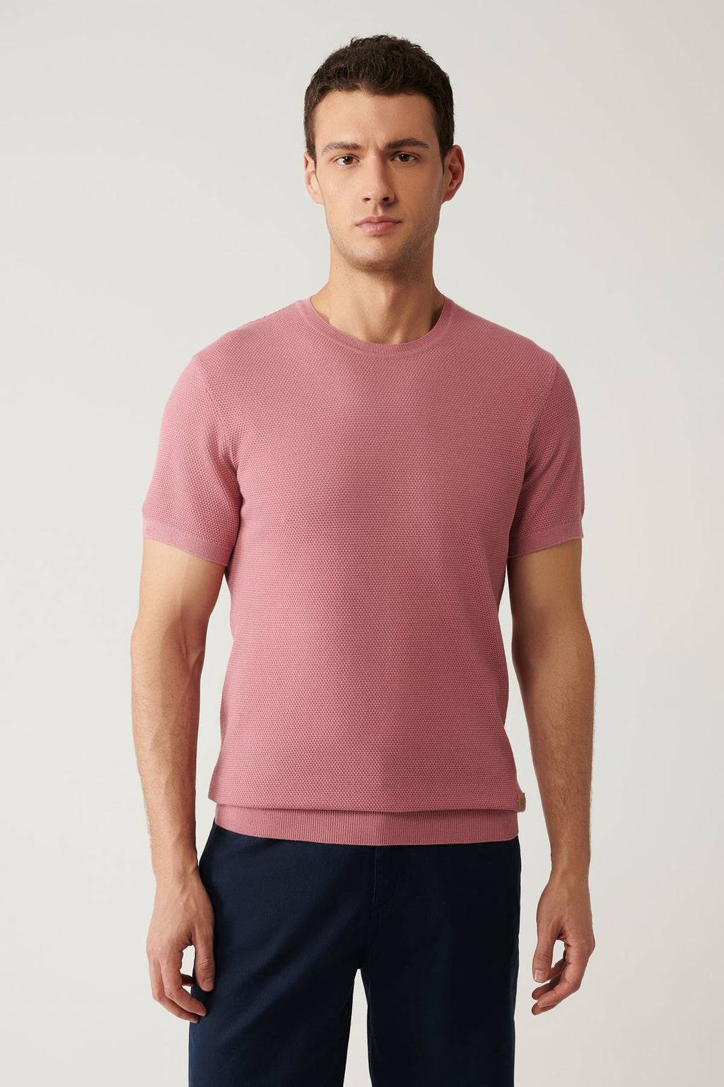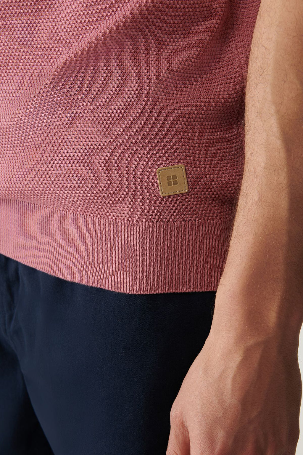 Men's rose dry bicycle collar textured cotton knitwear t-shirt E005027
