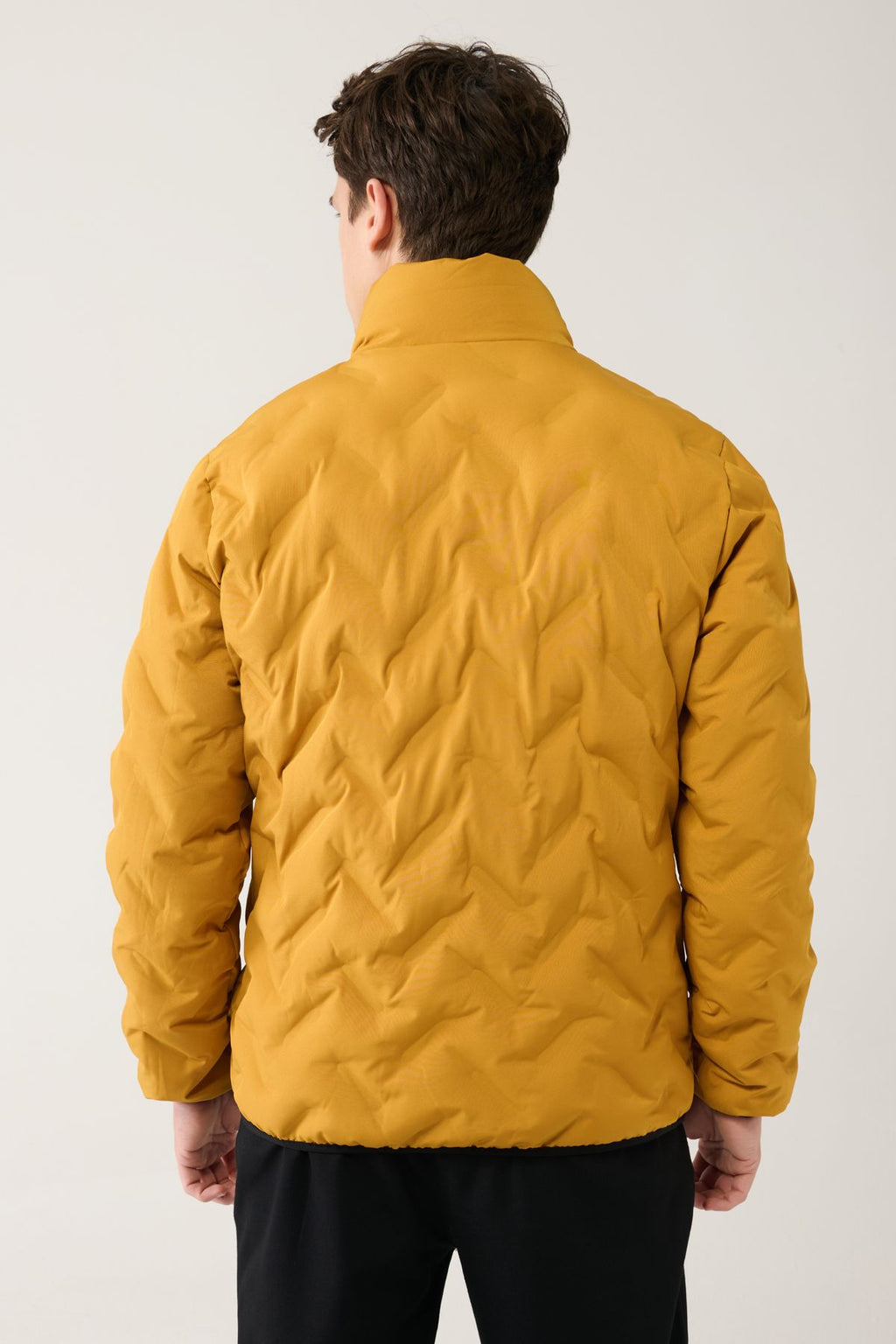 Men's saffron upright collar water repulsive windproof light swelling coat E006036