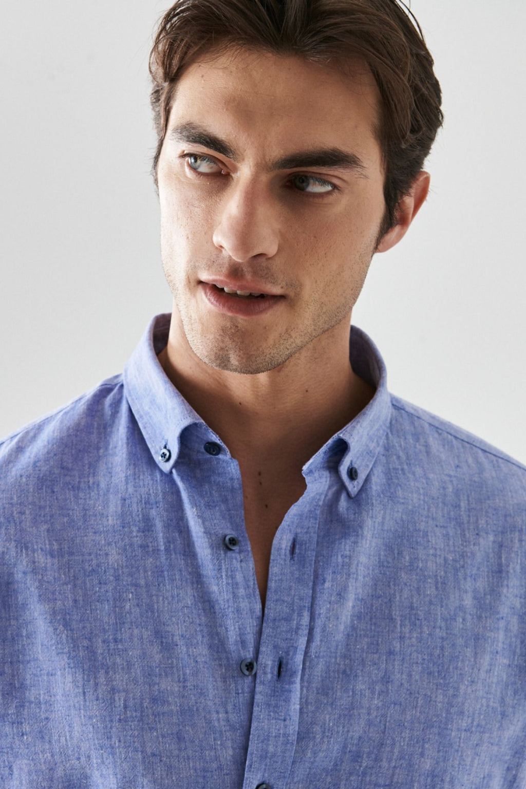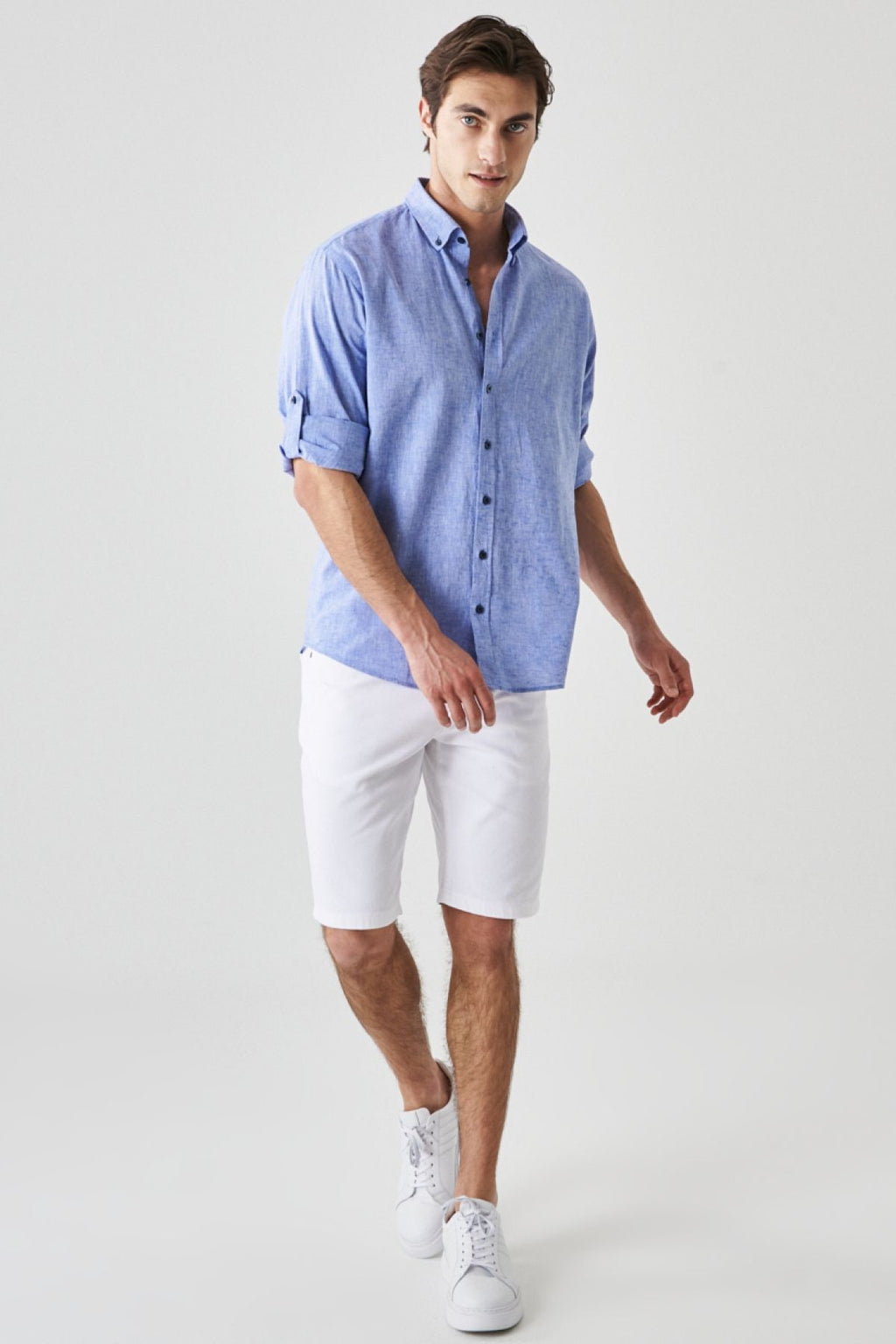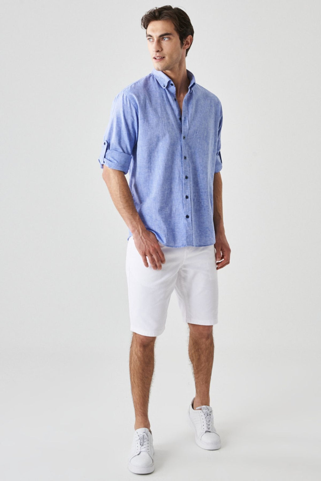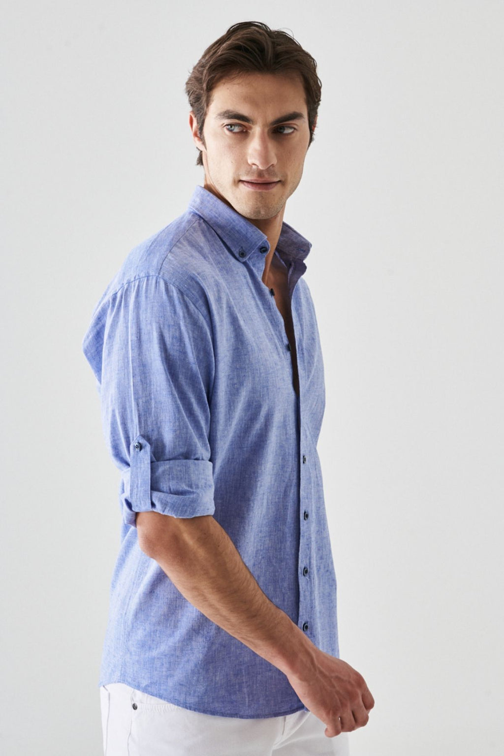 Men's Saks Blue Linen Comfort Fit Casual Cutton Casual Shirt with button
