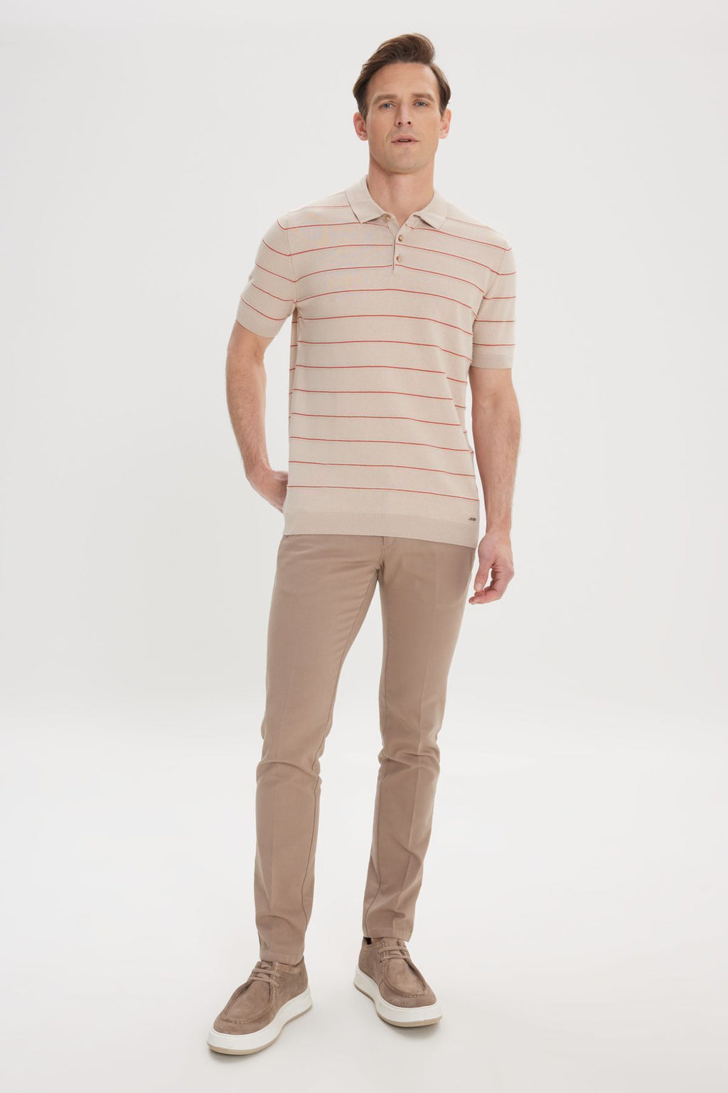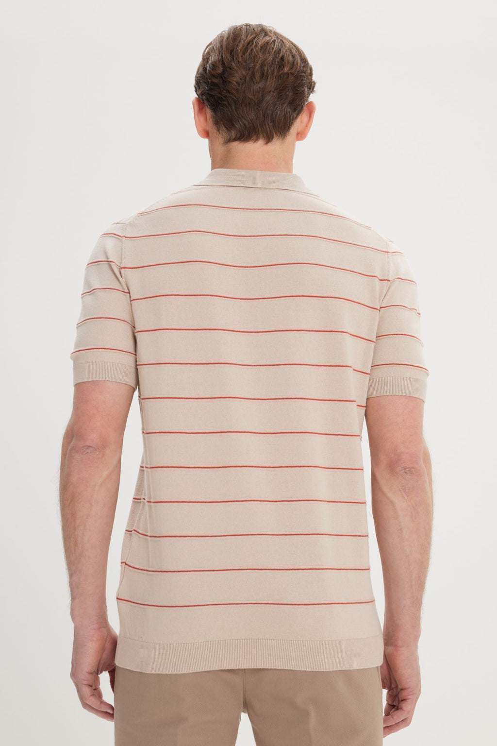 Men's Sizon-Orange Standard Fit Normal Cut 100 %Cotton striped Polo Yaka knitwear T-shirt