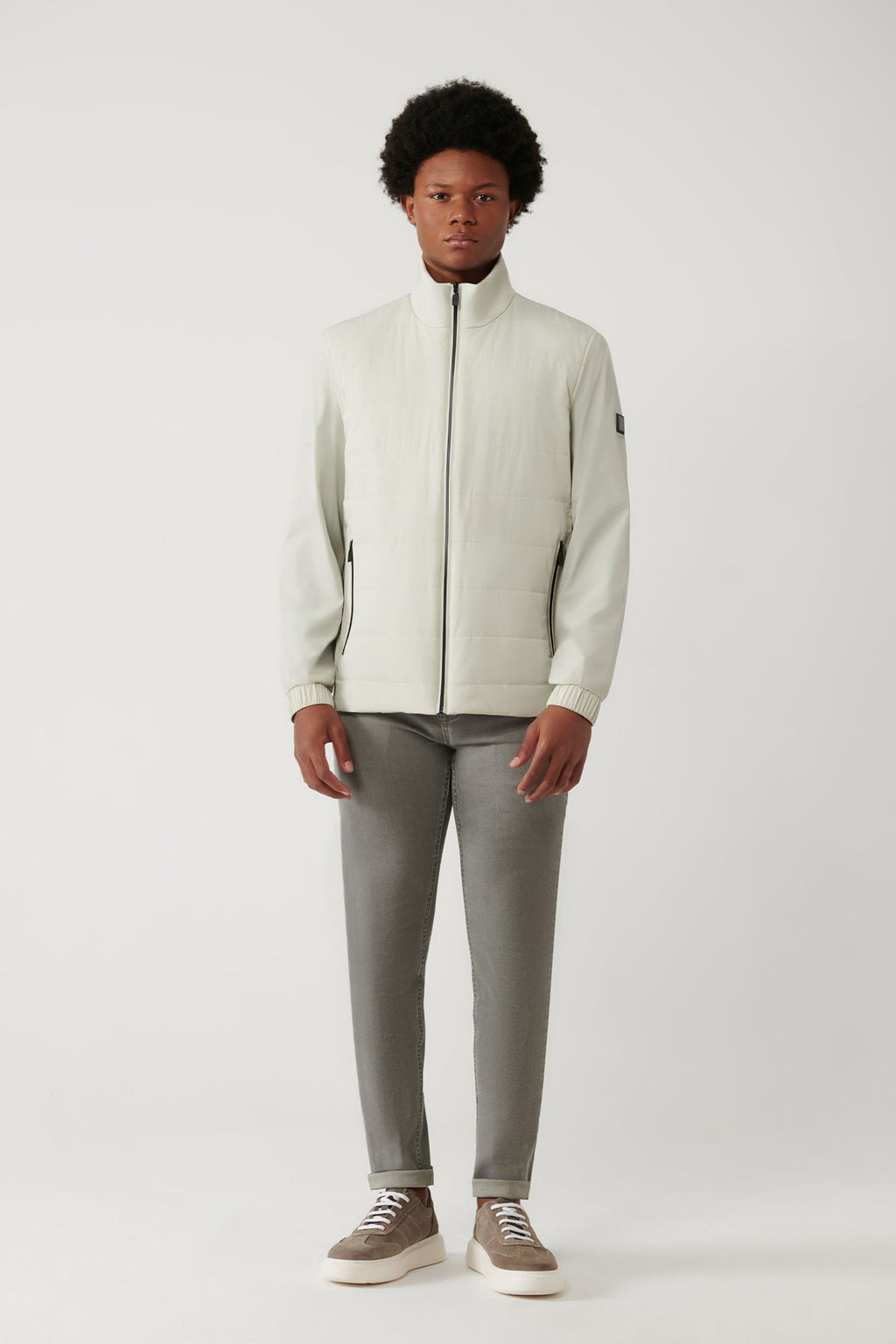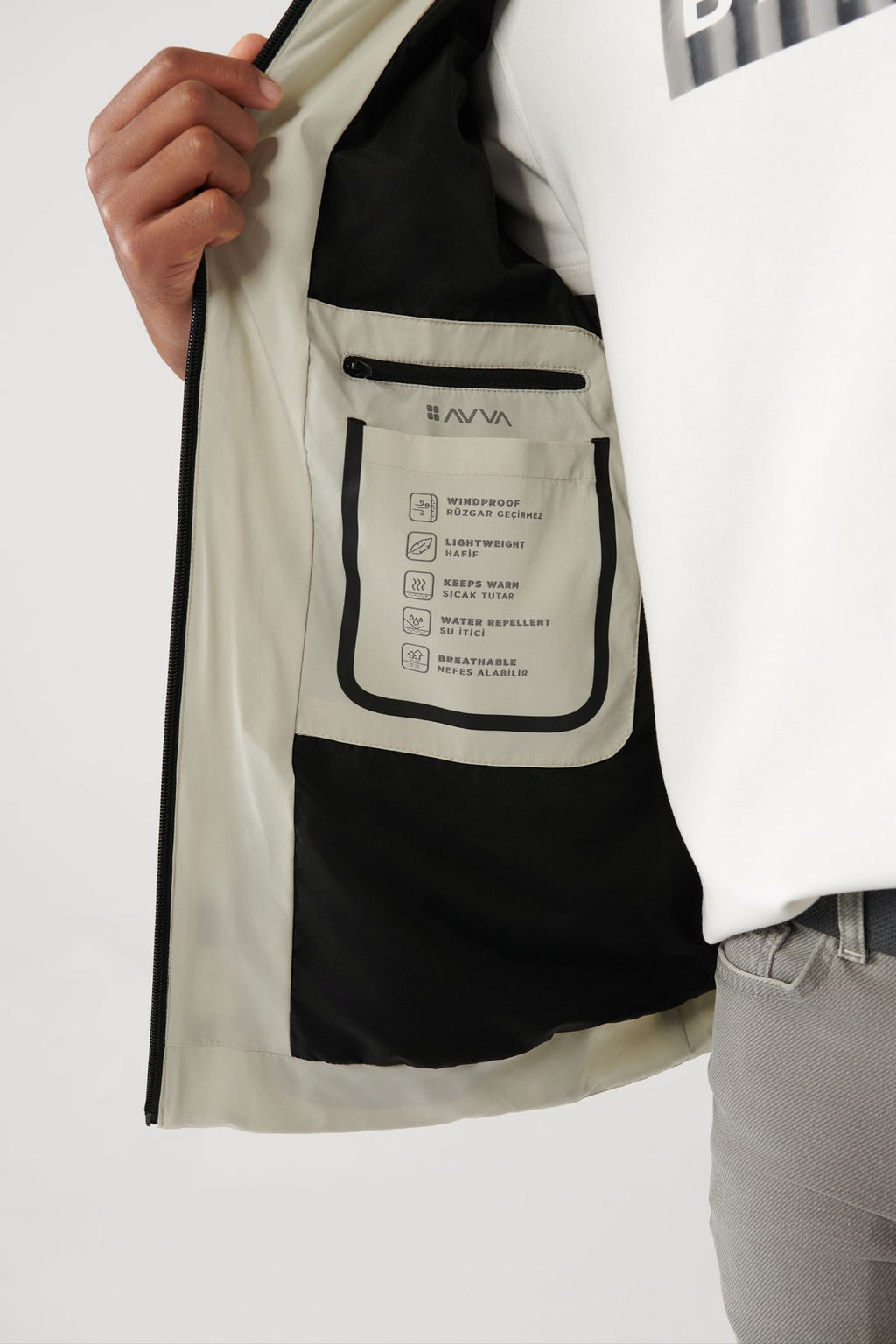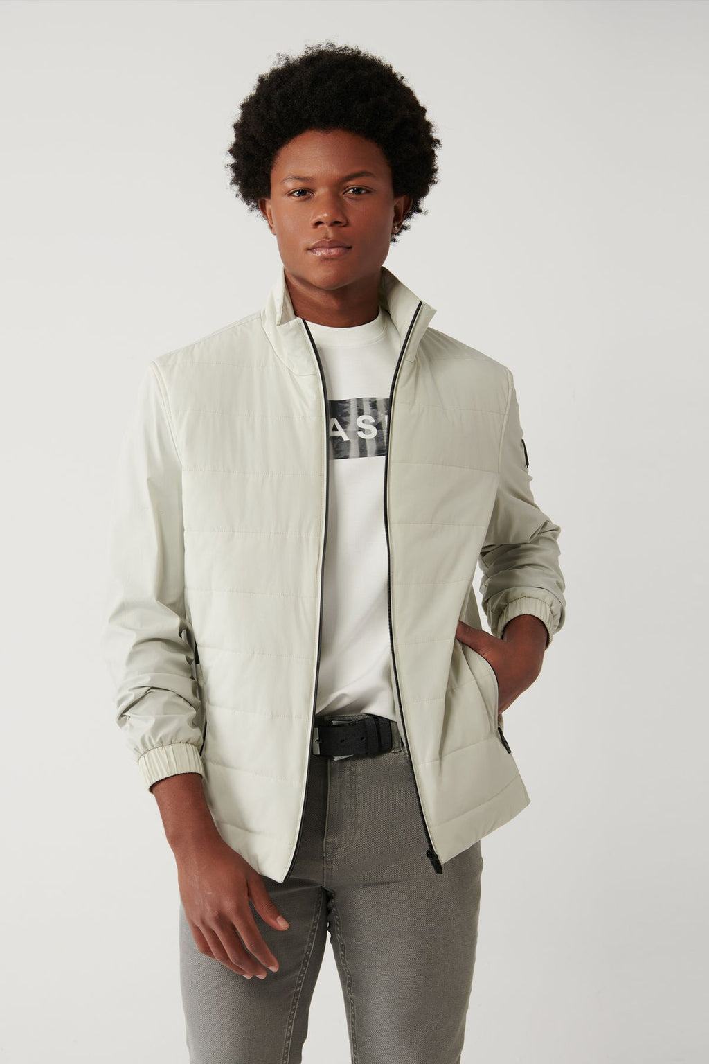 Men's Stone Ortak Neck Reflector Printed Flexible Water Protector Bi Stretch Ince Mont A41y6023
