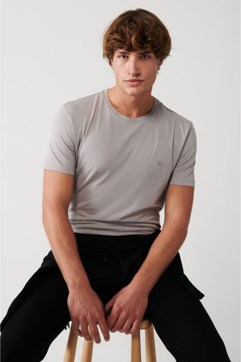 Men's Stone Ultrasoft Bicycle Collar Flat Modal T-Shirt B001171