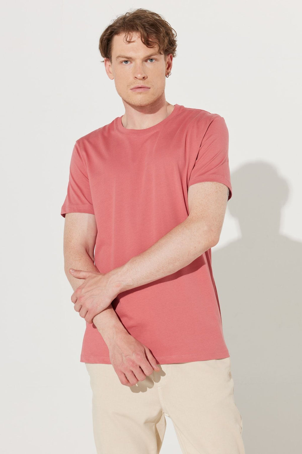 Men's Tile Slim Fit Narrow Cut 100 %Cotton Bicycle Collar Basic T -shirt