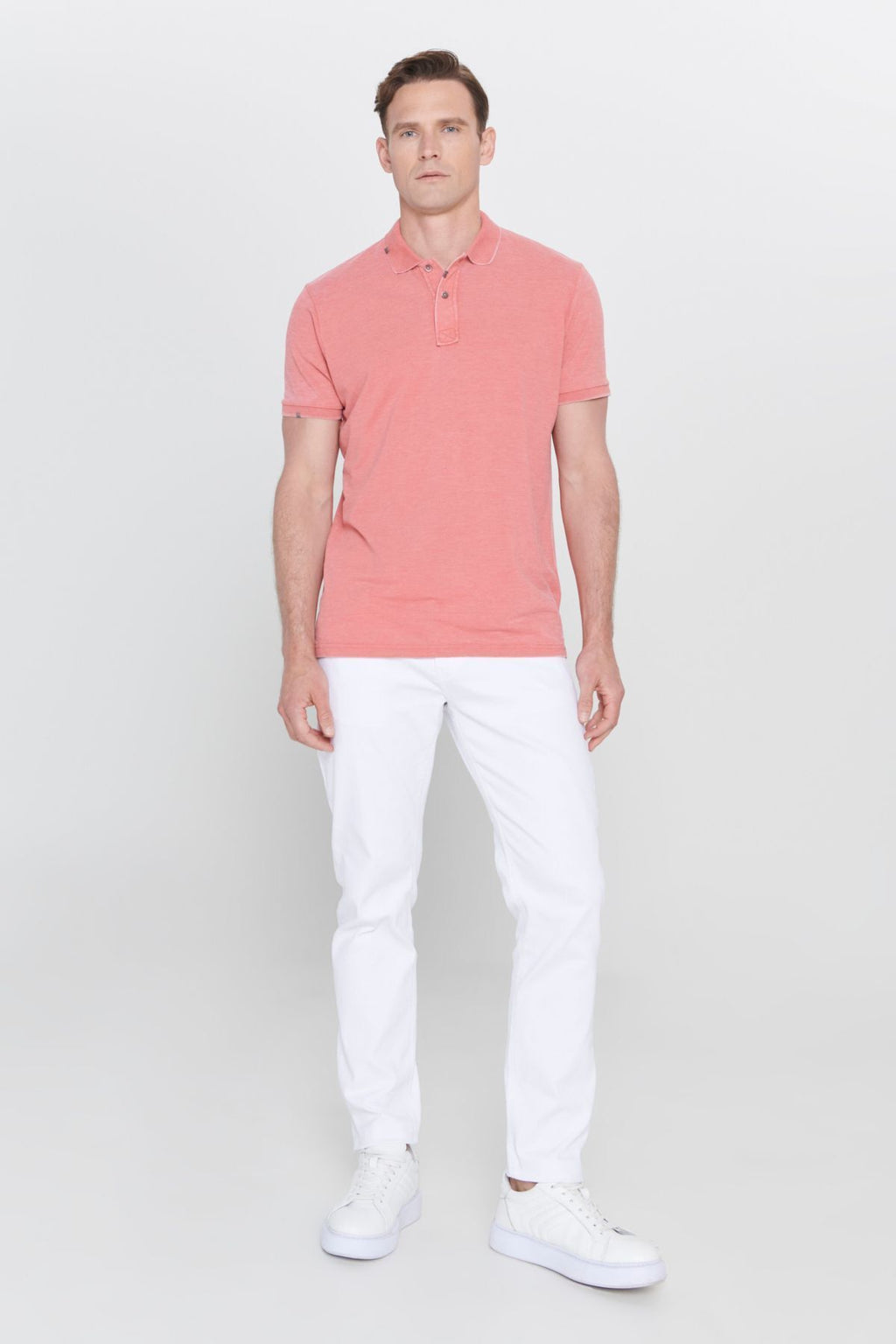 Men's Tile Slim Fit Narrow Cut Cotton Embroidery Detailed Polo Yaka T -shirt