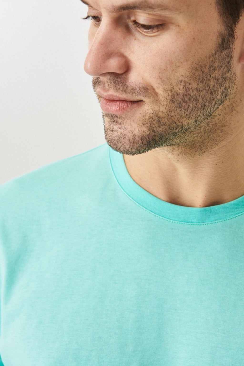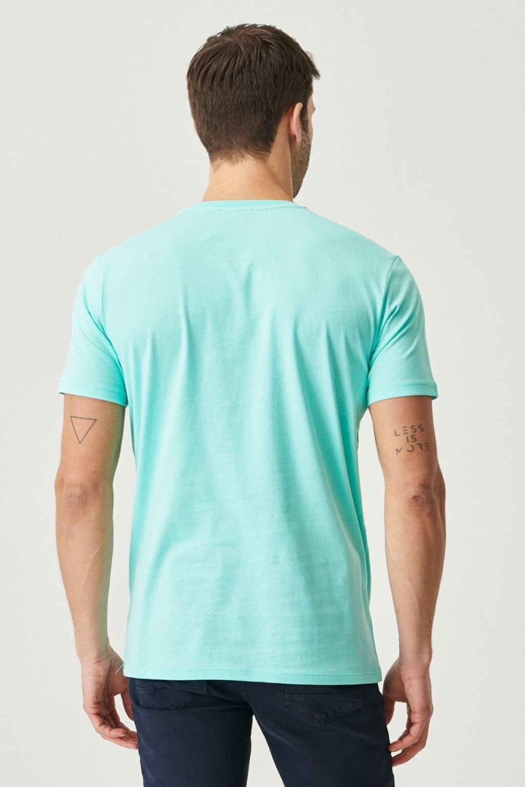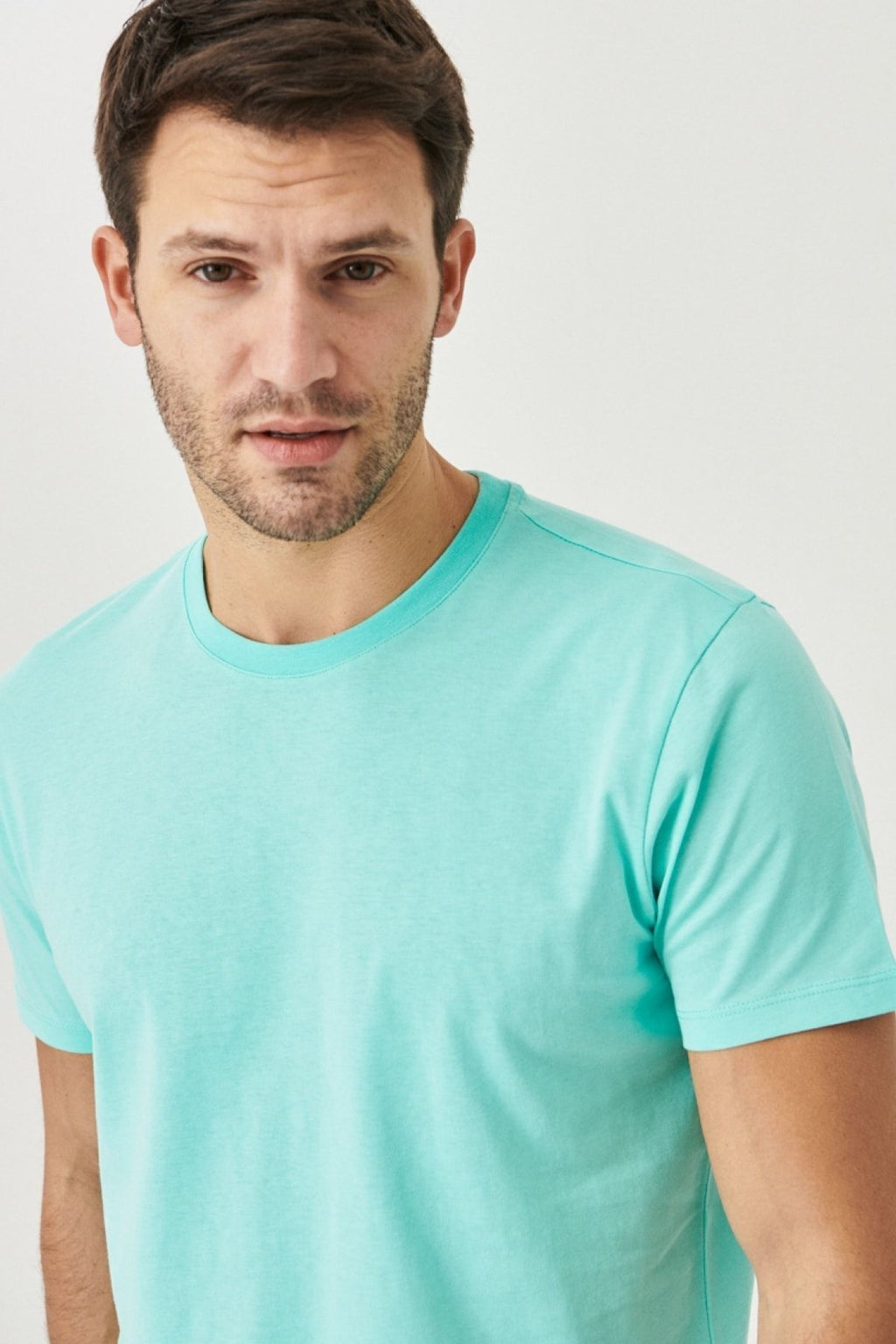 Men's turquoise 100 %cotton slim fit narrow cut bike bike collar basic t -shirt
