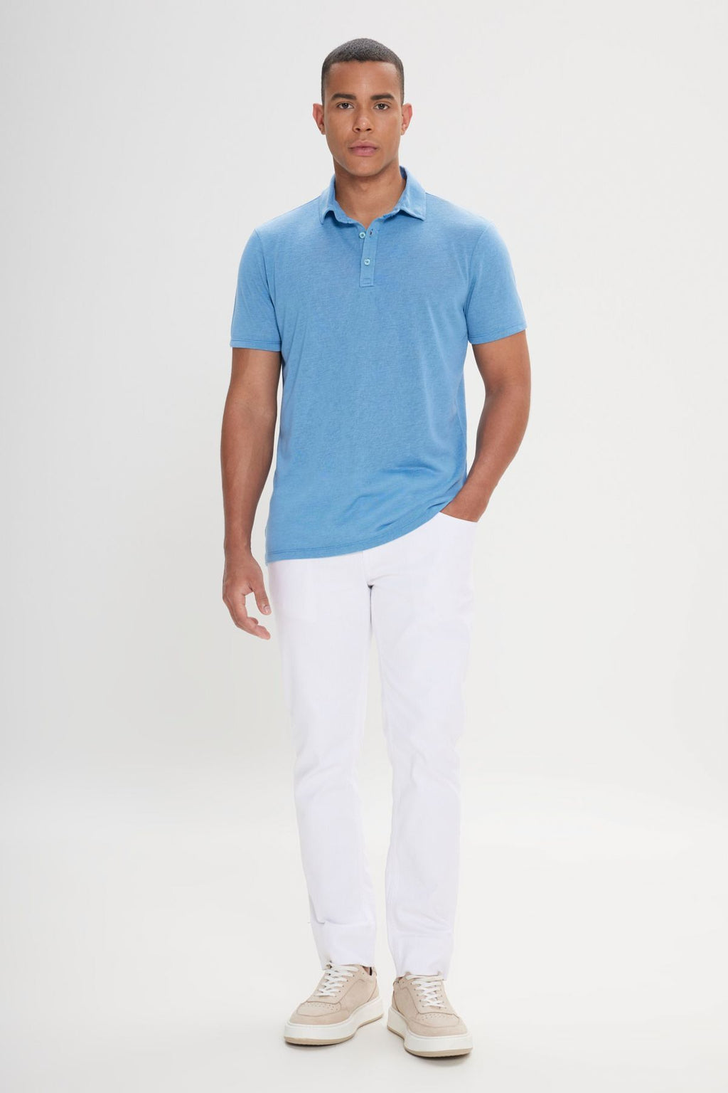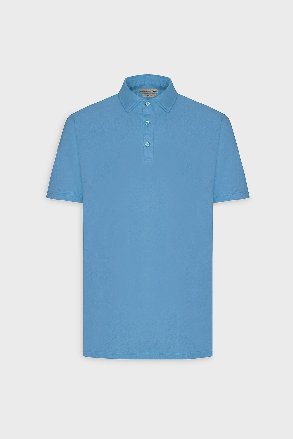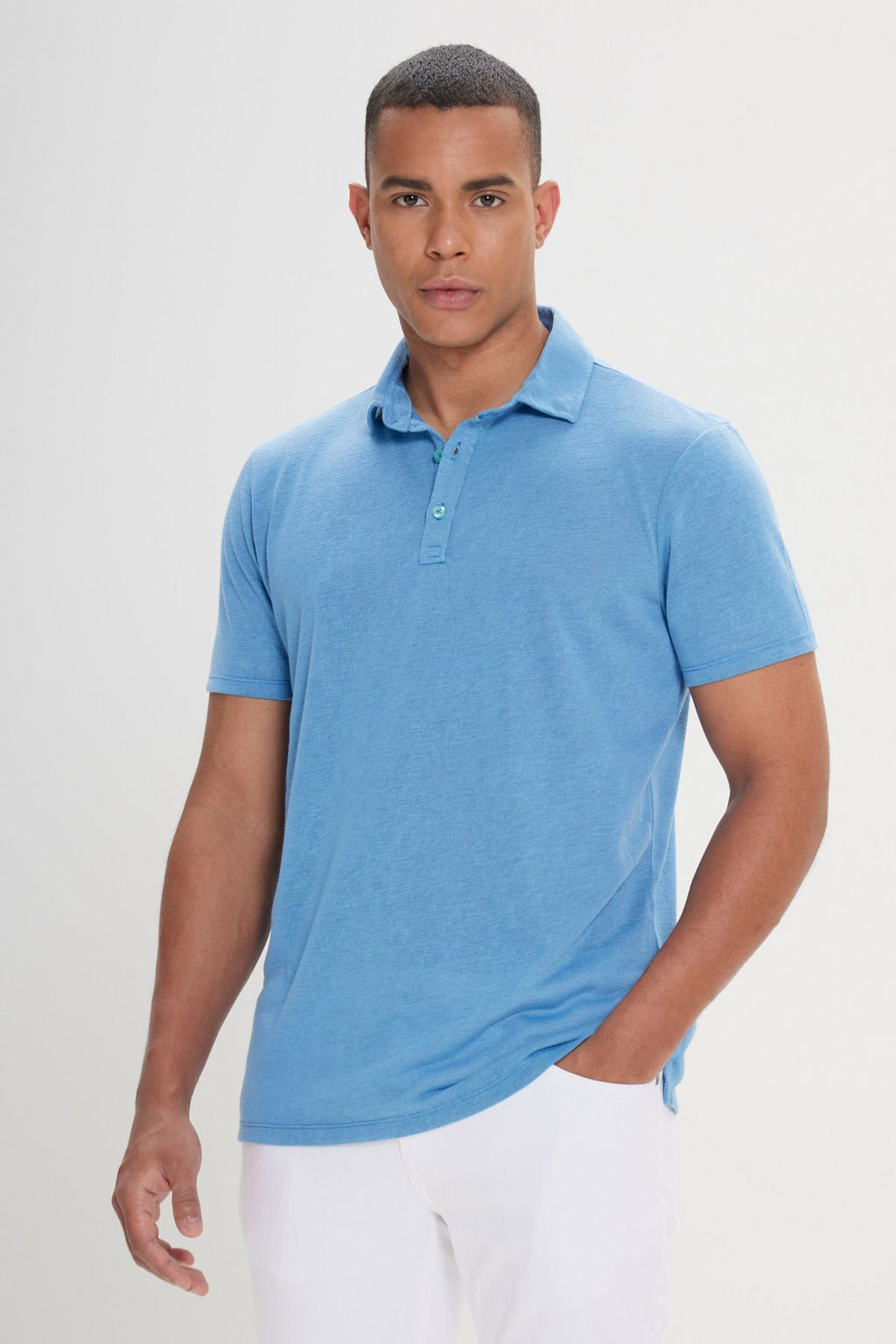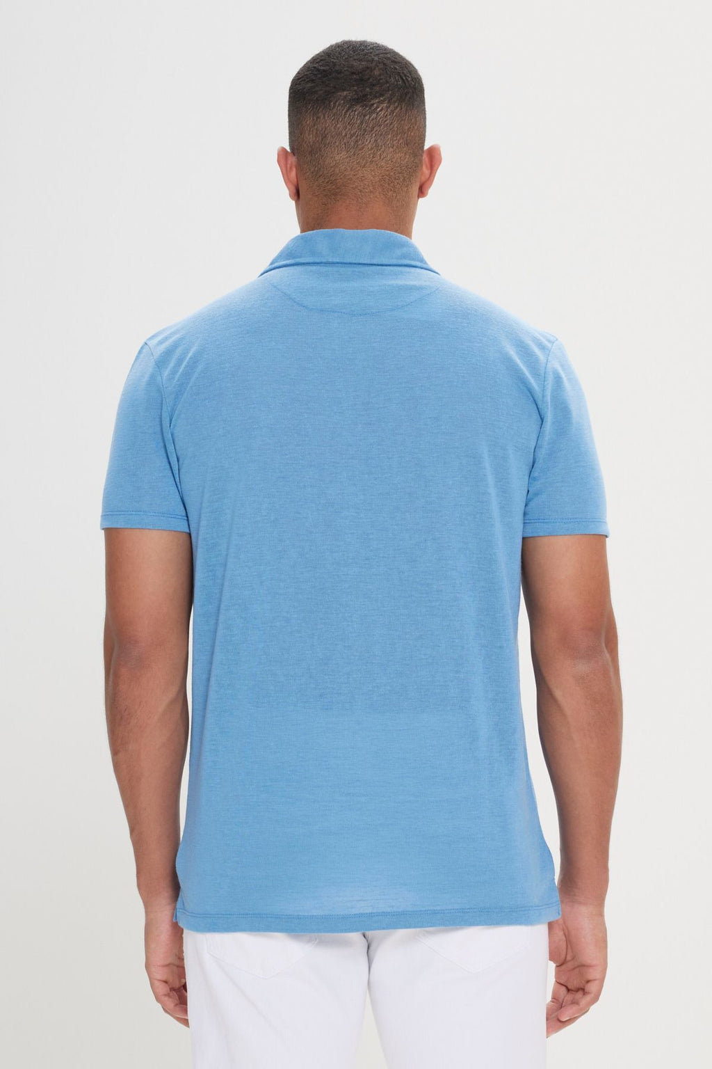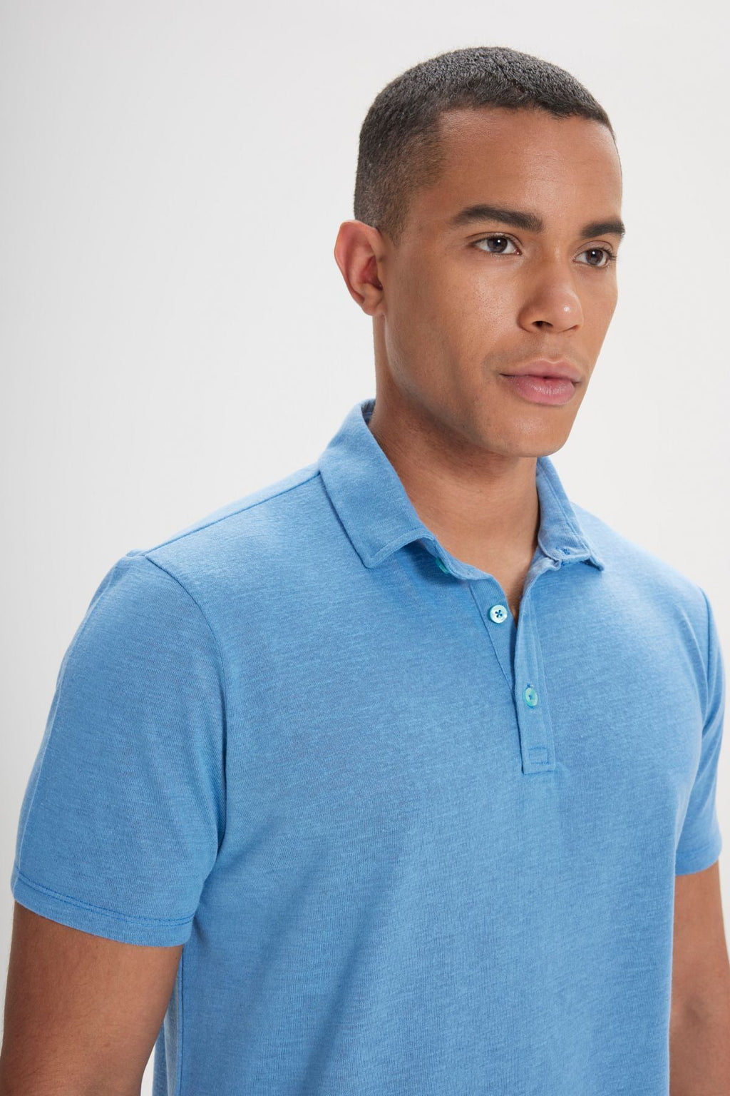 Men's turquoise slim fit narrow cut polo collar flat casual T -shirt