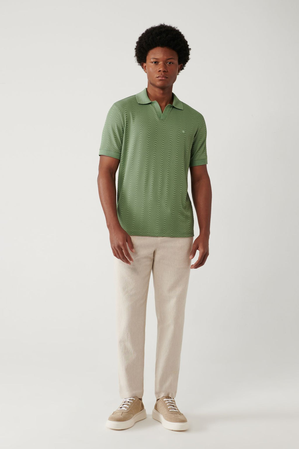 Men's Water Green Apjja Yaka Jacquard T-shirt A41y1068