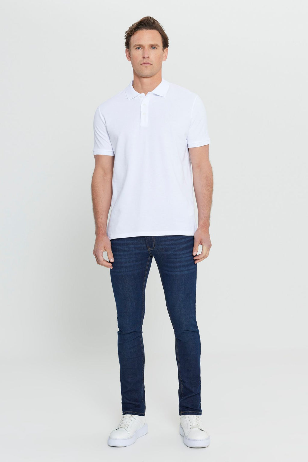 Men's White 100 %Cotton Curlled Pike Sada Slim Fit Narrow Cut T -shirt