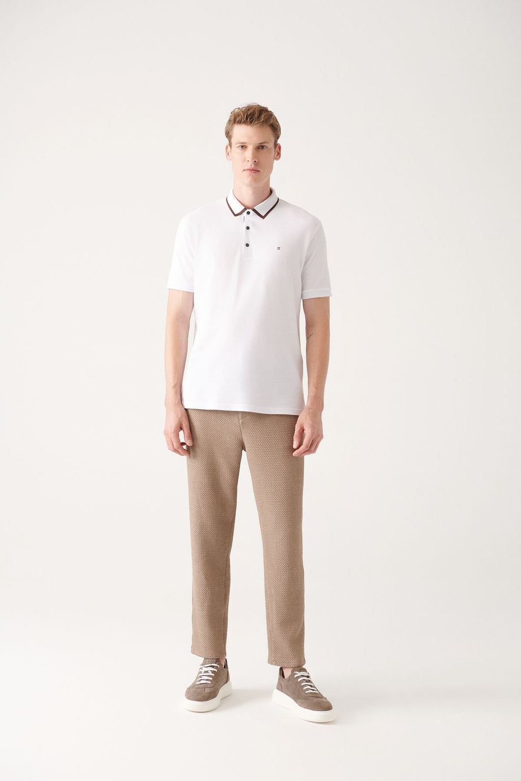 Men's White 100 %Cotton Stick Polo Yaka T-shirt A31y1175