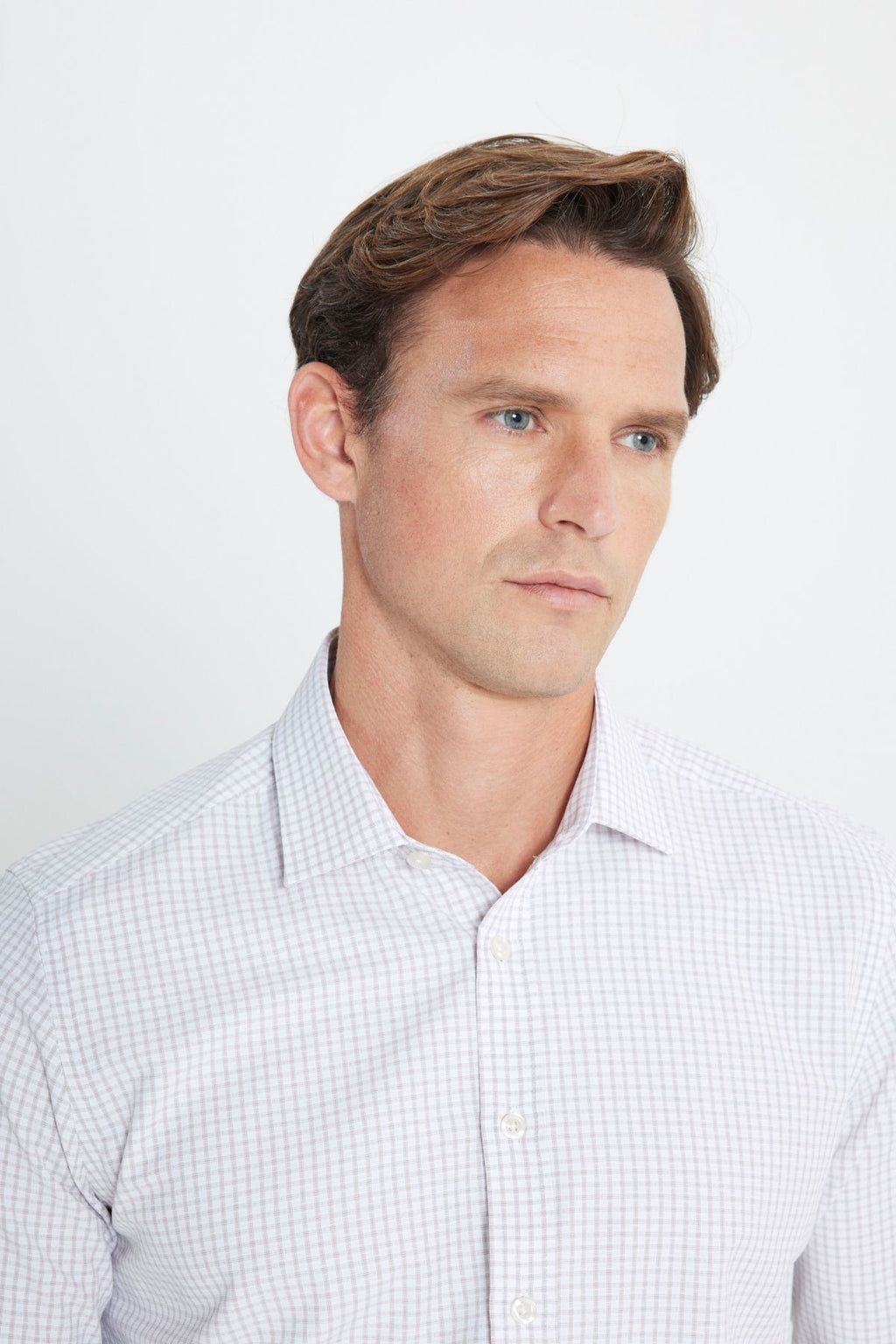 Men's white-bej cotton oxford slim fit narrow cut classic collar Amesty shirt