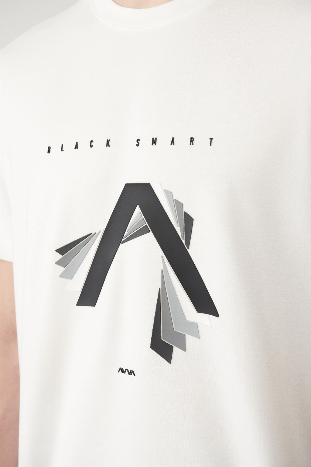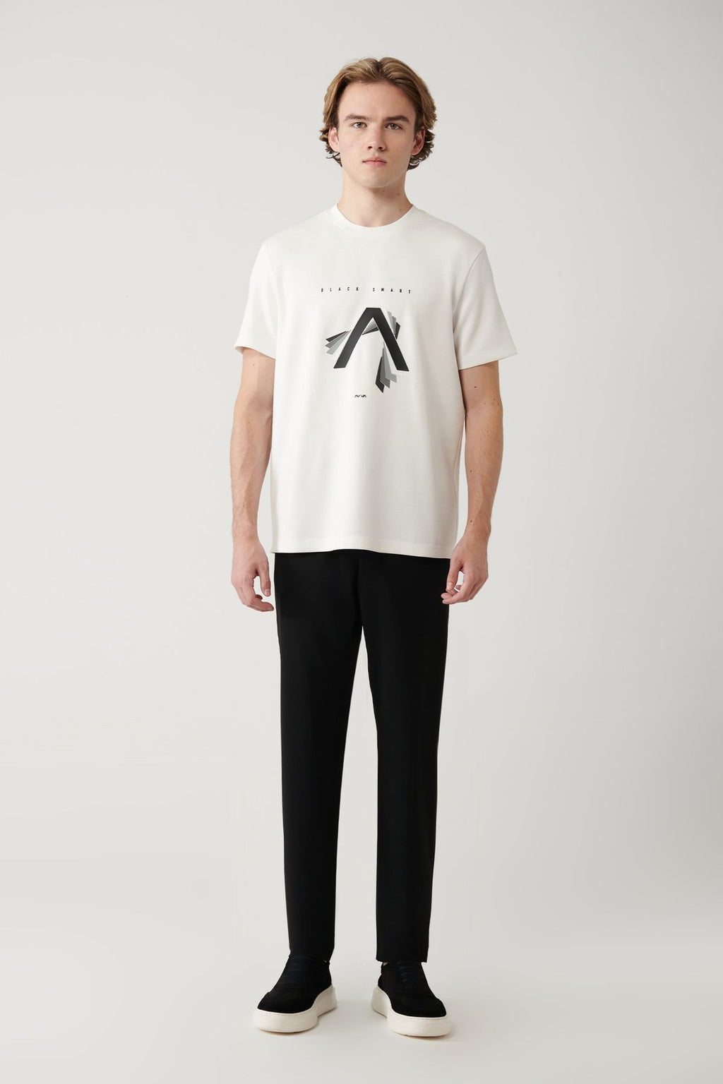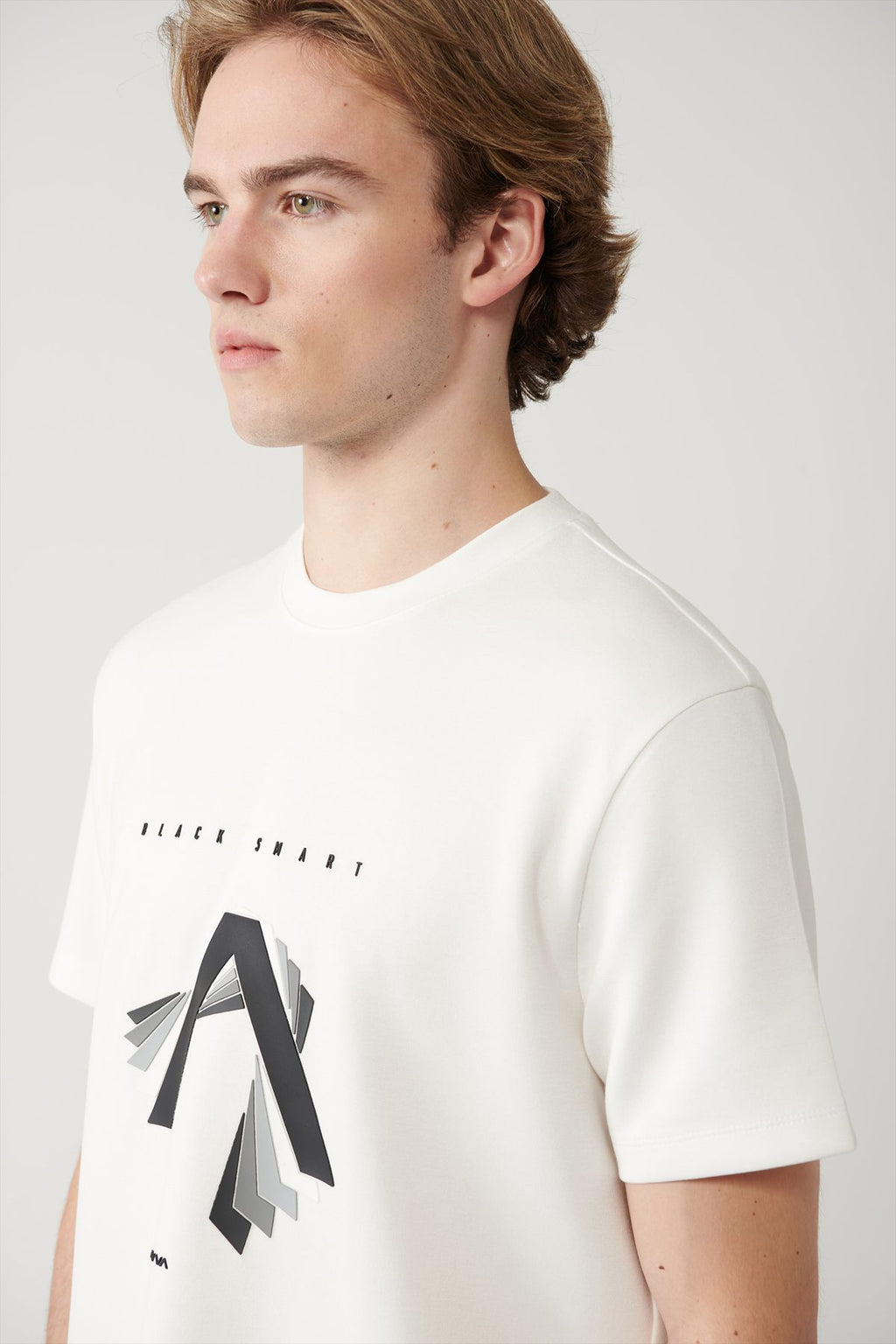 Men's White Bicycle Collar Printed Interlok T-Shirt A41y1199
