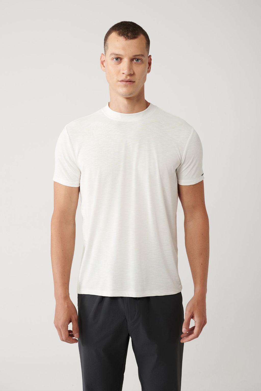 Men's White Bicycle Collar Printed Soft Touch T-Shirt A41y1032