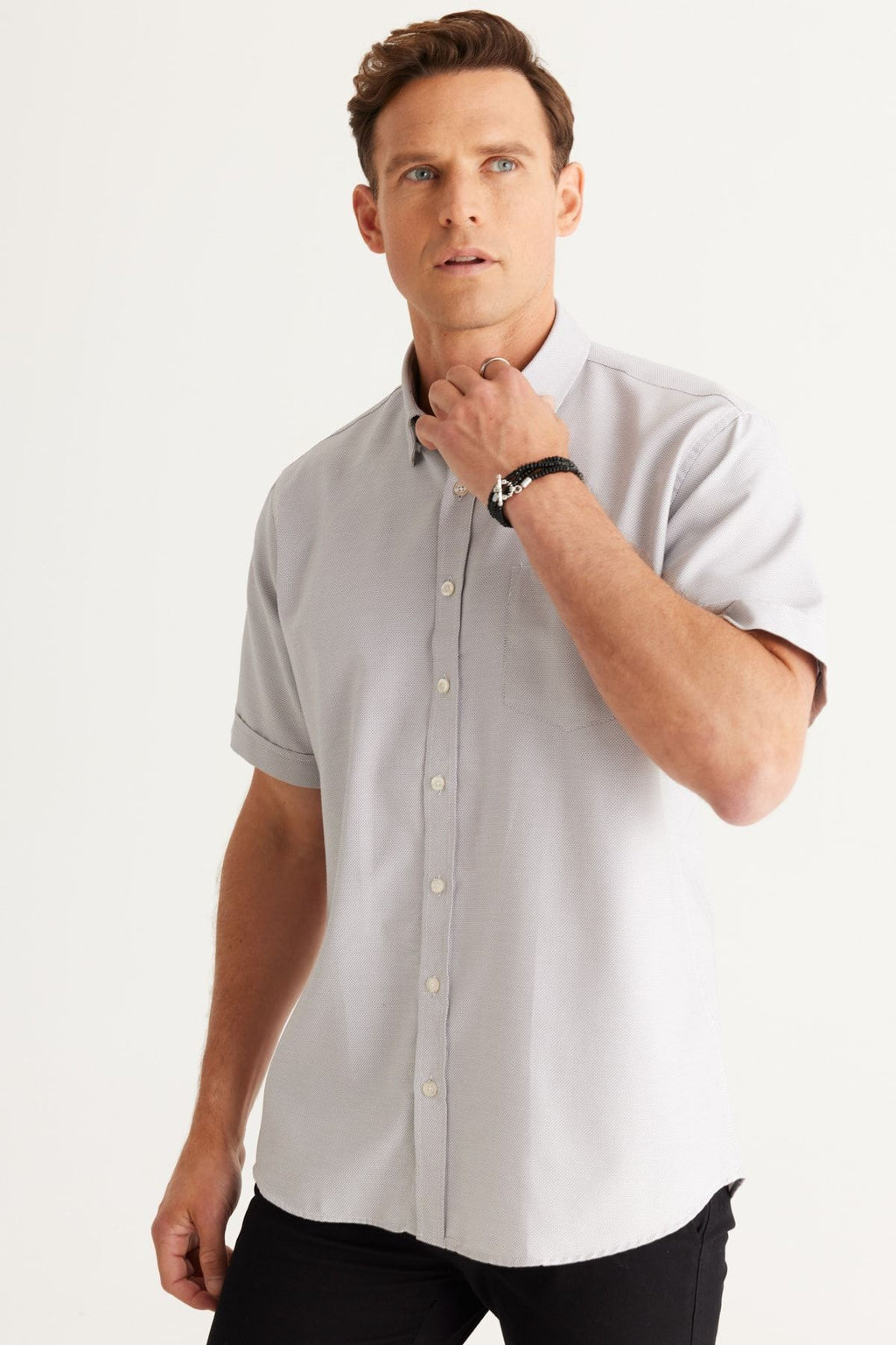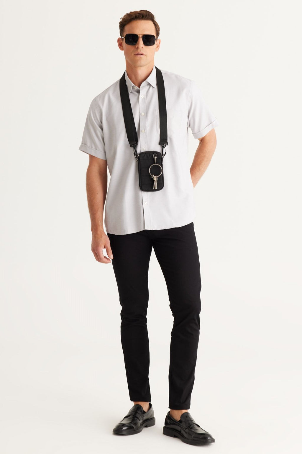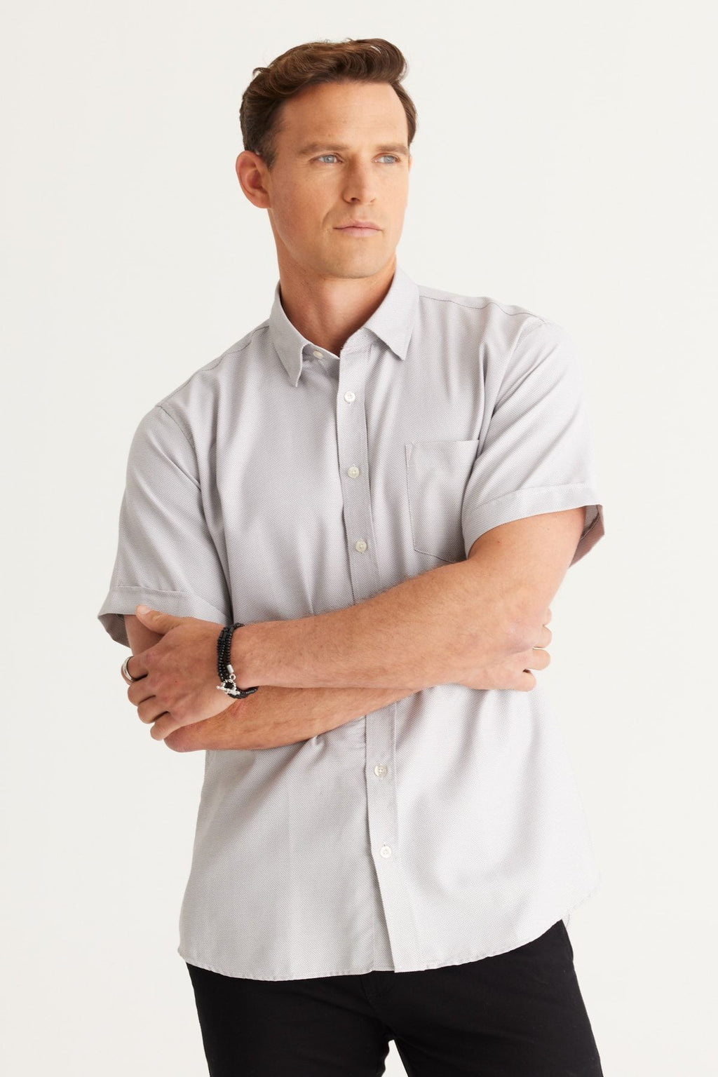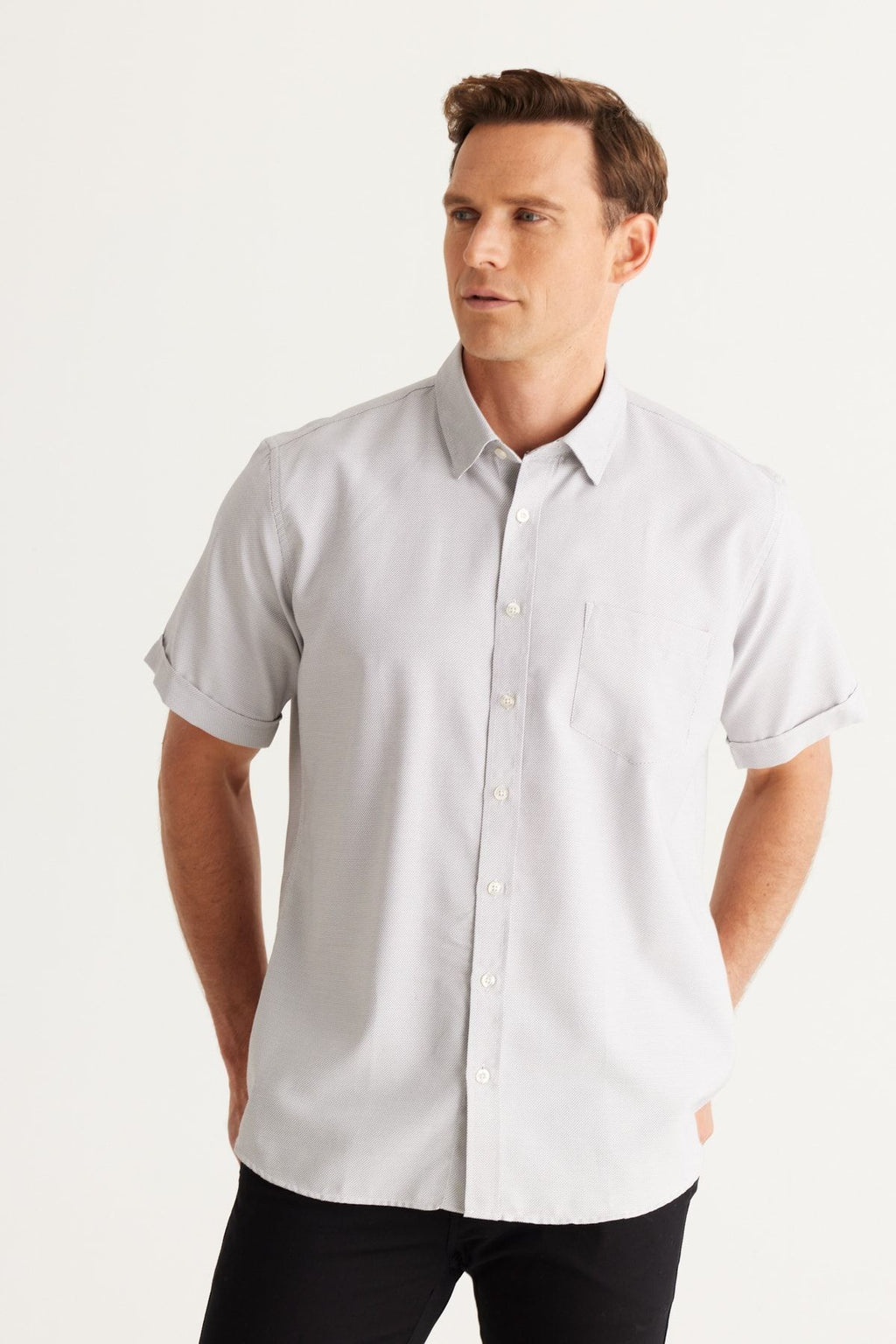Men's White-Black Comfort Fit Fit Wide Cut Breaking Shirt with collar pockets
