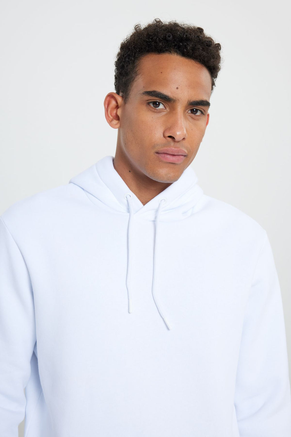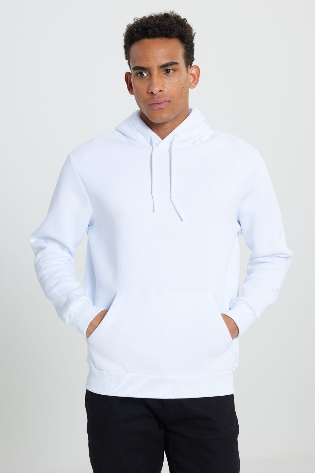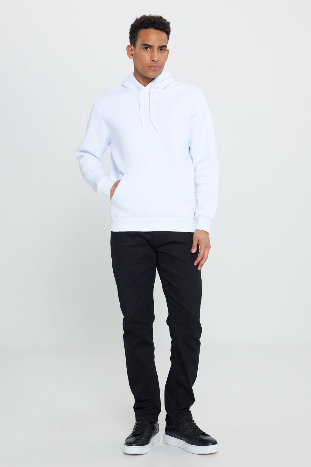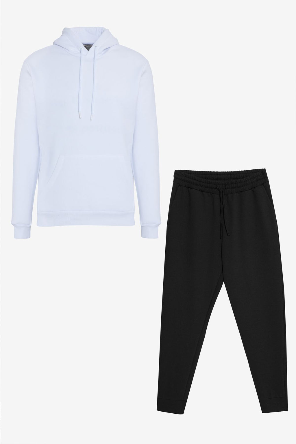 Men's White-Black-Gri Cotton Cotton Lower 2 Piece Hoped Kangaroo Cangle Standard Fit Normal Cutting