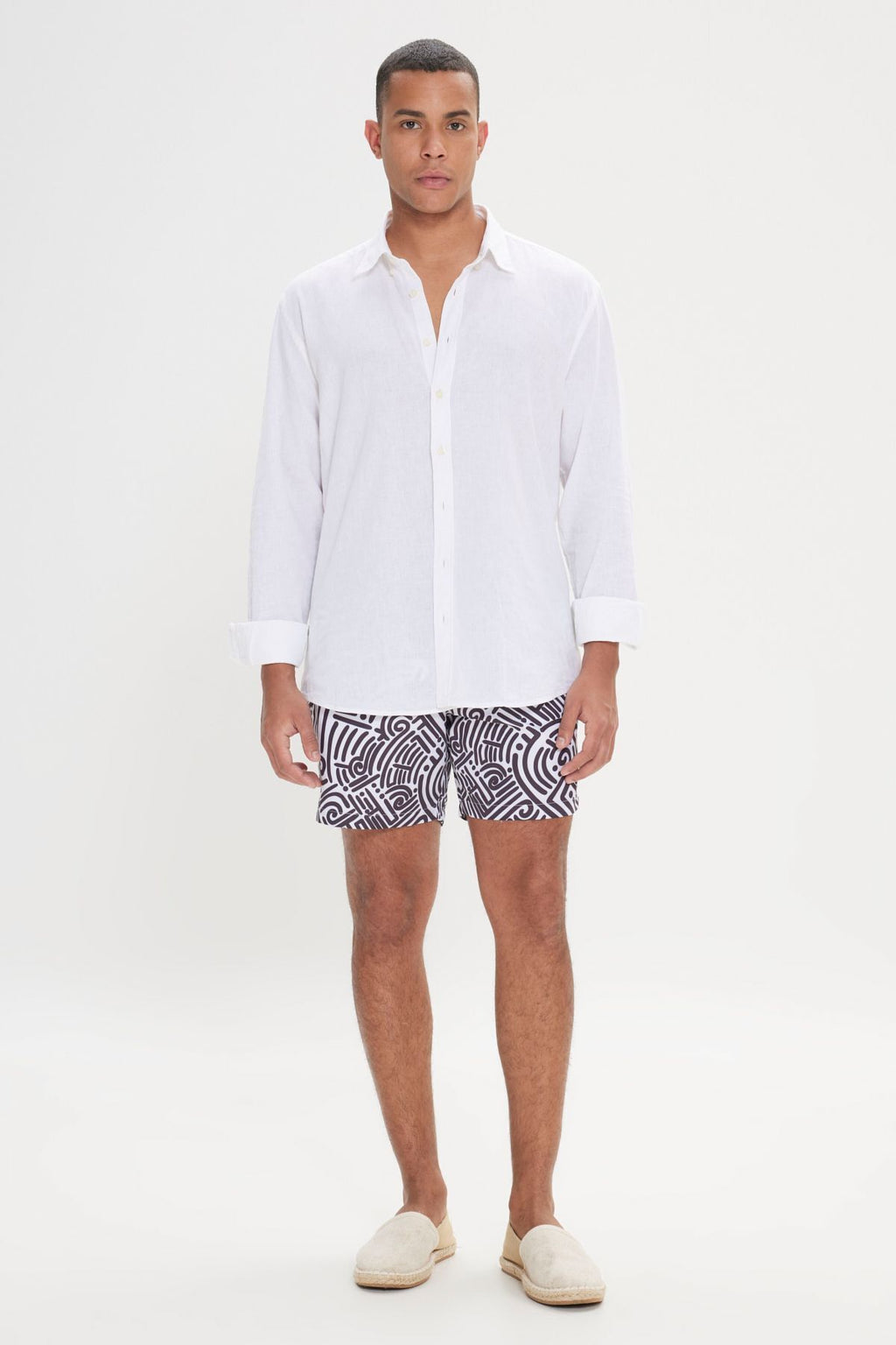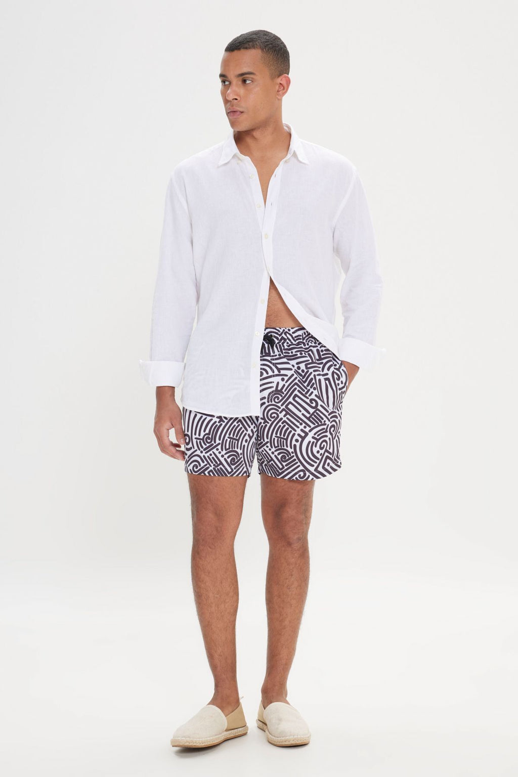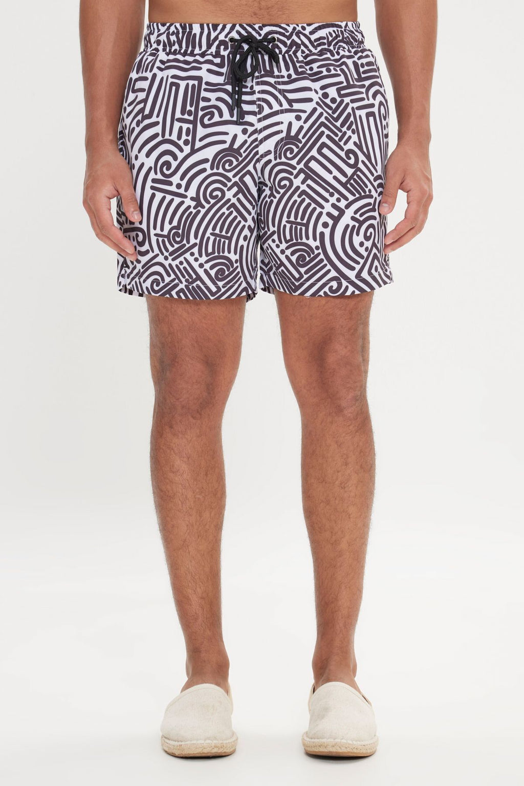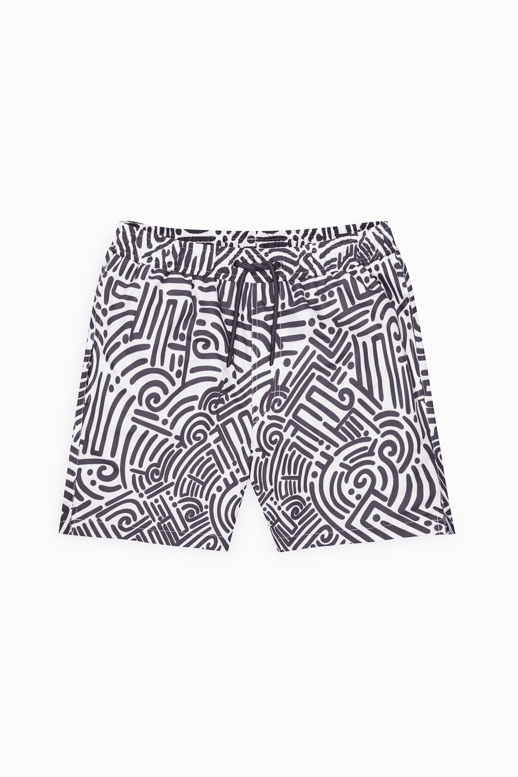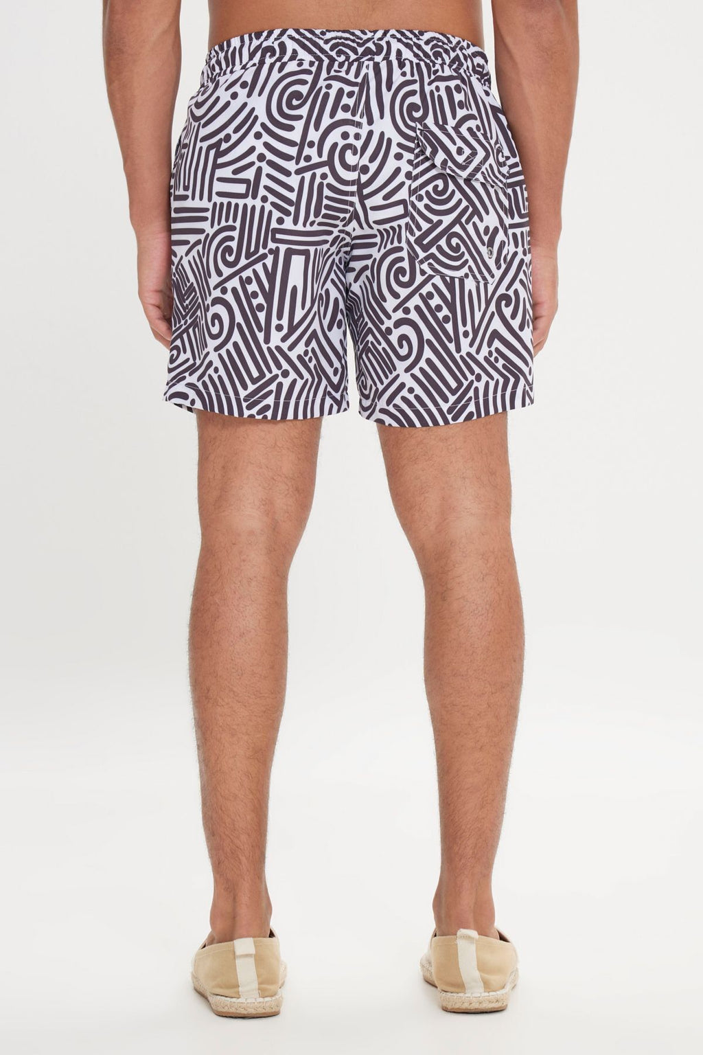 Men's White Black Standard Fit Normal Cutting Pocket Fast Drying Patterned Mayo Sea Short