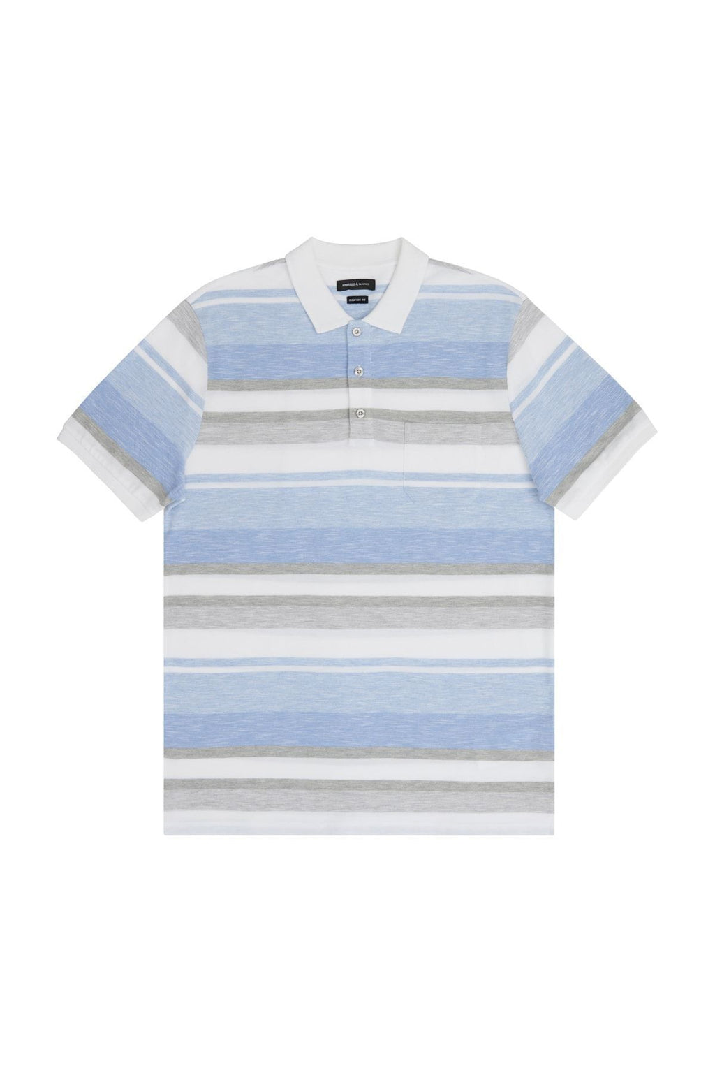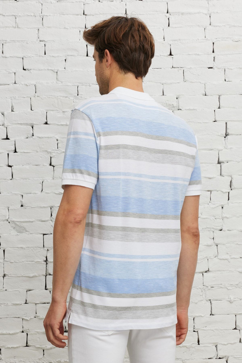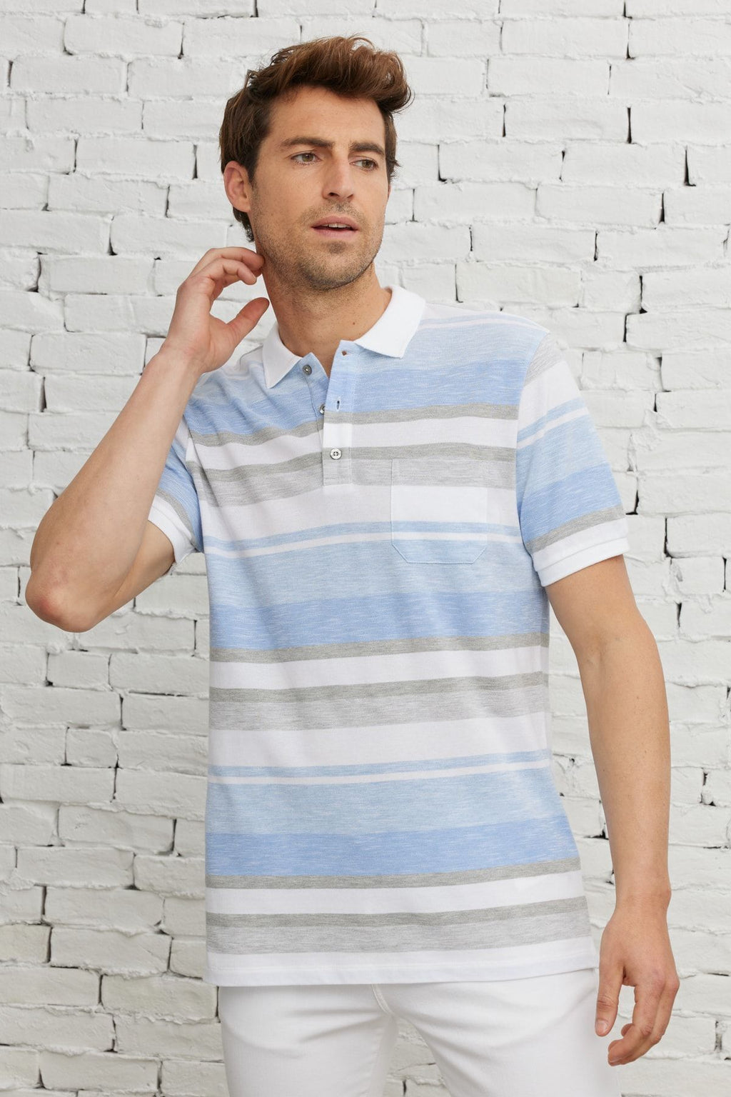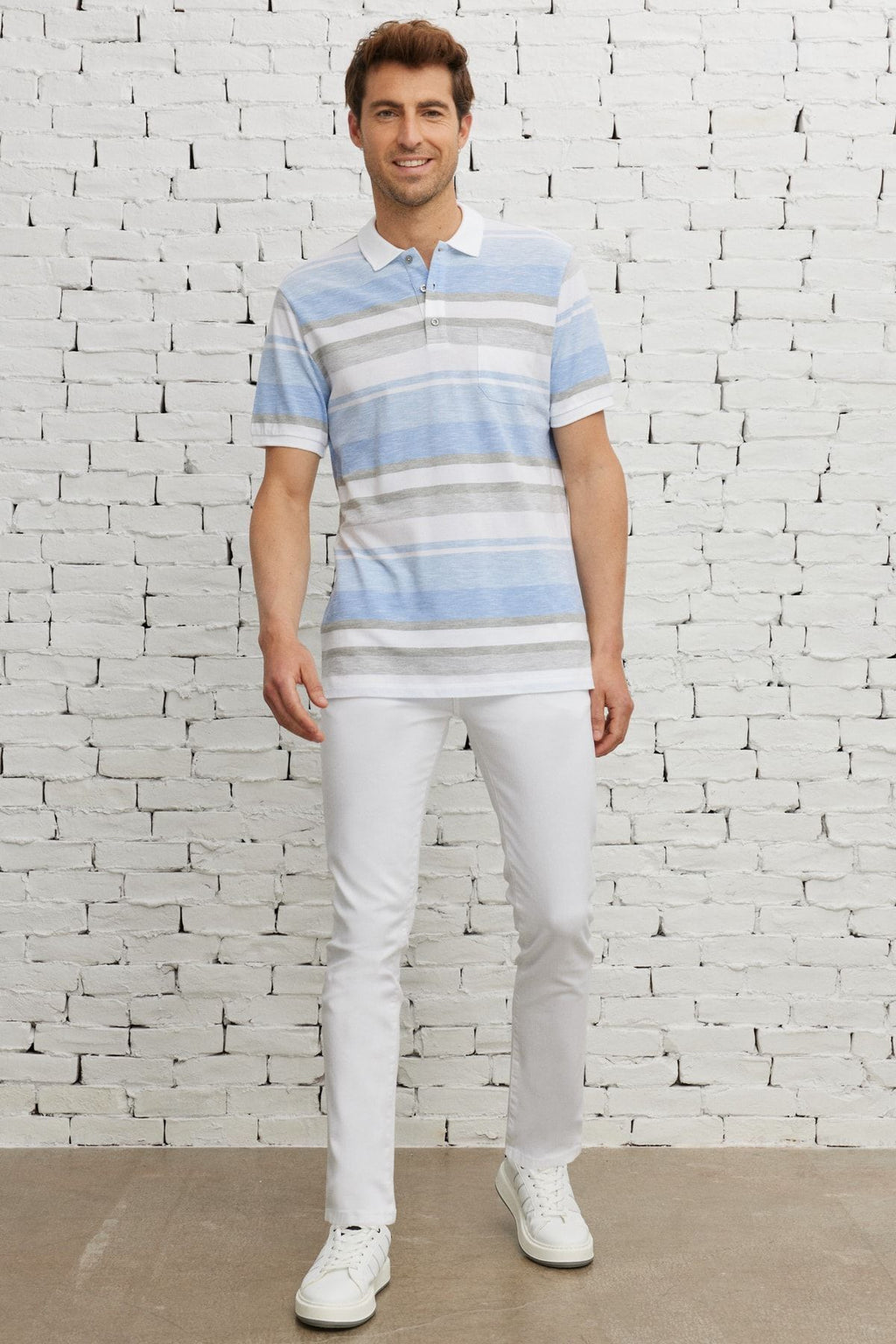 Men's White Blue Comfort Fit Casual Cut Polo Yaka 100 %Cotton Pocket Patterned T -shirt