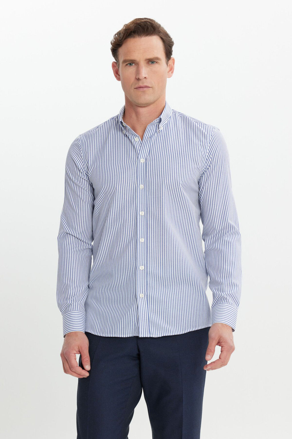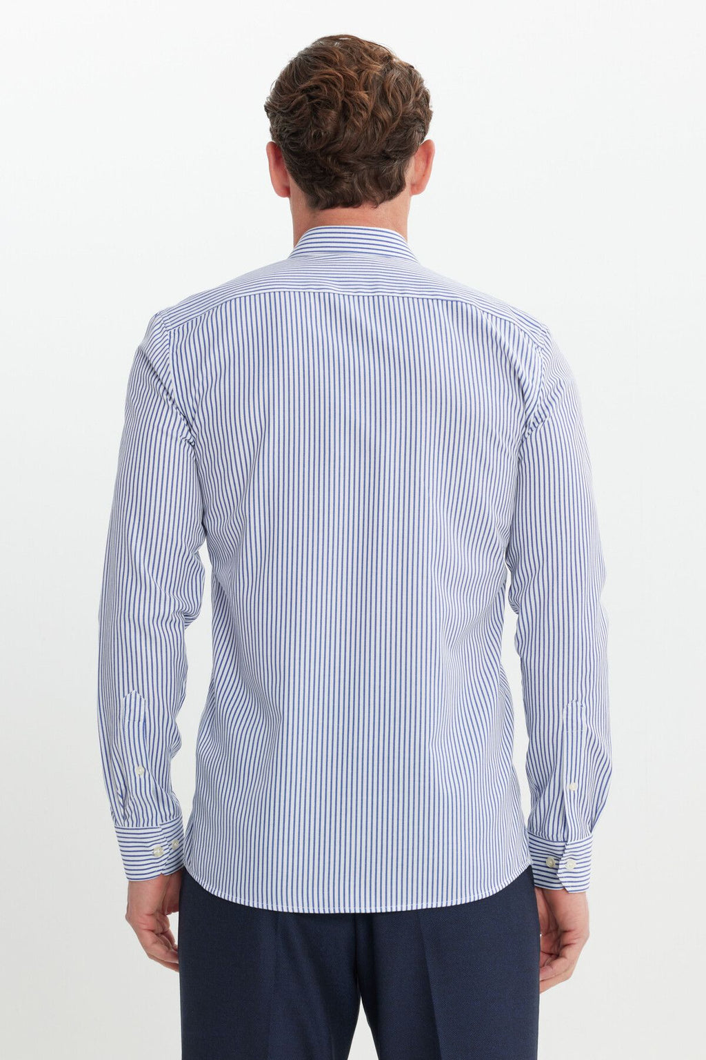 Men's white-blue cotton slim fit narrow cut button shirt shirt with shirt striped shirt