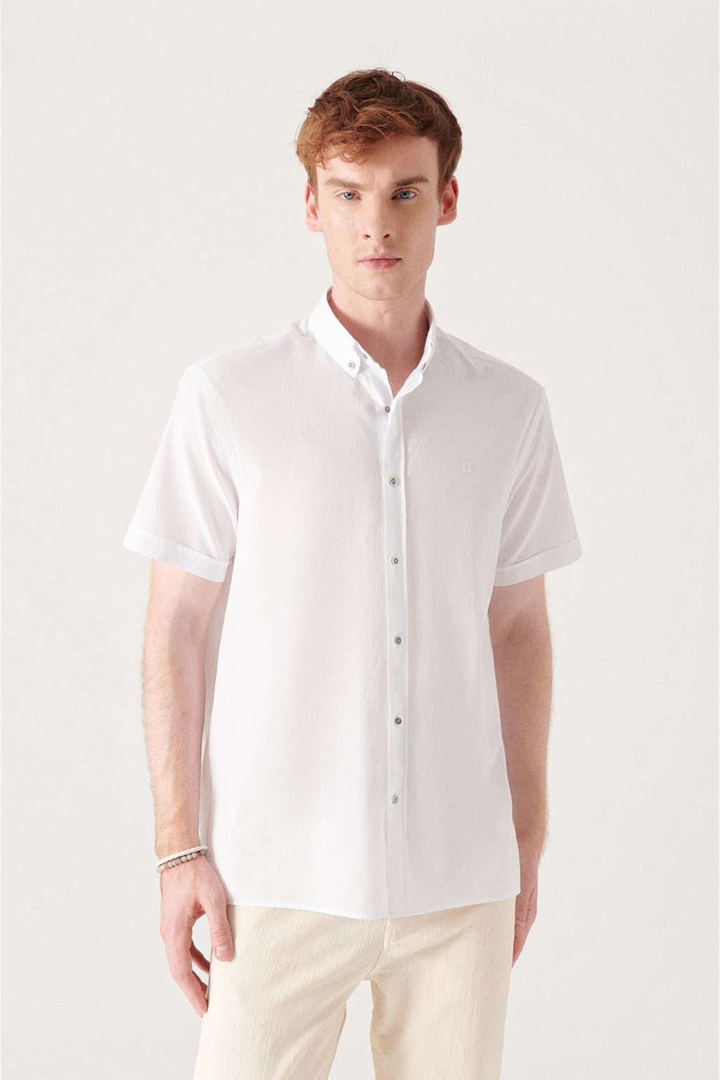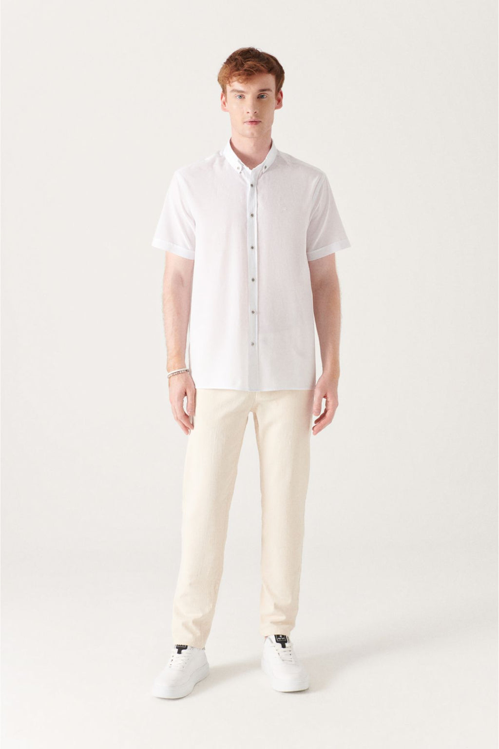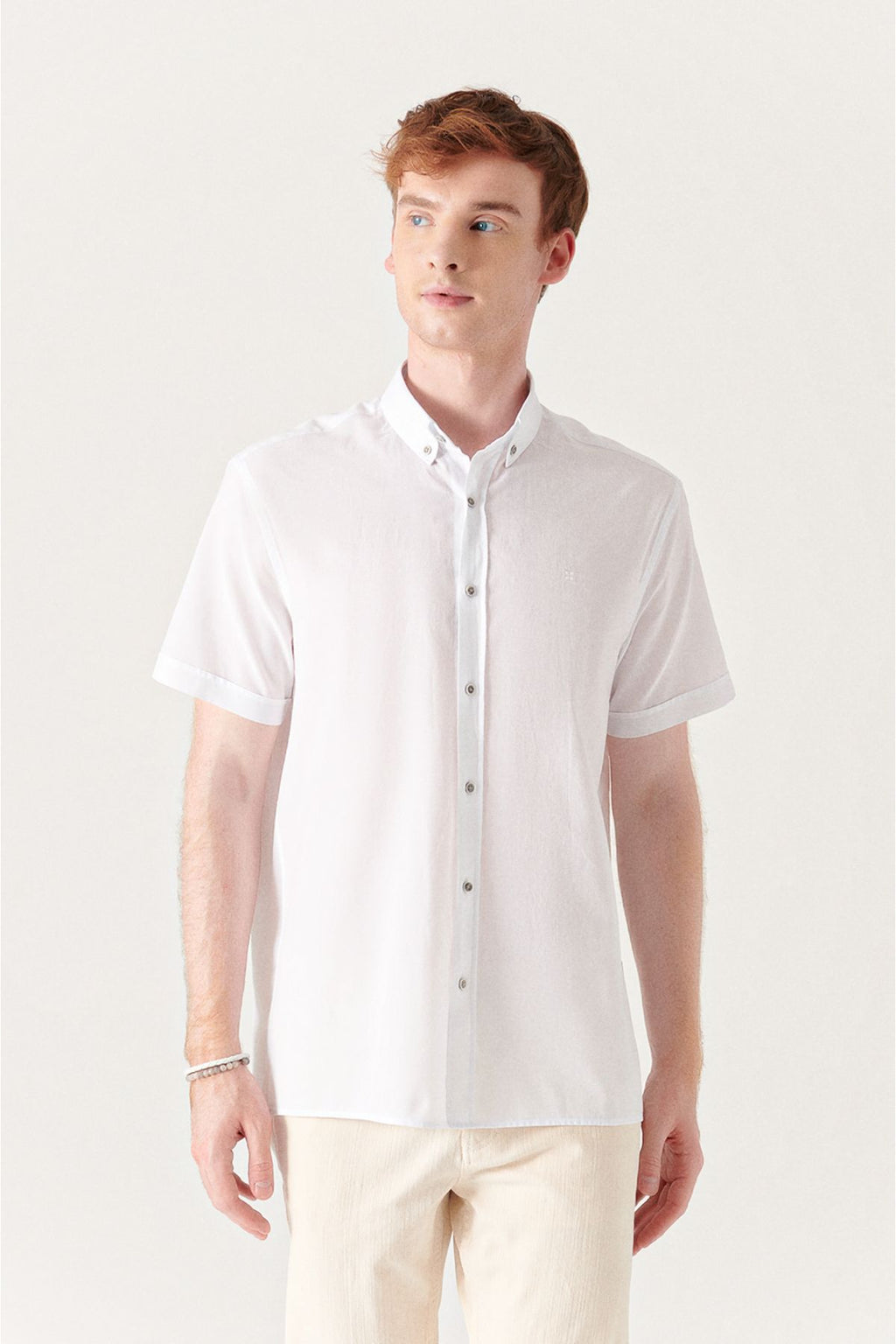 Men's white button collar 100 %cotton Futter Short Sleeve Shirt E002210