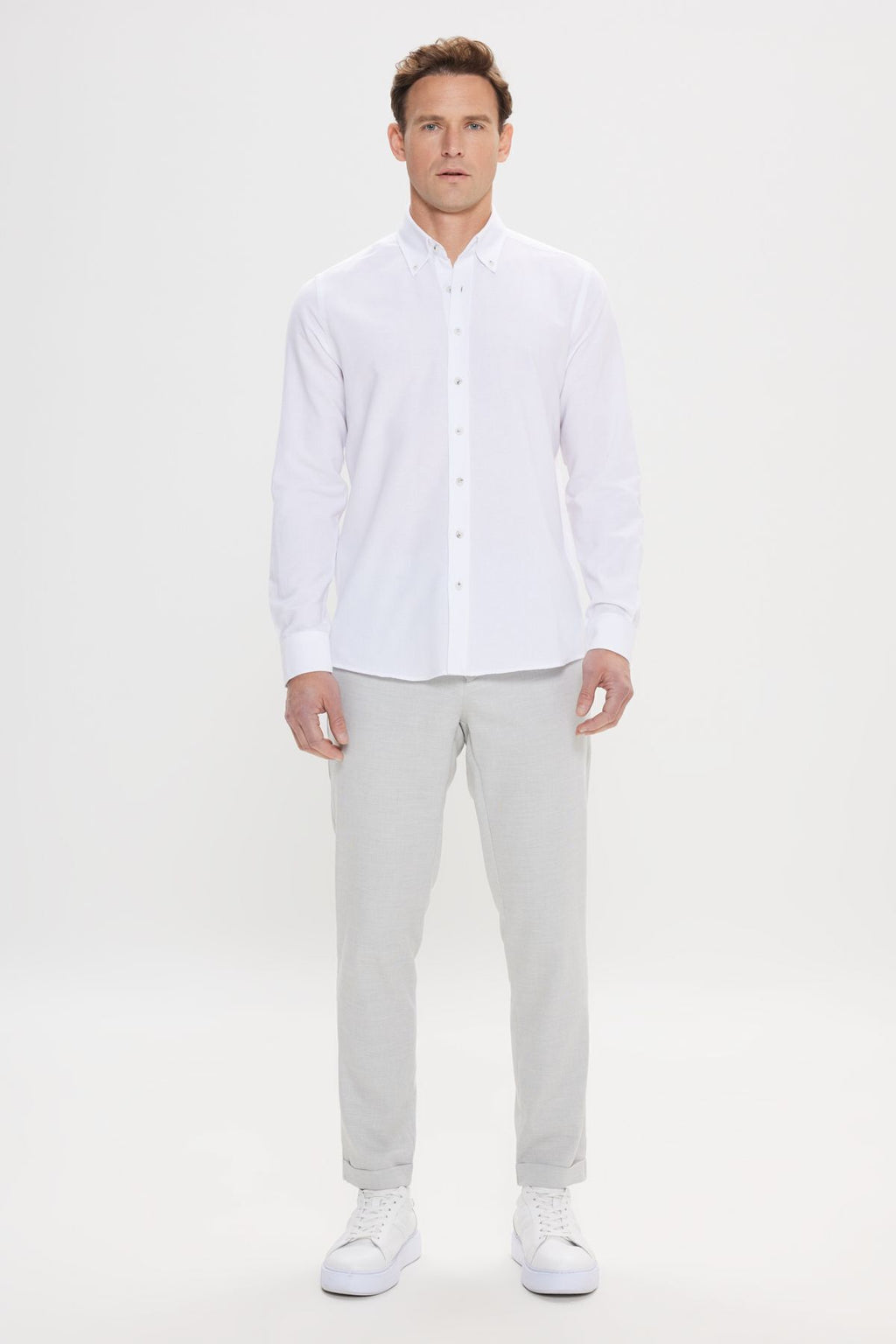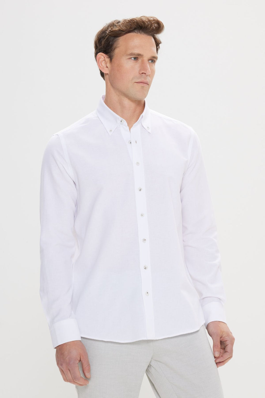 Men's white button collar Tailorered Slim Fit Oxford Shirt